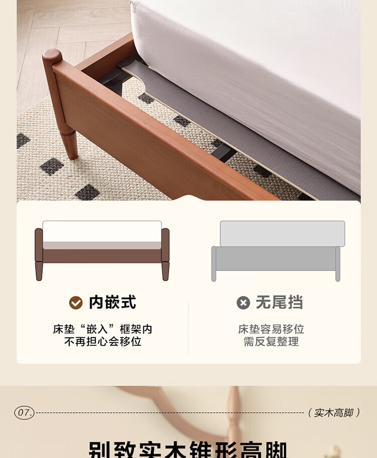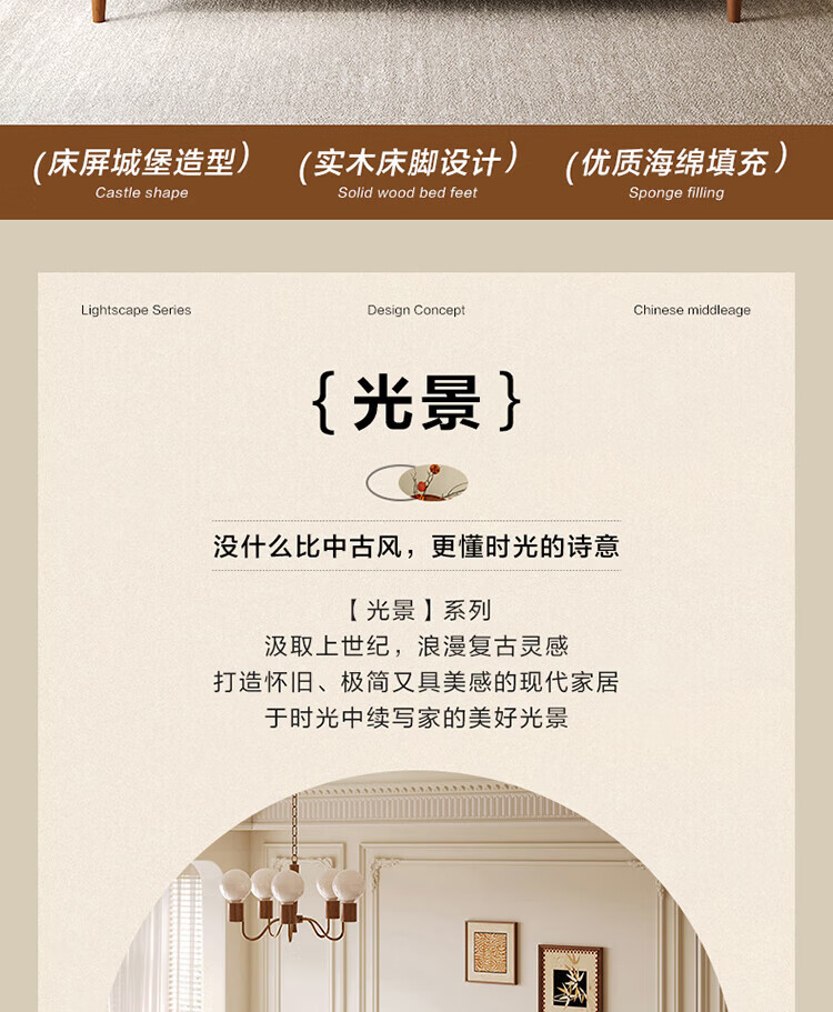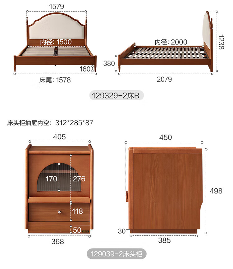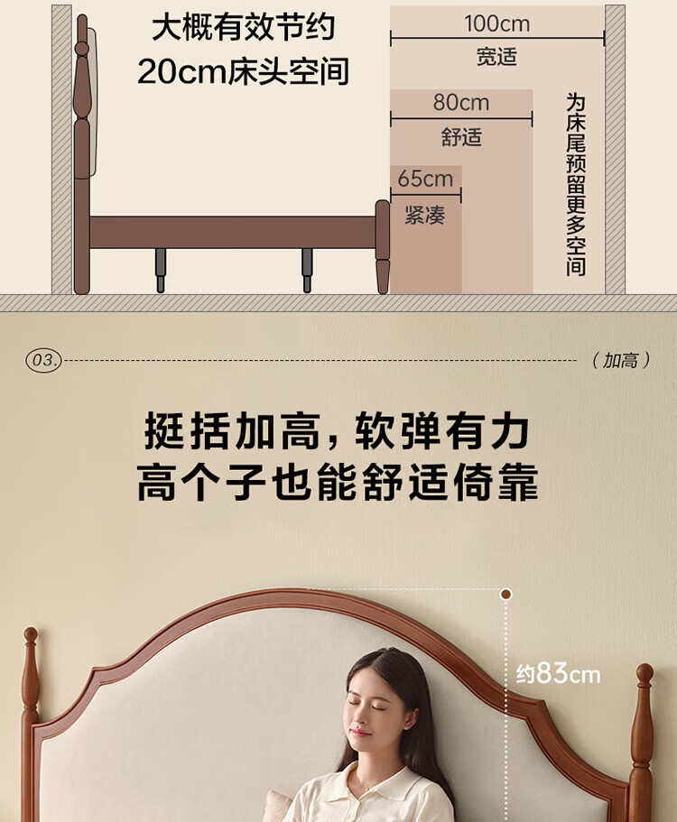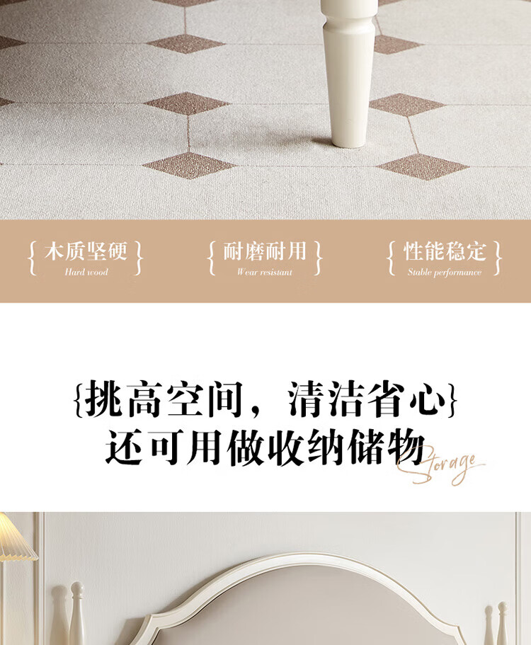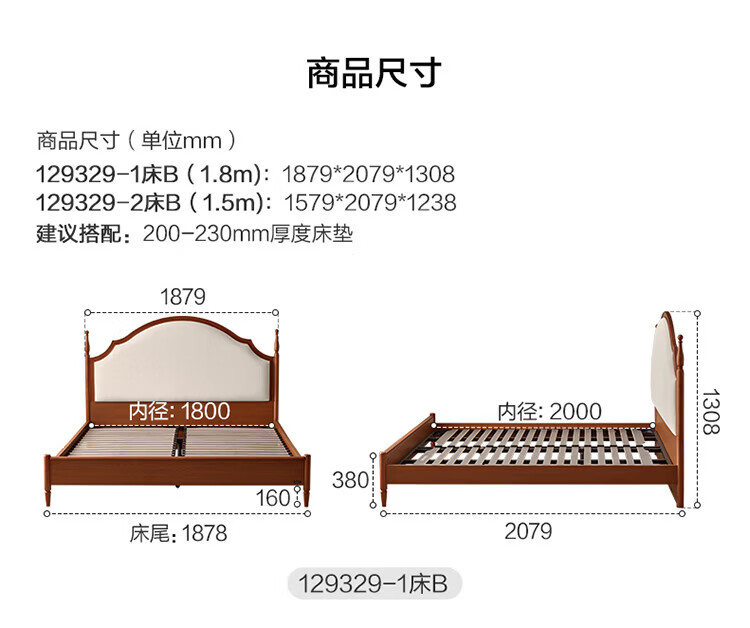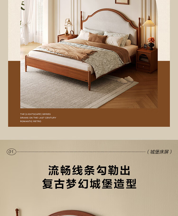 全友家居波尔多皮艺软包高脚床复古法式奶油风主卧1.8米x2米双人大床 复古棕|床头柜*1 1.8米