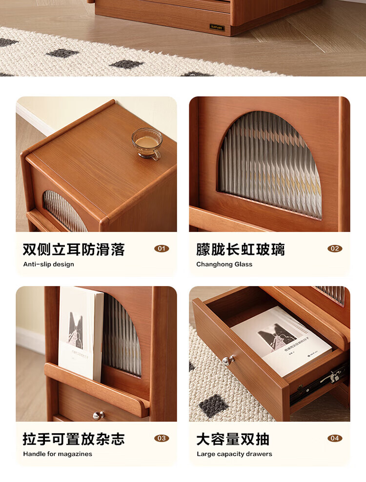 全友家居原木风实木餐边柜家用玻璃展示柜收纳储物小柜子沙发边柜KS 【樱桃木色|橡胶木】双门款餐边柜