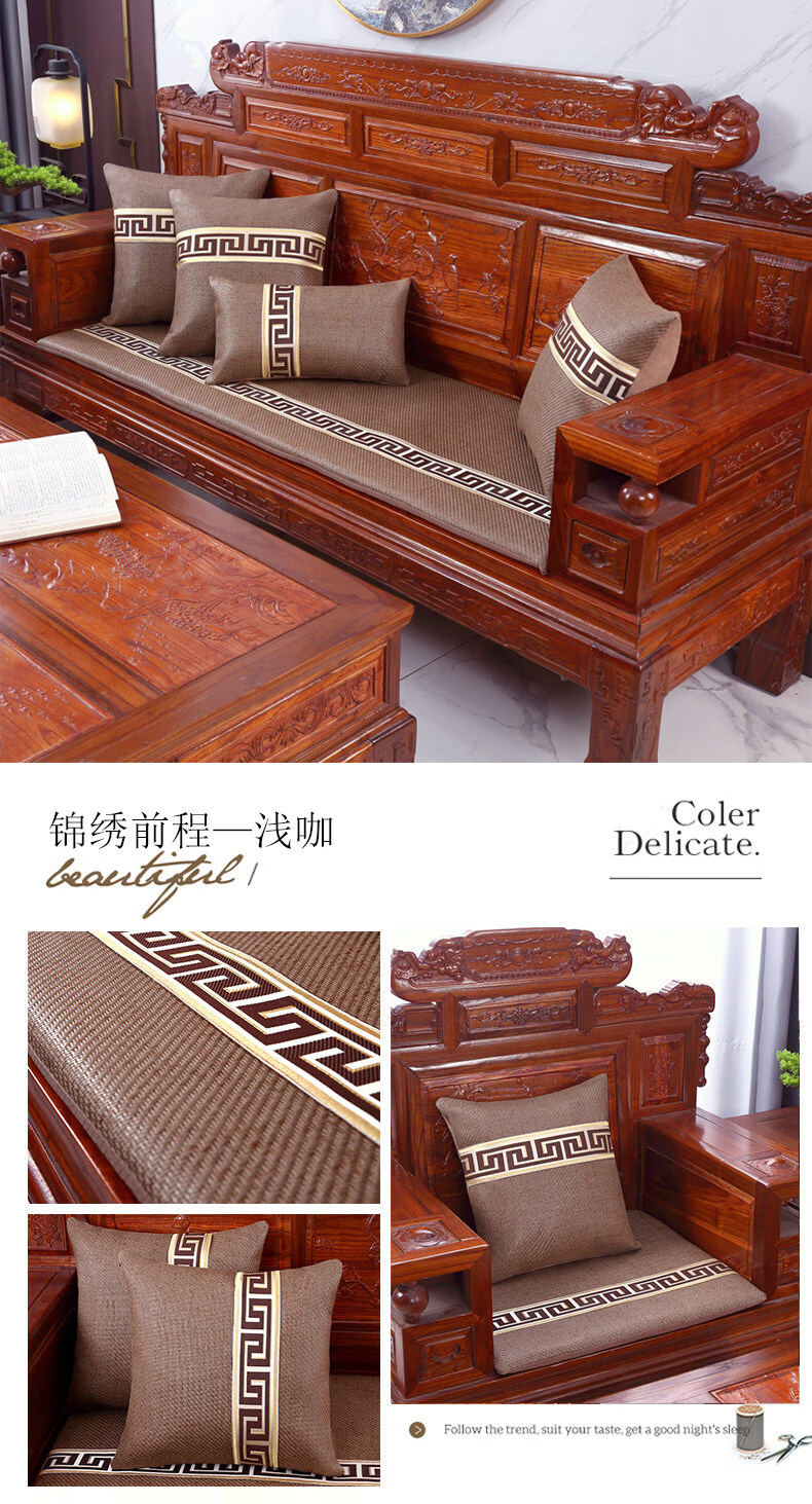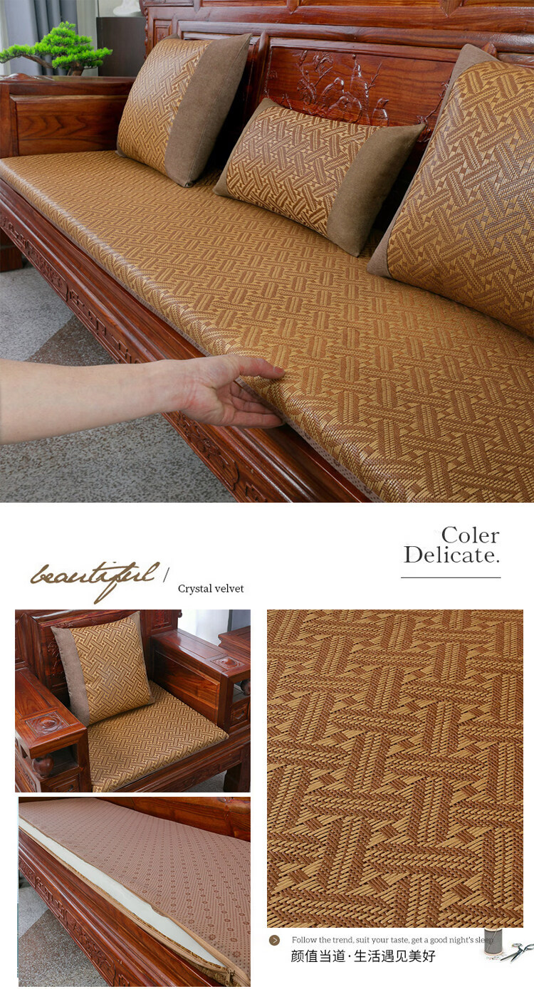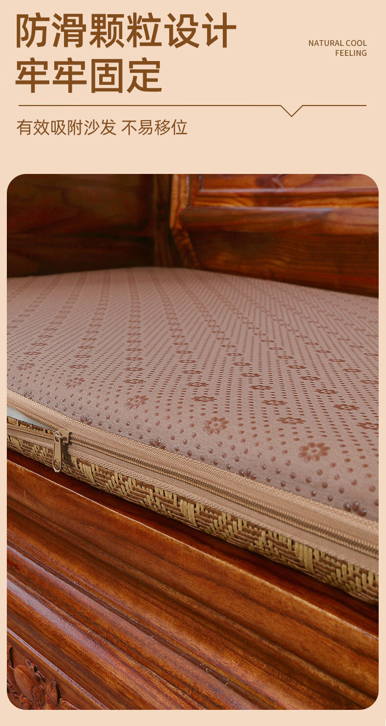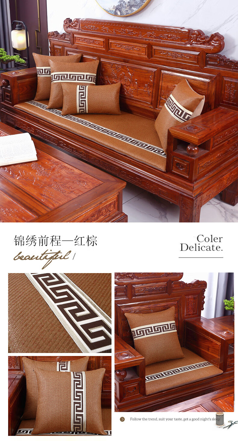 正圣夏季凉席沙发垫四季通用防滑2026年新款红木实木沙发坐垫老式椅垫 锦绣红棕(3cm海绵) 三人座50*170cm