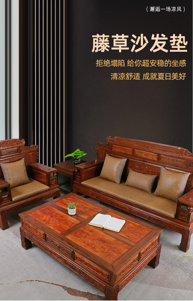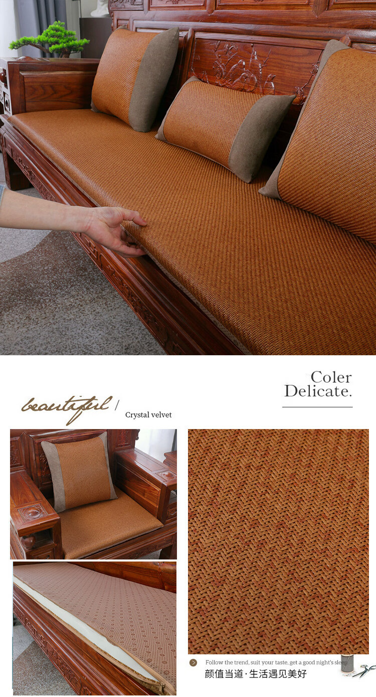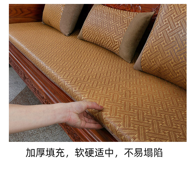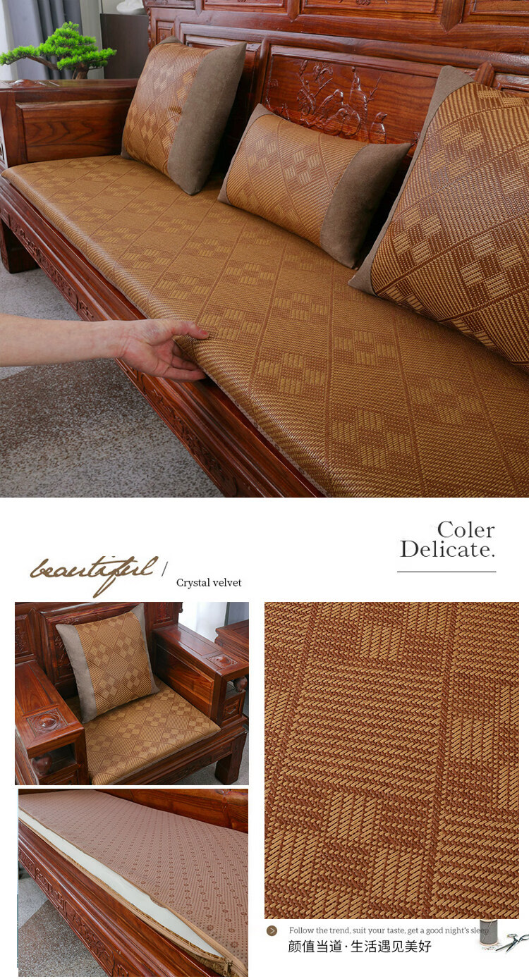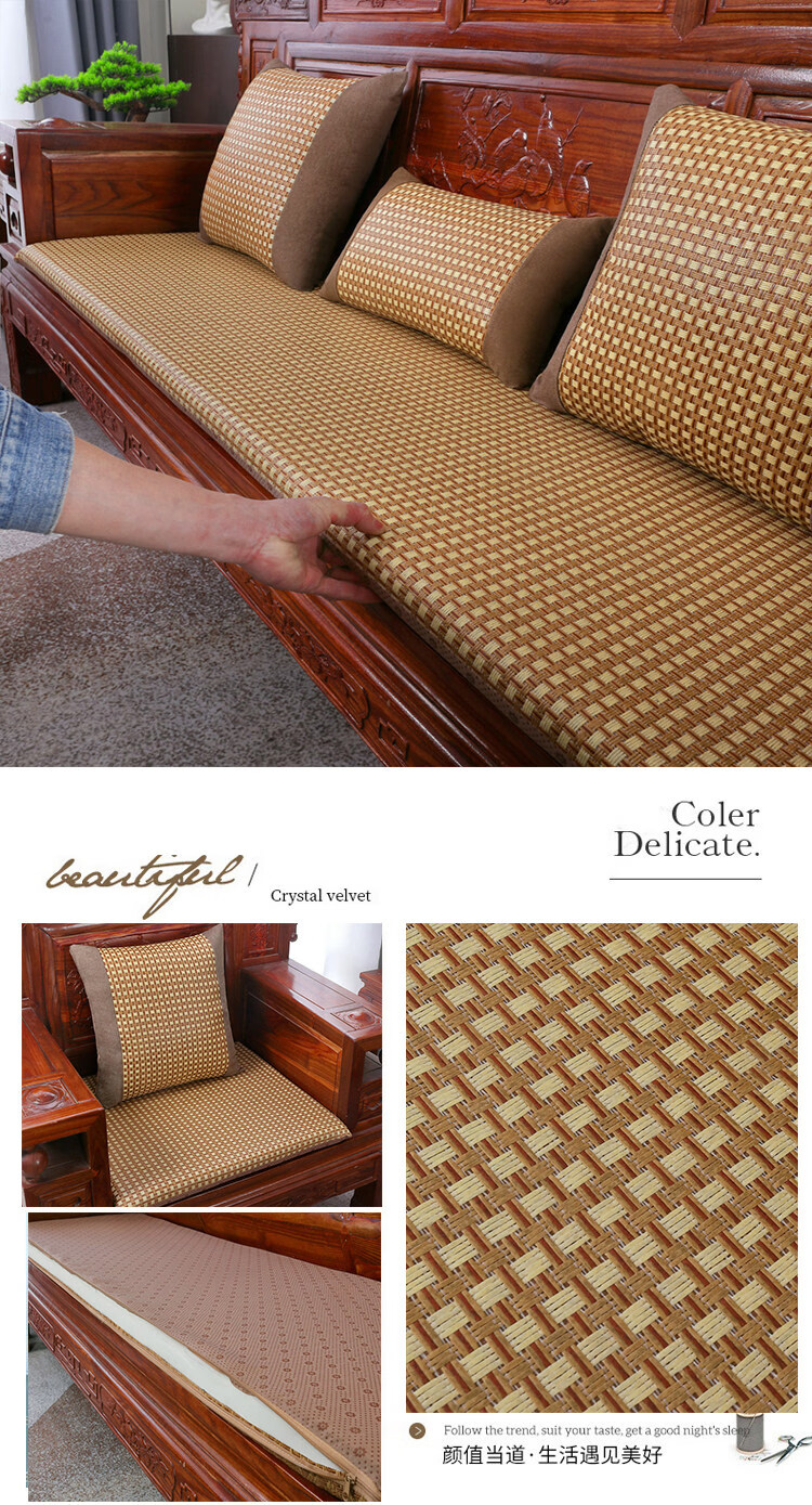 正圣夏季凉席沙发垫四季通用防滑2026年新款红木实木沙发坐垫老式椅垫 锦绣红棕(3cm海绵) 三人座50*170cm