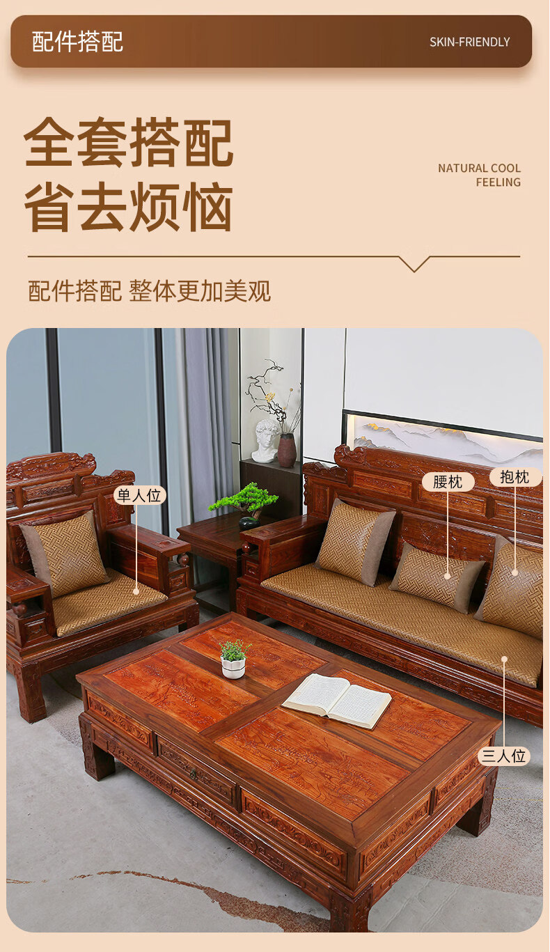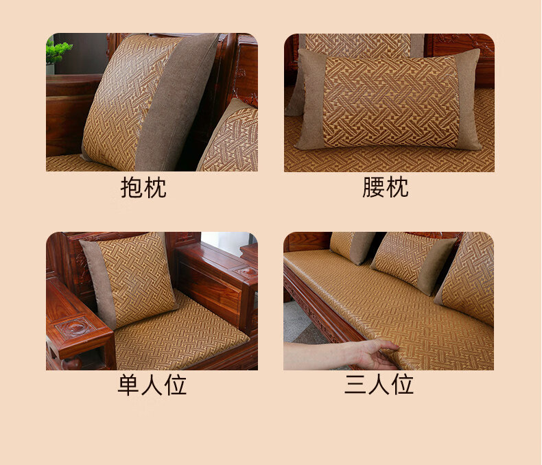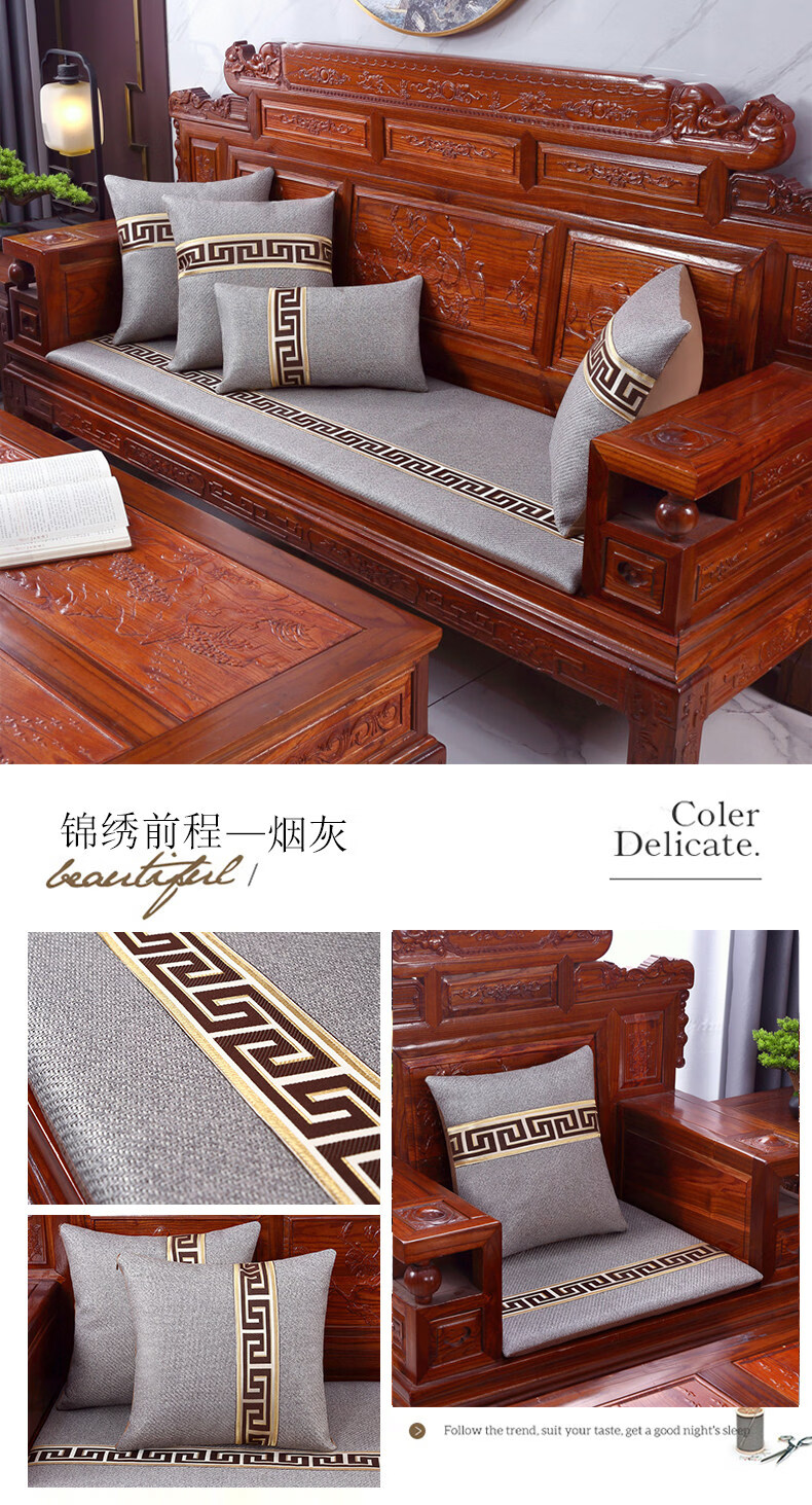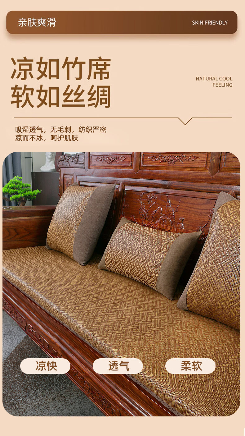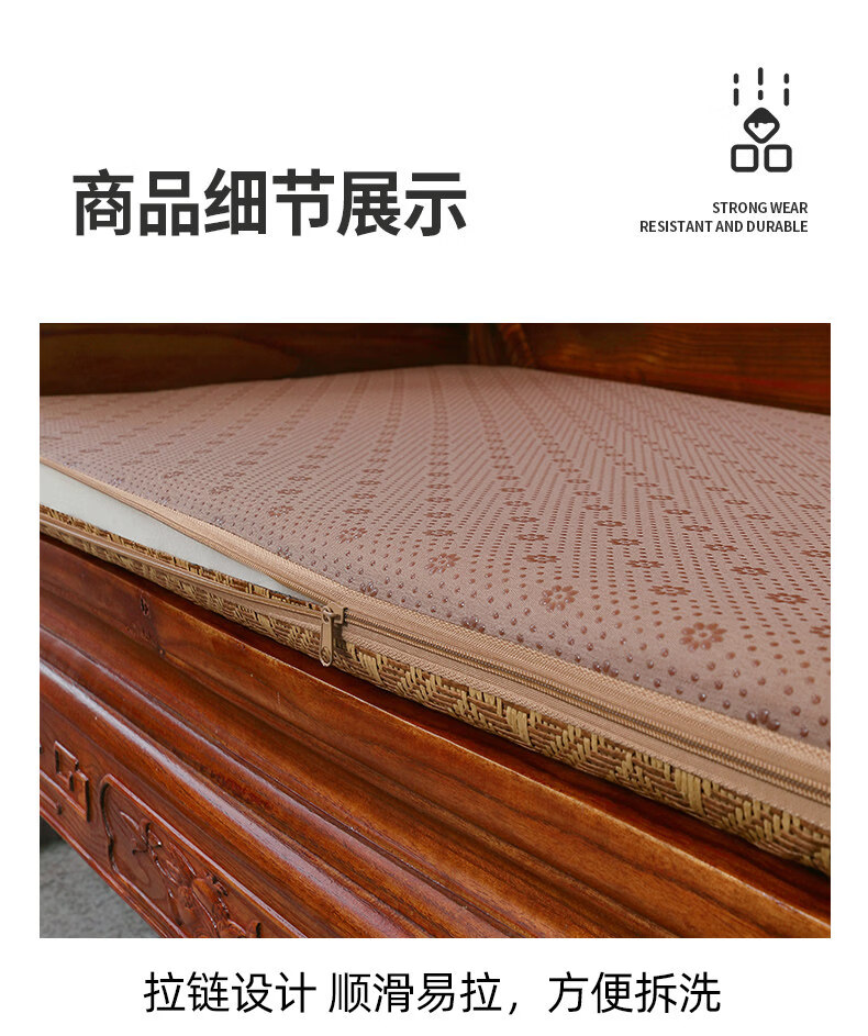 正圣夏季凉席沙发垫四季通用防滑2026年新款红木实木沙发坐垫老式椅垫 锦绣红棕(3cm海绵) 三人座50*170cm