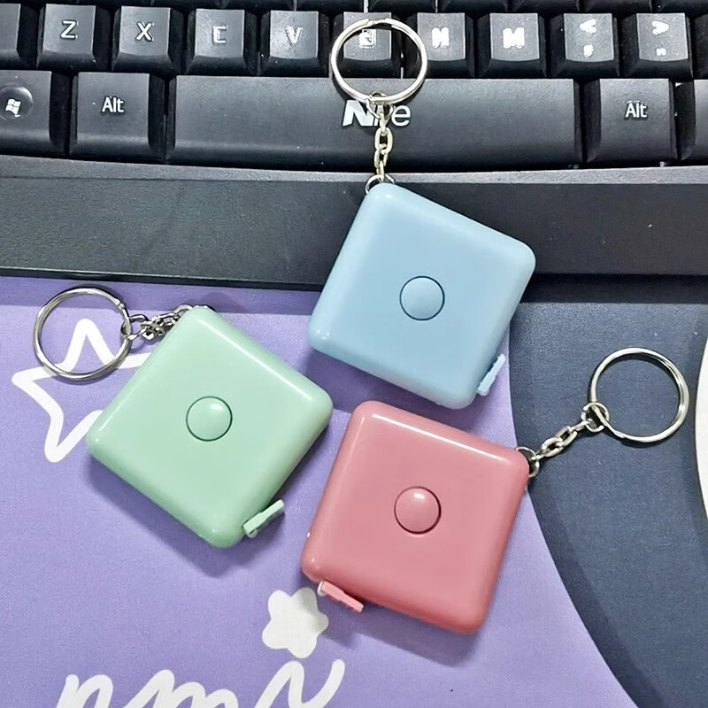 【掉秤必备】北欧风方形钥匙扣自动伸缩迷你小卷尺量衣皮尺三围尺 方形北欧绿