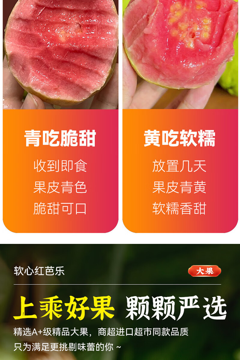 奶油白心红心芭乐 新鲜软糯低卡低热量轻食首先水果 福建芭乐3斤带箱净重2.7(白心+红心)单果100g起