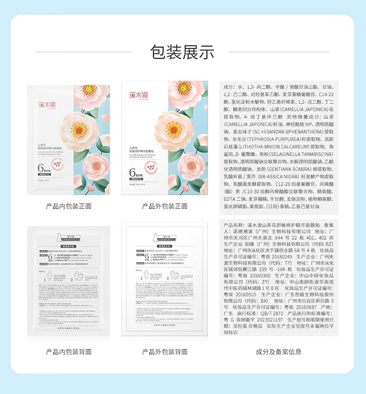 屈臣氏溪木源山茶花舒敏修护精华面膜贴 28ml* 5片