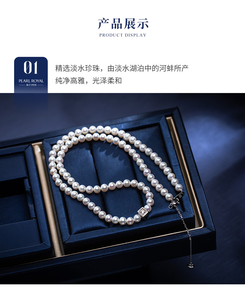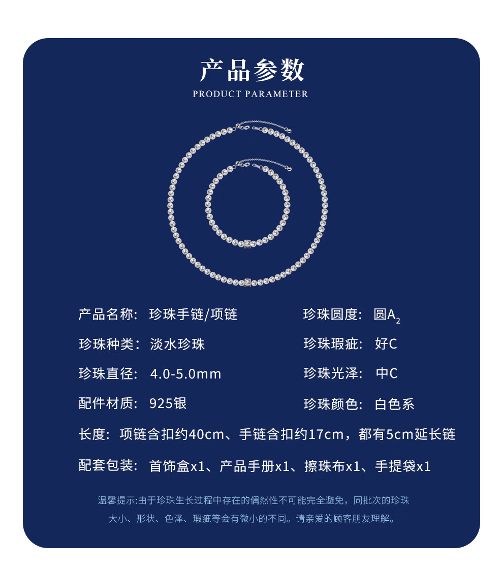 南珠宫露华淡水珍珠项链手链套装强光圆形百搭新年礼物送妈妈 珍珠项链 银色4.0-5.0mm
