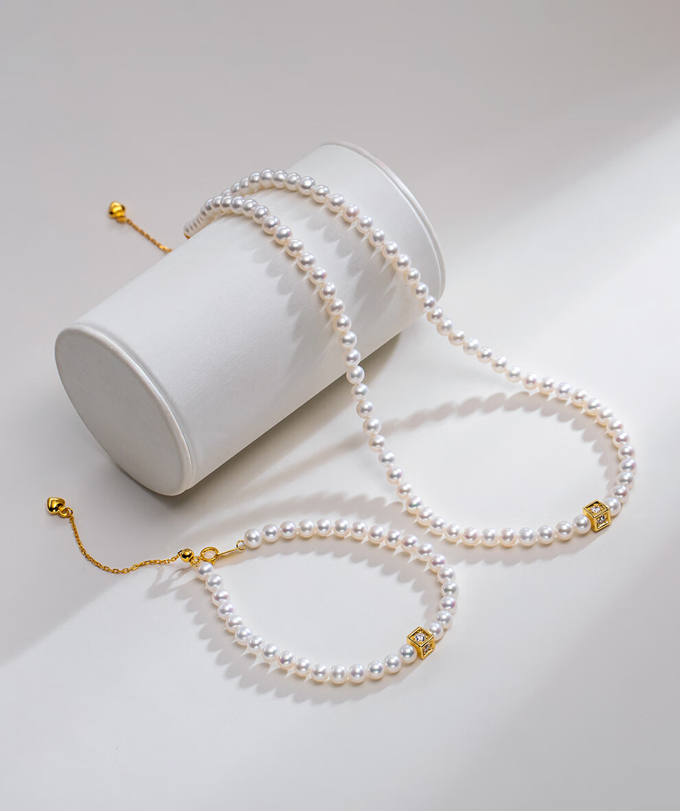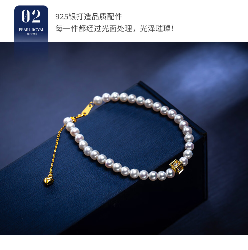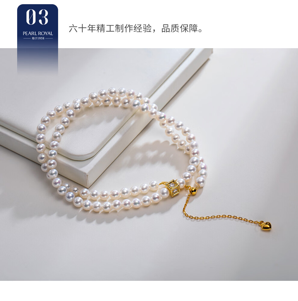 南珠宫绾华925银双层海水珍珠手链强光泽圆形年轻款百搭新年礼物送老婆 金色款 5.5-6.0mm