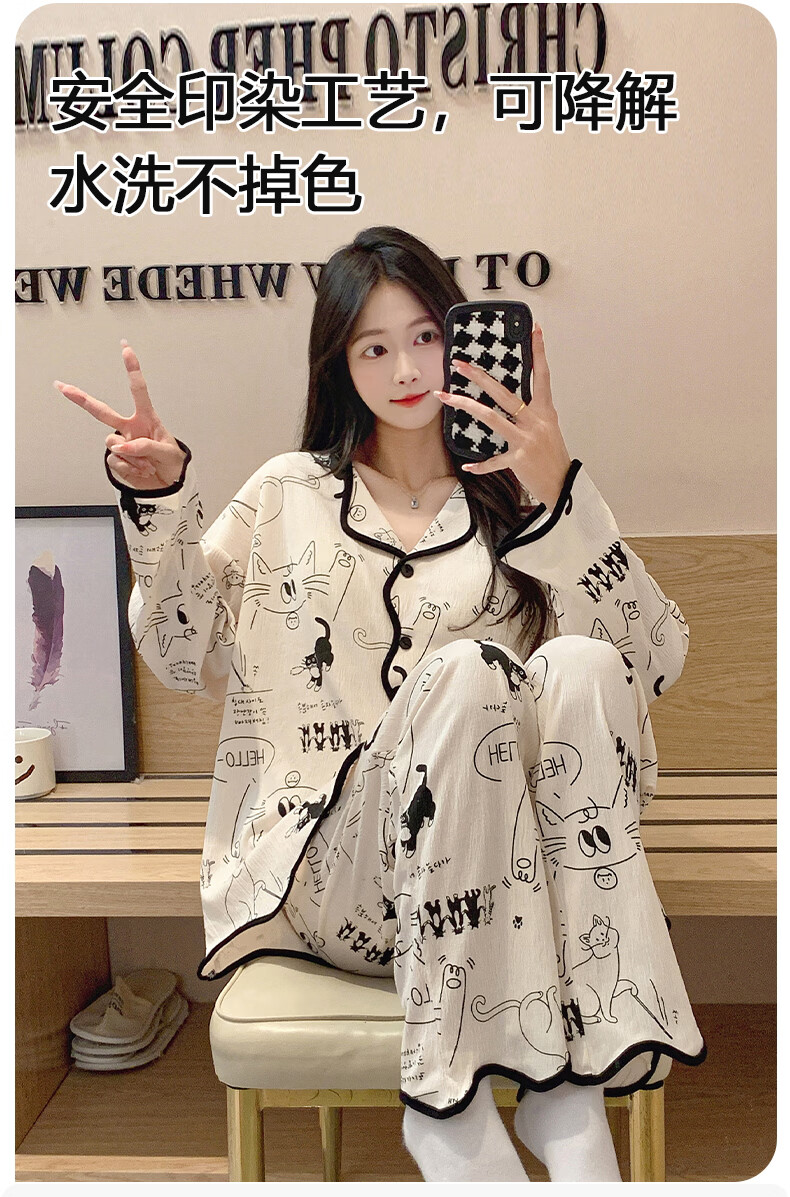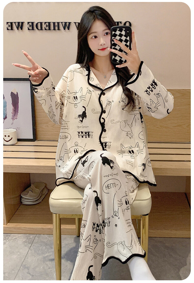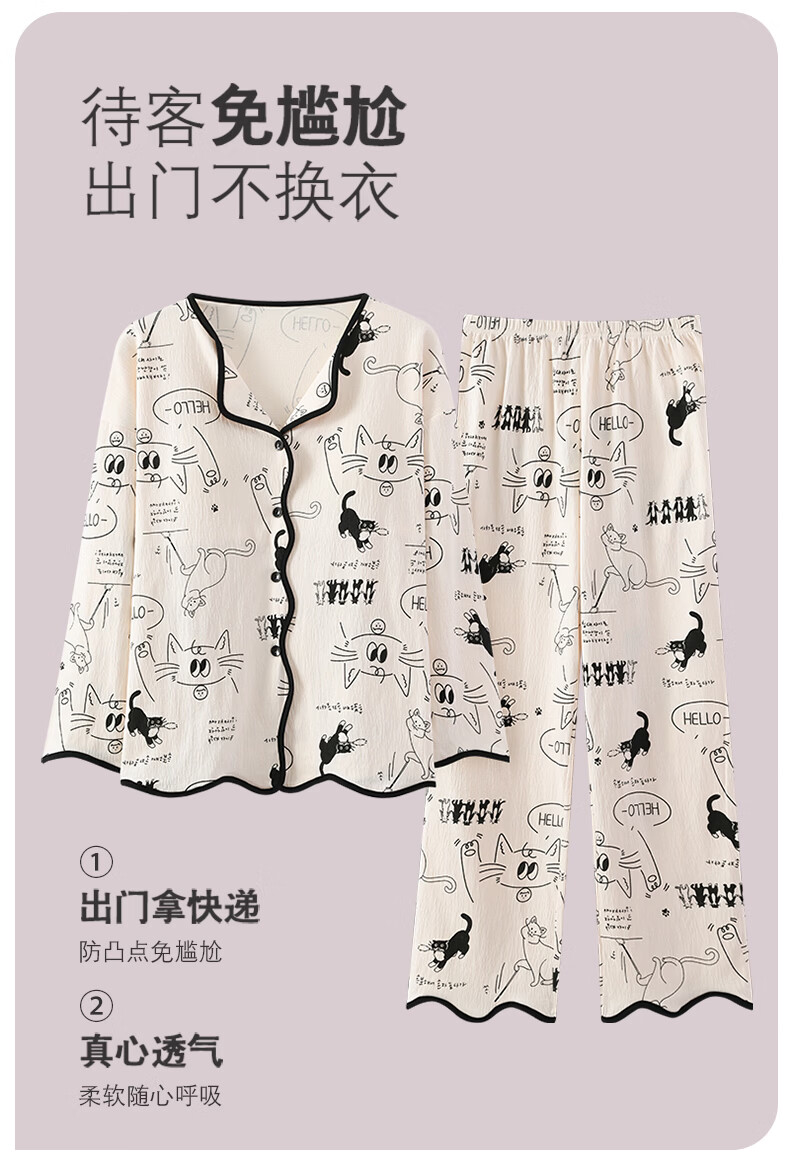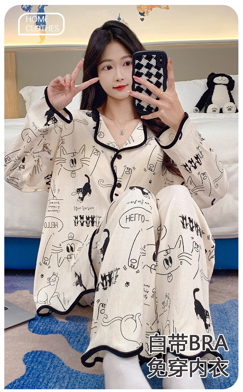 芬腾可安(FENTENGCARE)【N】秋季睡衣女带胸垫长袖开衫卡通可爱家居服防凸点套装冬 46040【带胸垫套装】 XL【115-135斤】