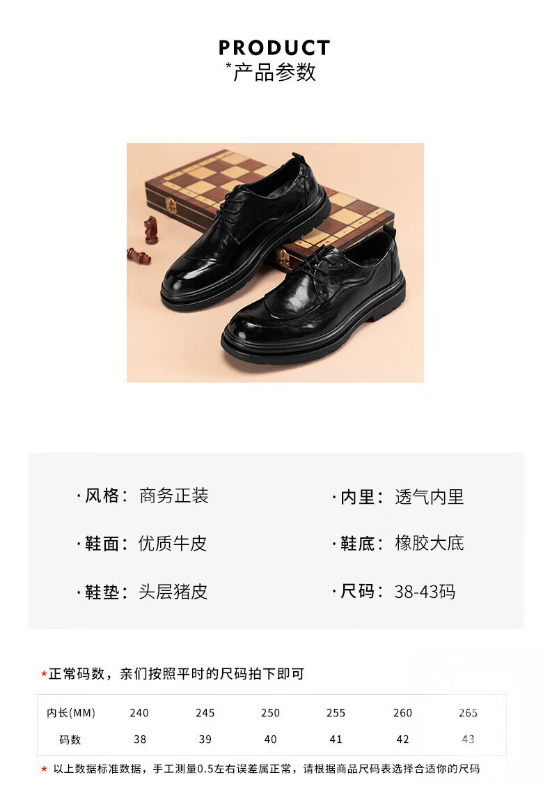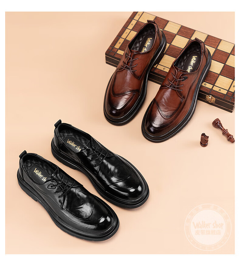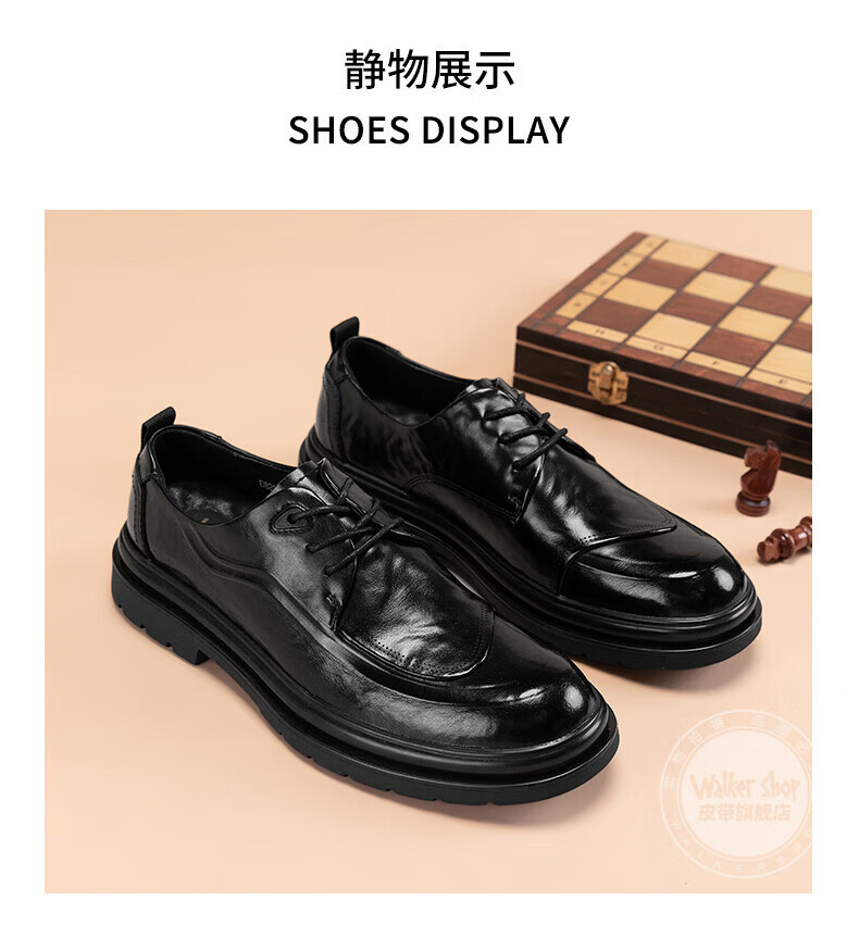 Walker Shop皮鞋男高端商务正装男士皮鞋2026新款休闲真皮透气软底内增高男鞋 黑色【内增高】 40