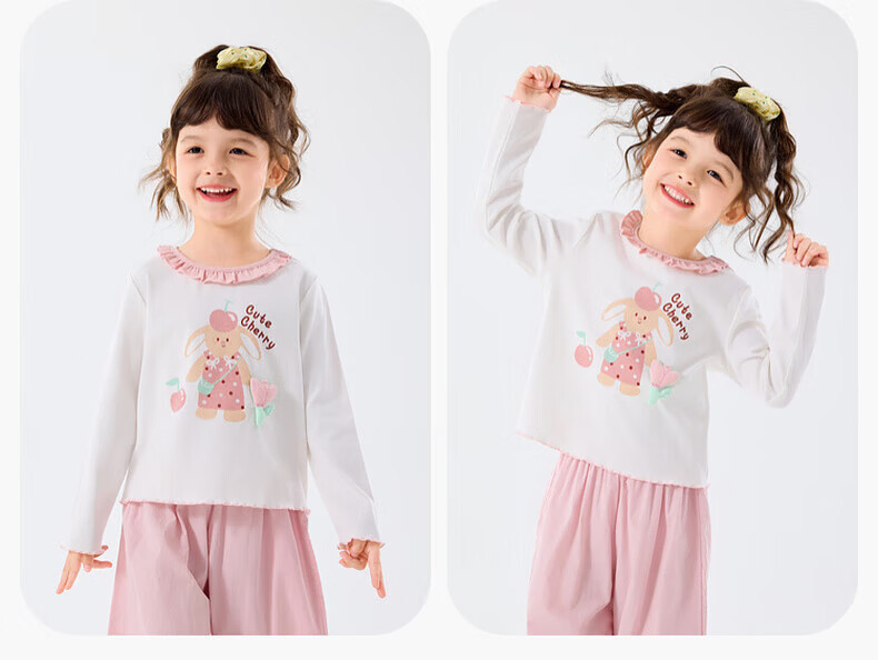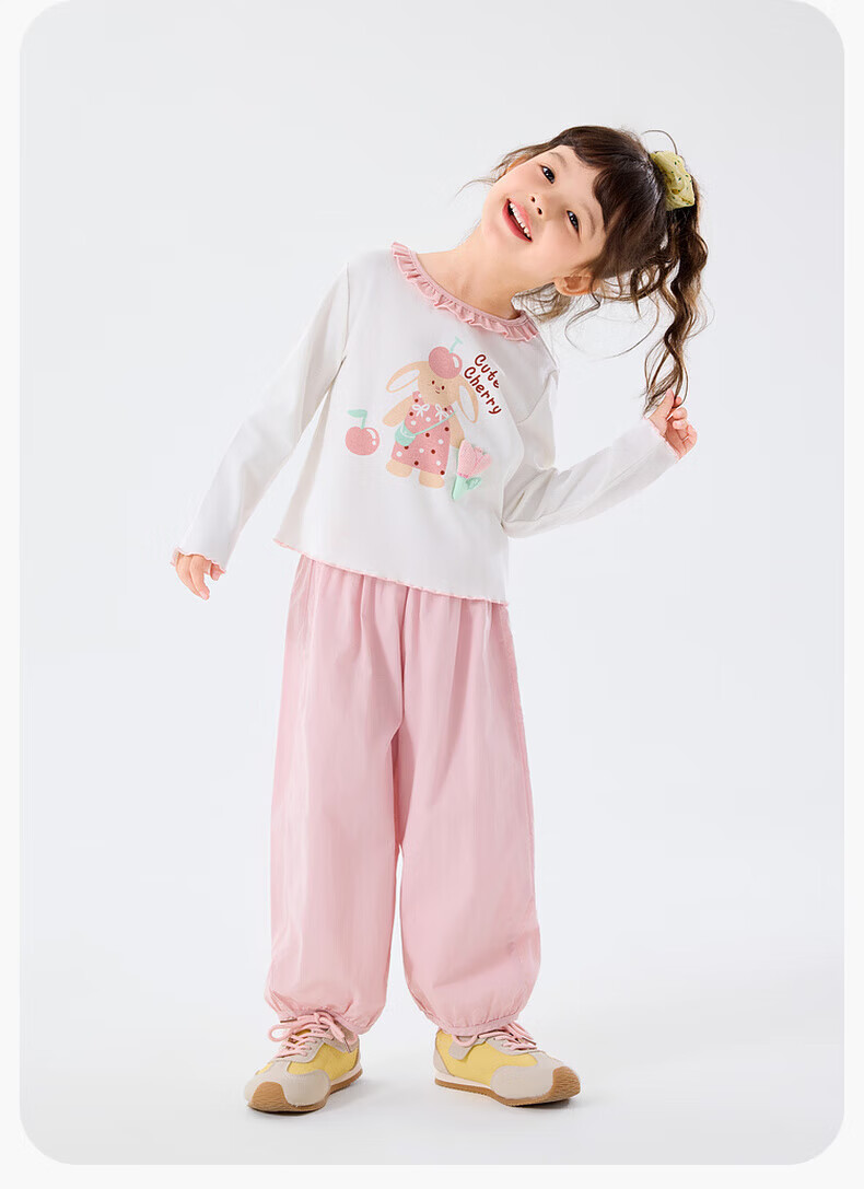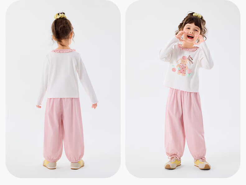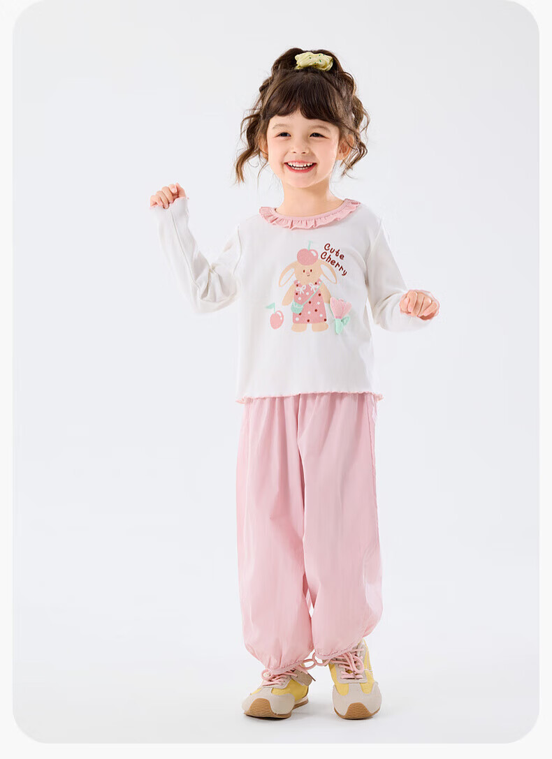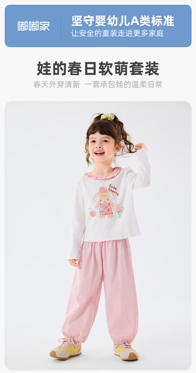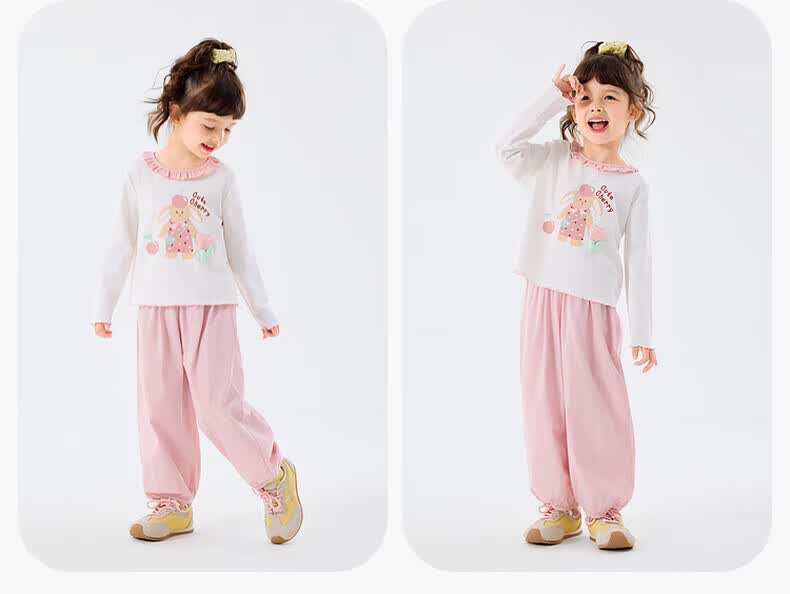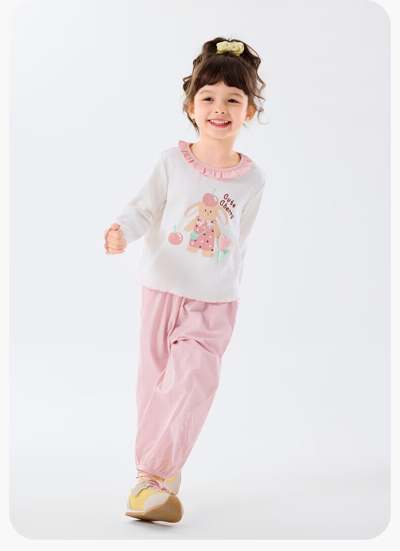 嘟嘟家儿童套装卡通春款女童T恤裤子春装女宝上衣长裤两件套女孩童装潮 山茱萸粉 90