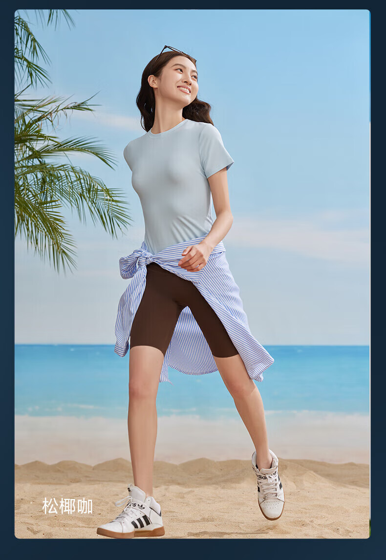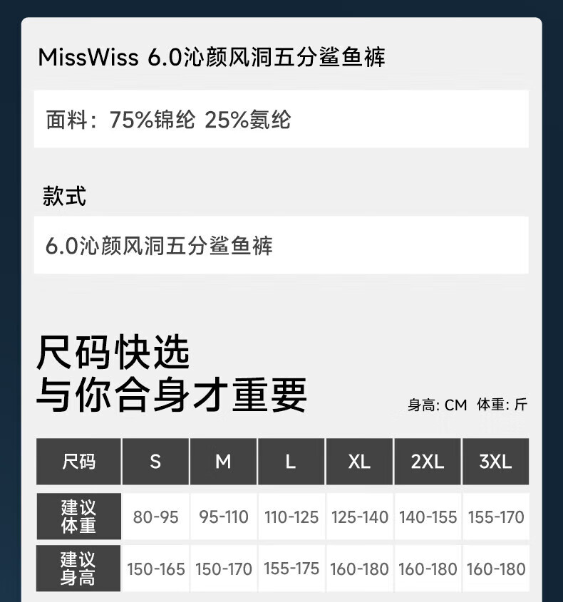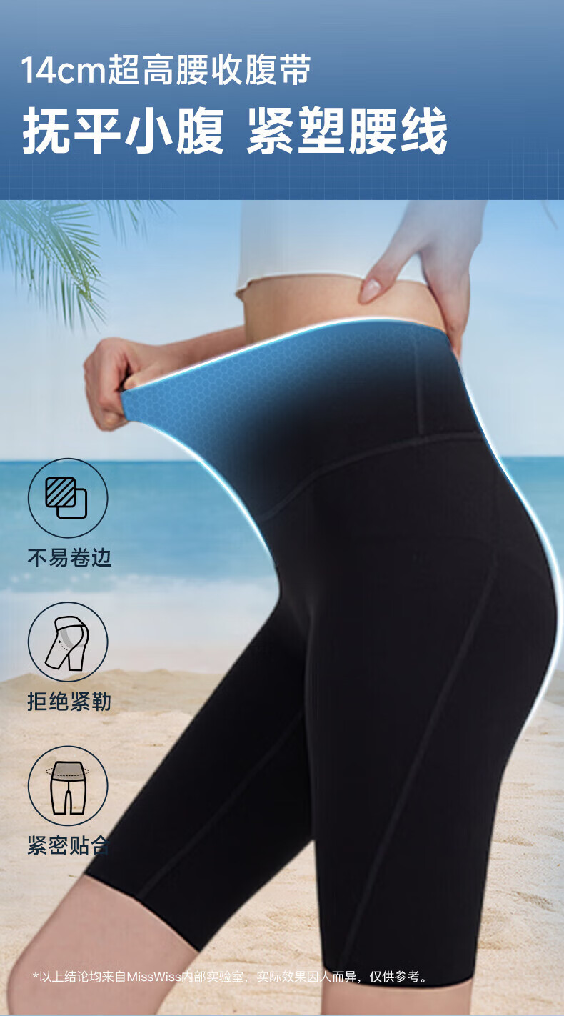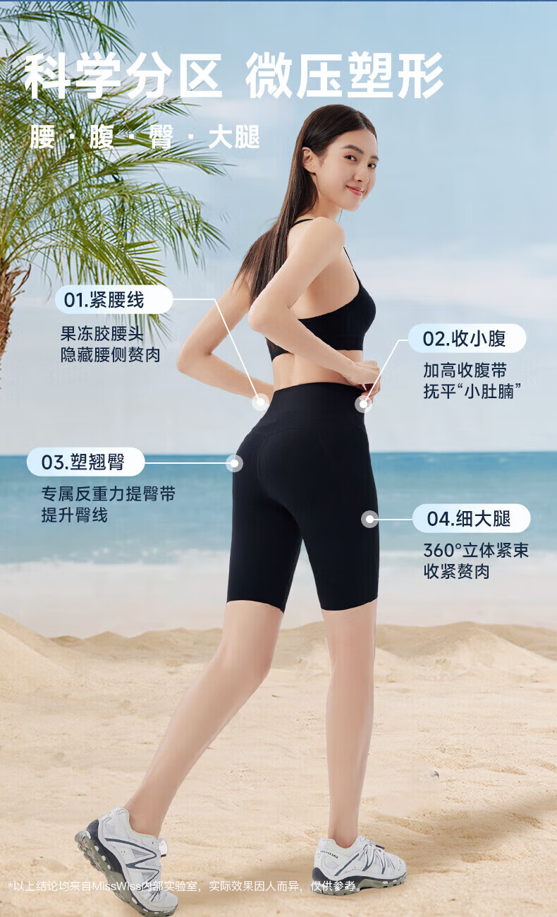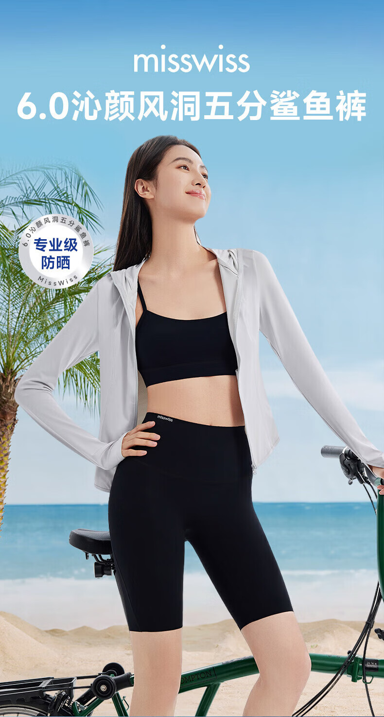 MissWiss夏新款五分凉感防晒外穿鲨鱼裤收腹提臀显瘦女瑜伽打底裤 【五分款】女神黑 S