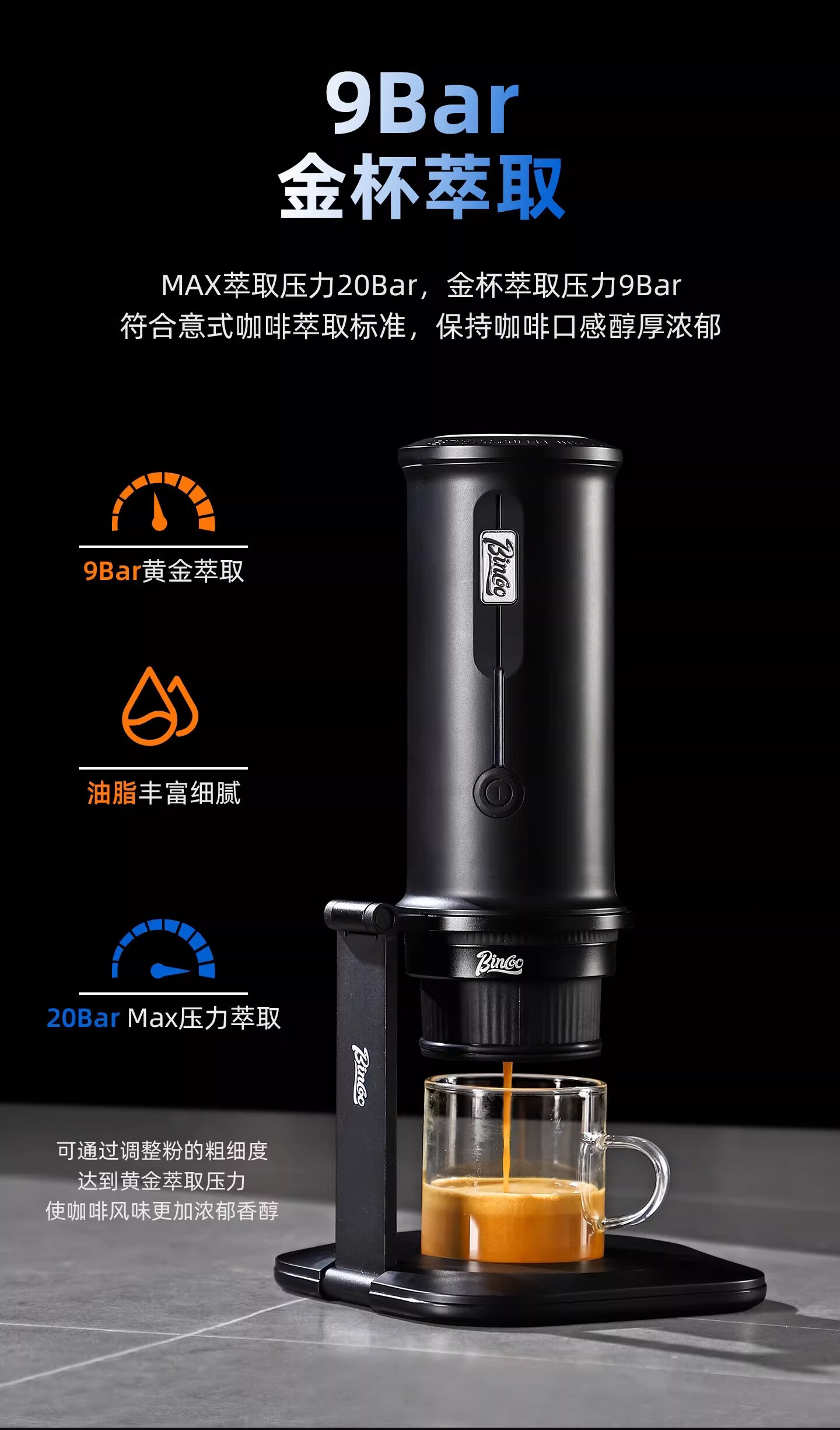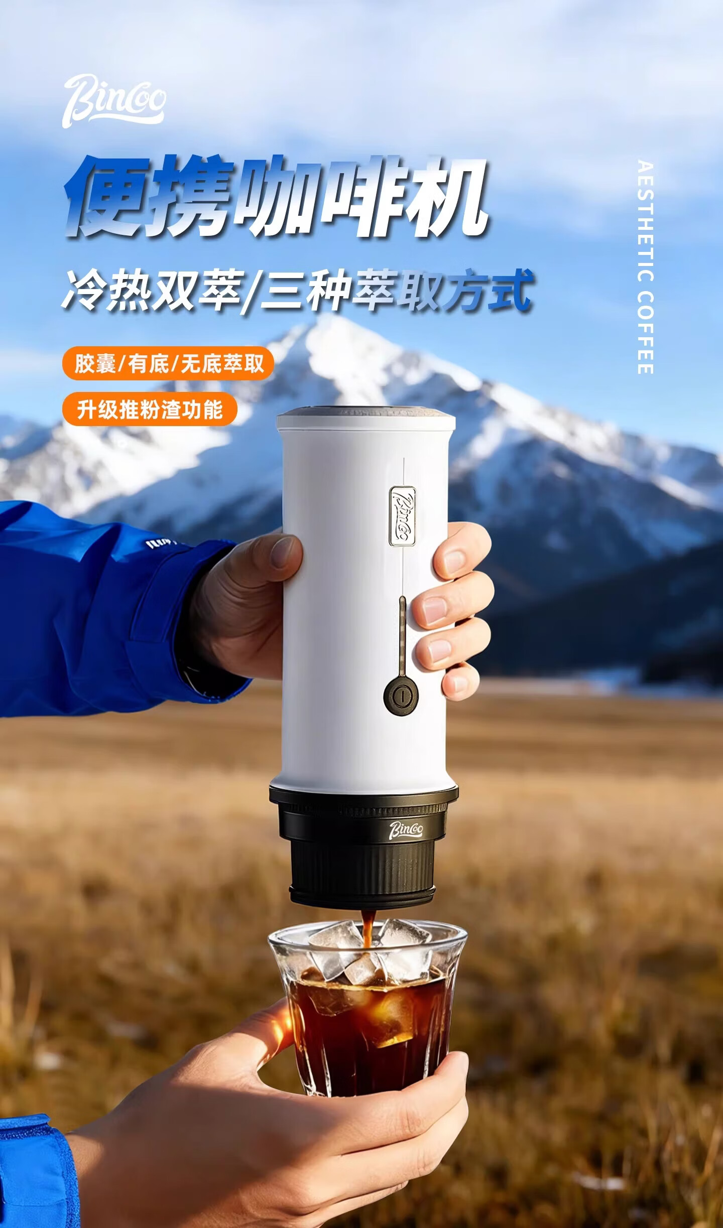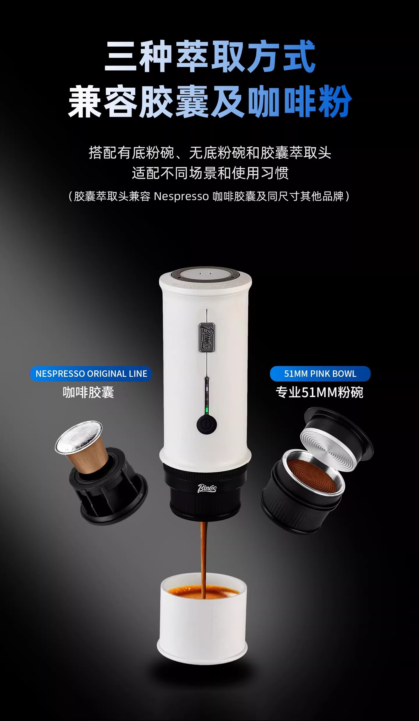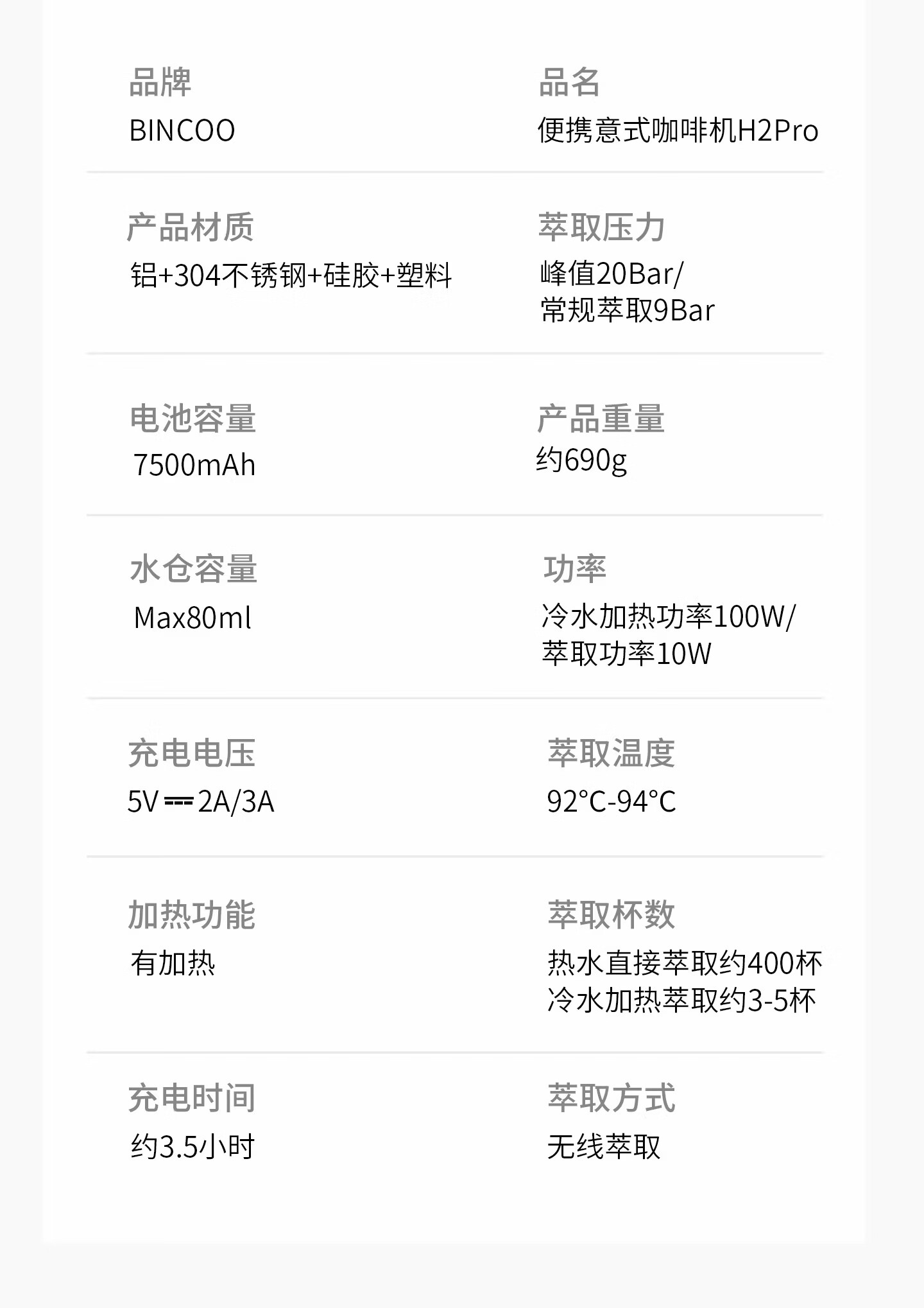 Bincoo便携咖啡机H2Pro 胶囊咖啡户外露营家用电动意式浓缩萃取机 冰刀白 | 20bar冷热双萃+咖啡粉胶囊通用+专利反推渣