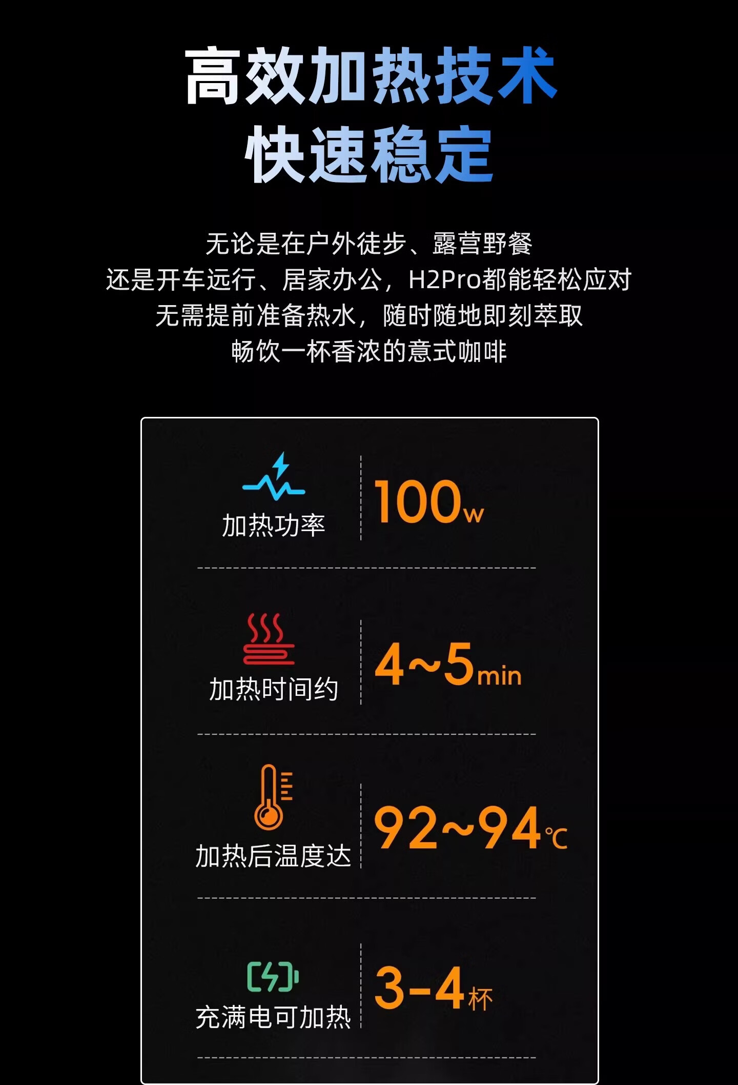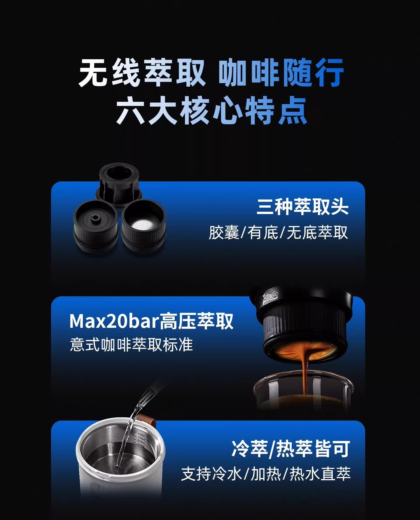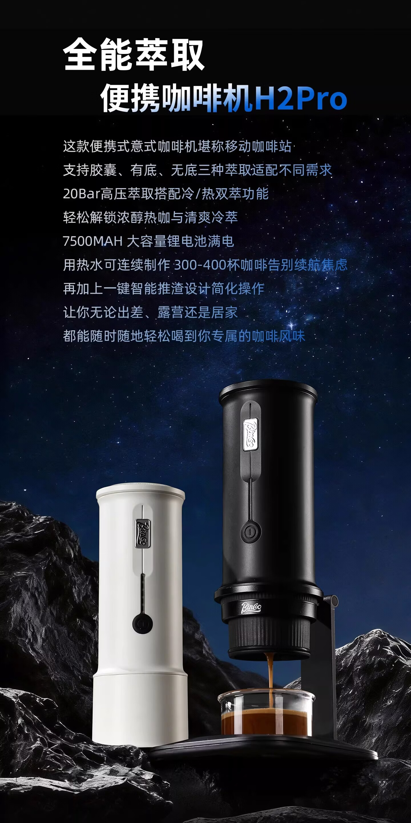 Bincoo便携咖啡机H2Pro 胶囊咖啡户外露营家用电动意式浓缩萃取机 冰刀白 | 20bar冷热双萃+咖啡粉胶囊通用+专利反推渣