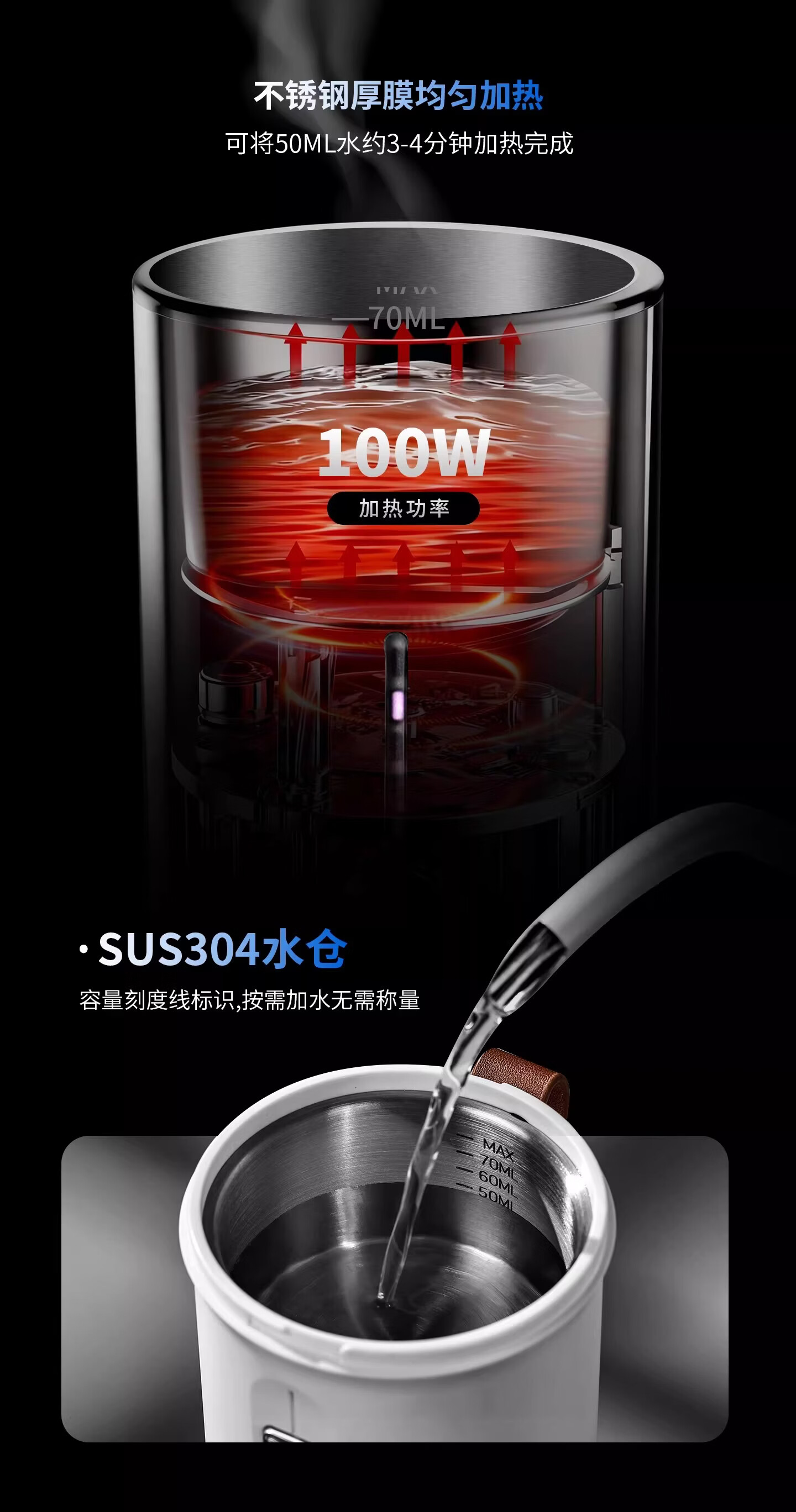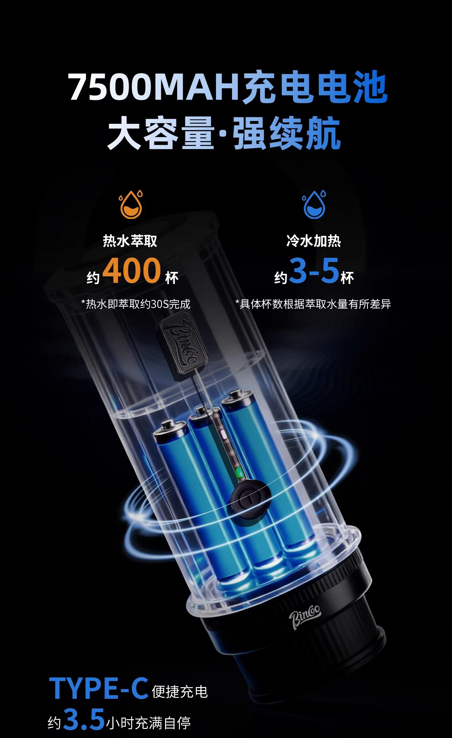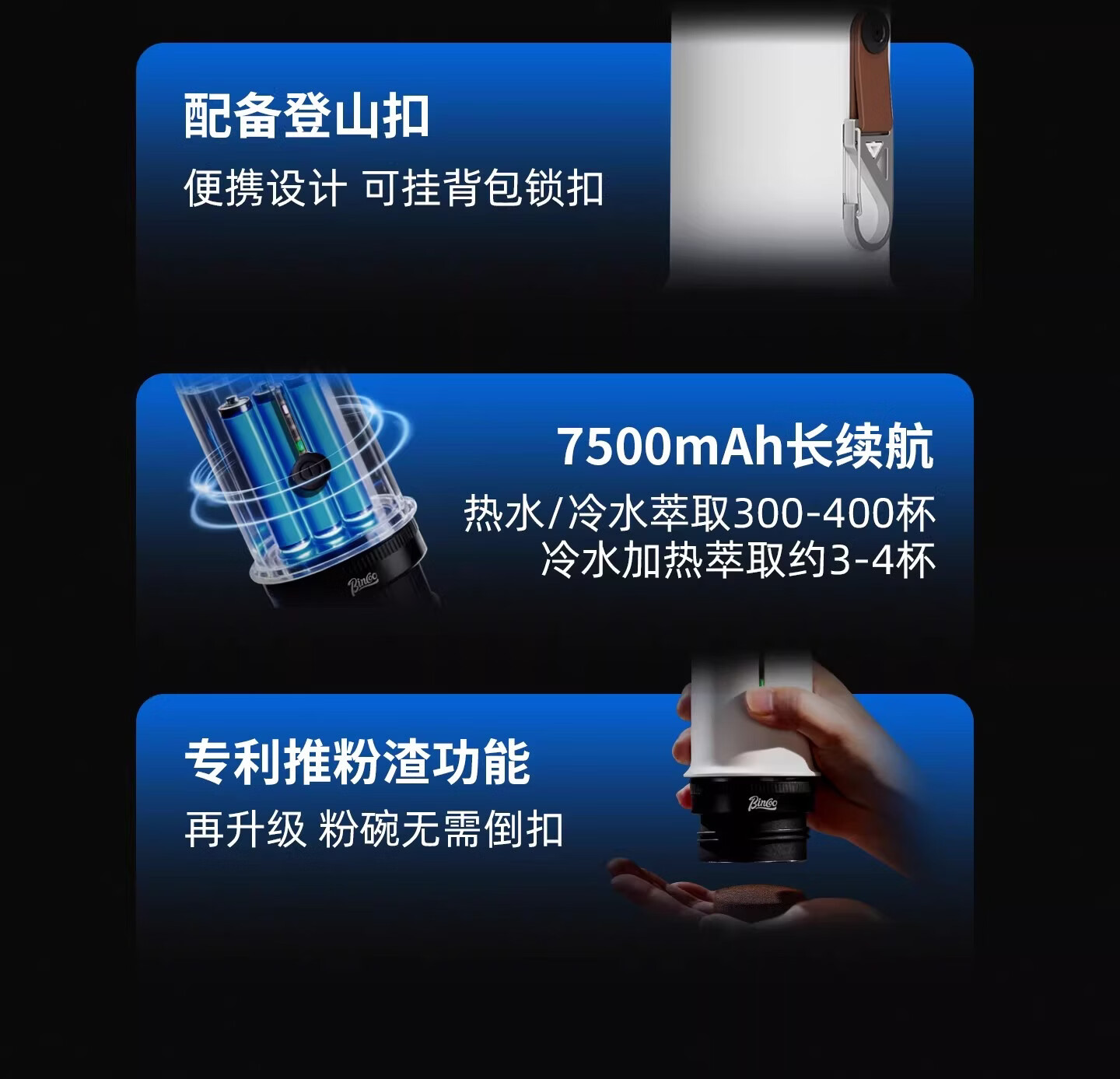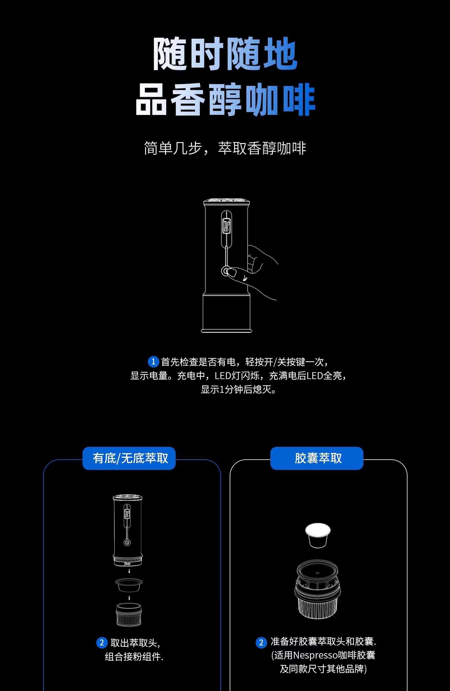 Bincoo便携咖啡机H2Pro 胶囊咖啡户外露营家用电动意式浓缩萃取机 冰刀白 | 20bar冷热双萃+咖啡粉胶囊通用+专利反推渣
