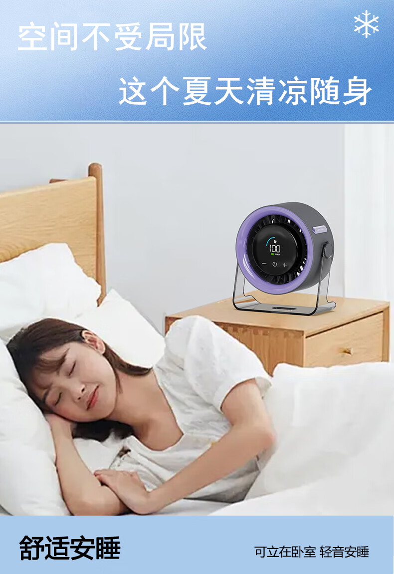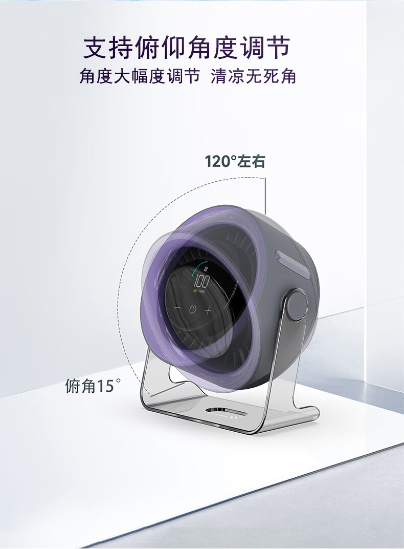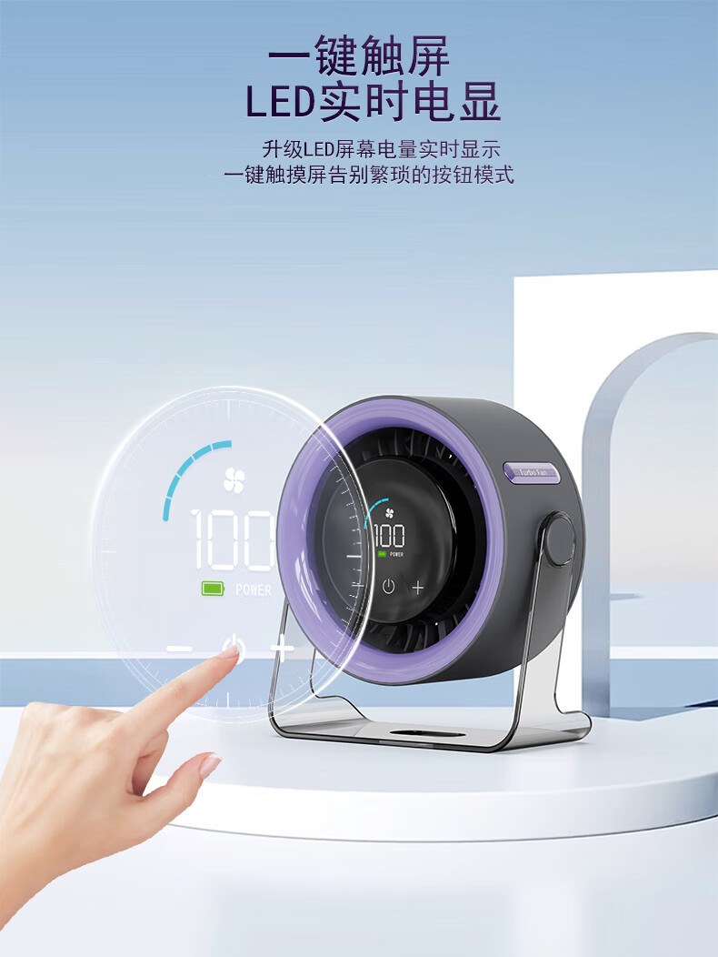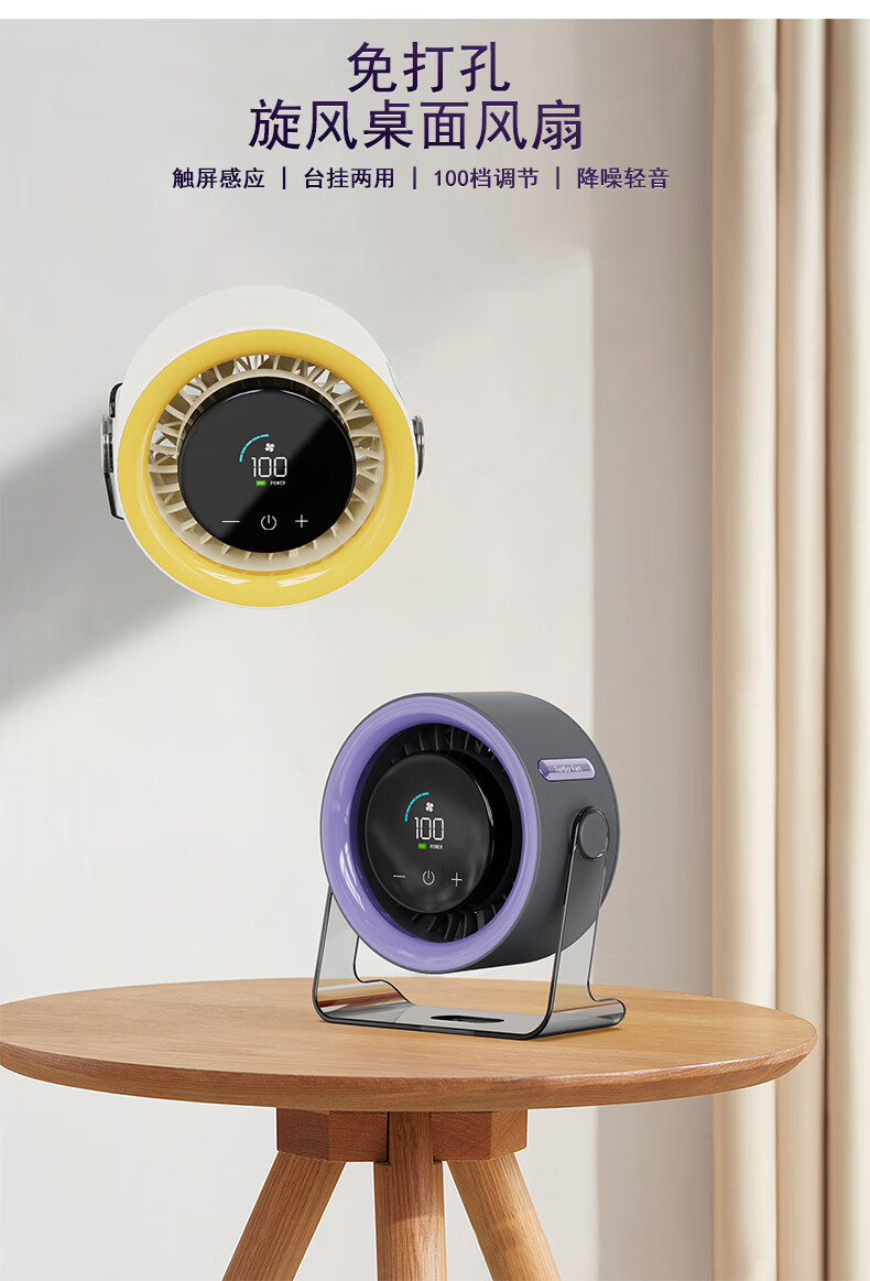 有厘头【空气循环扇】桌面小型风扇USB家用台式小电扇涡轮制冷便携大风力空调扇宿舍厨房办公室挂壁卧室 「充电款-柠檬黄」100档无极风力 触屏感应 台挂两用