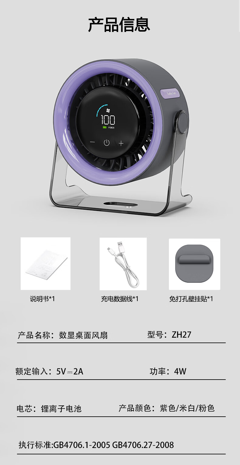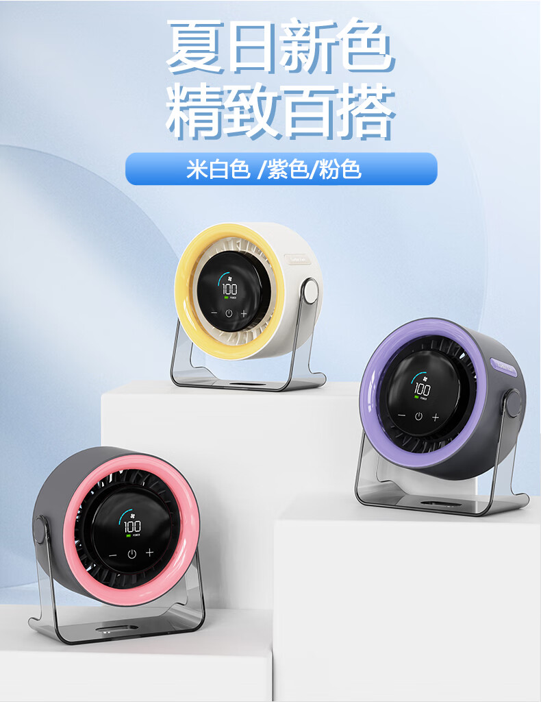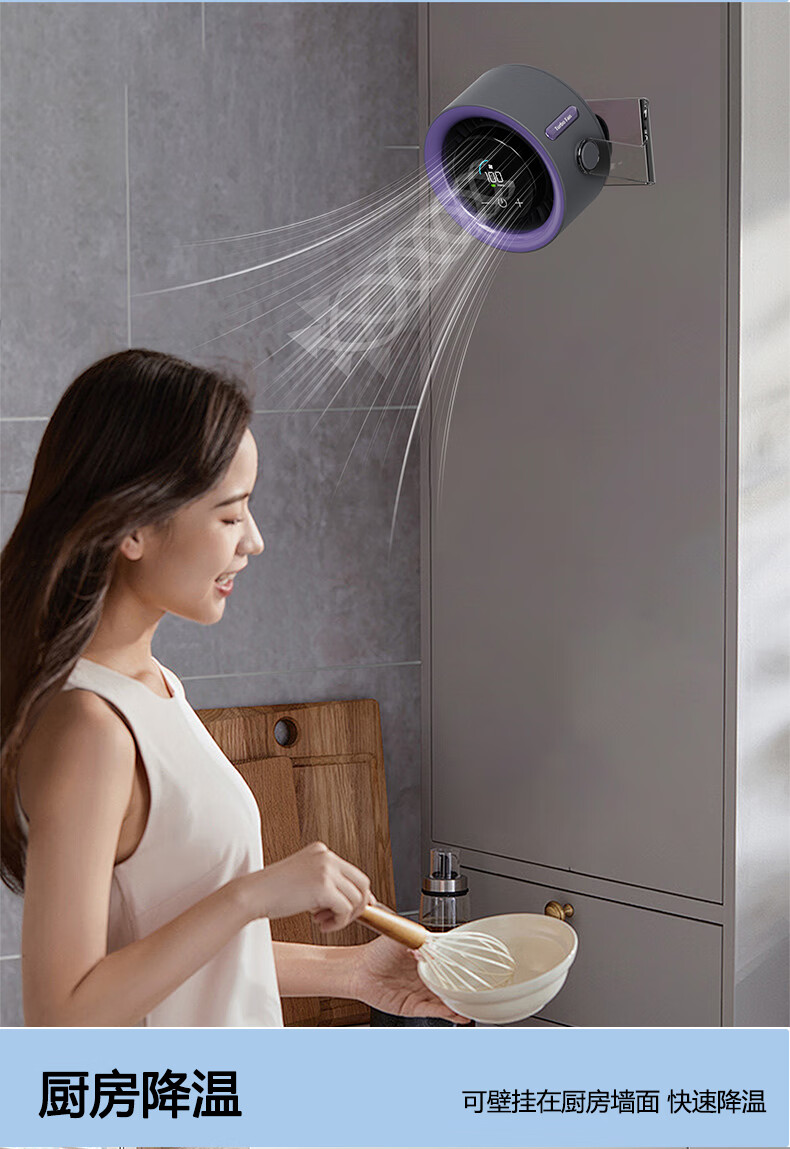 有厘头【空气循环扇】桌面小型风扇USB家用台式小电扇涡轮制冷便携大风力空调扇宿舍厨房办公室挂壁卧室 「充电款-柠檬黄」100档无极风力 触屏感应 台挂两用