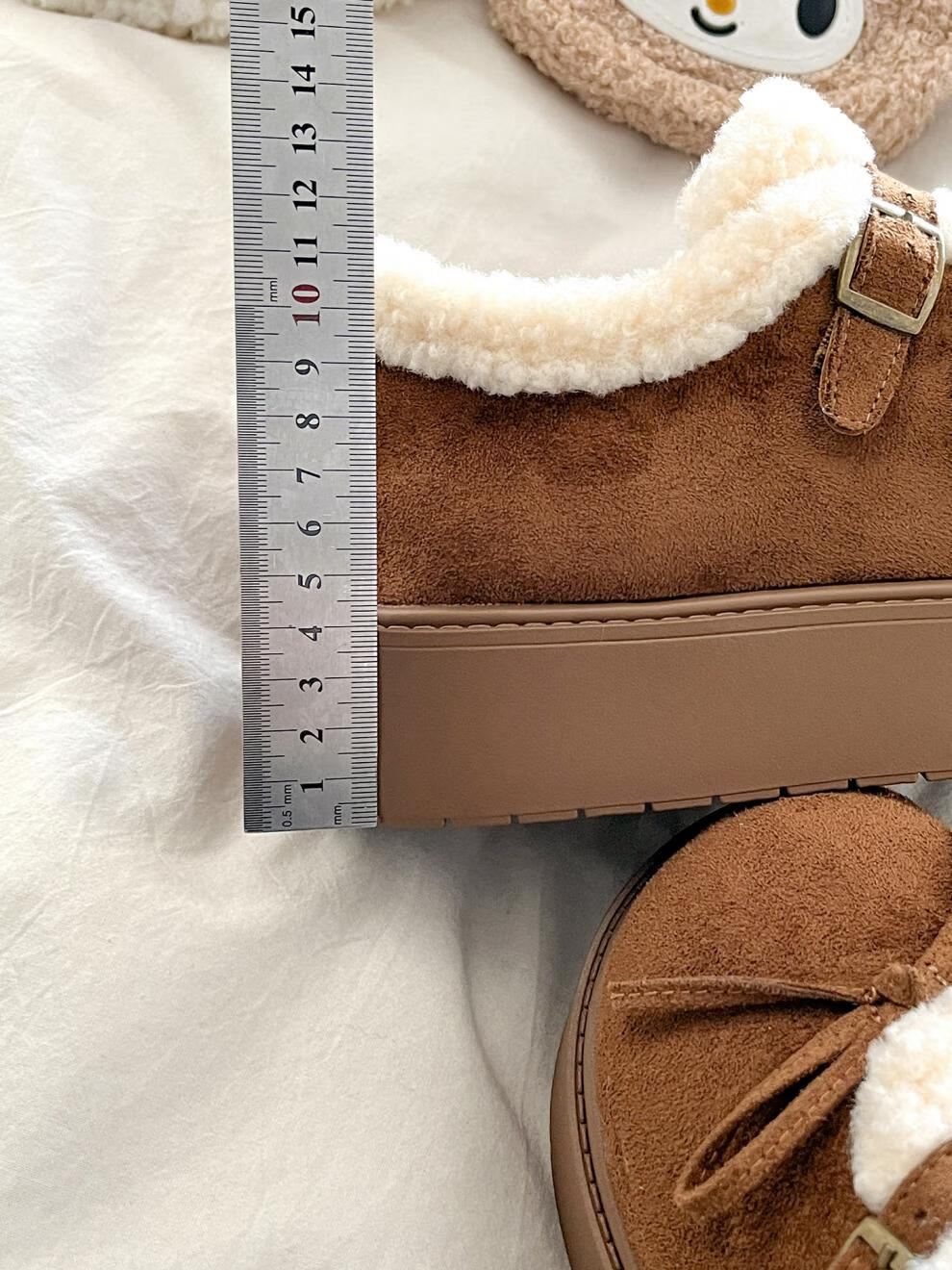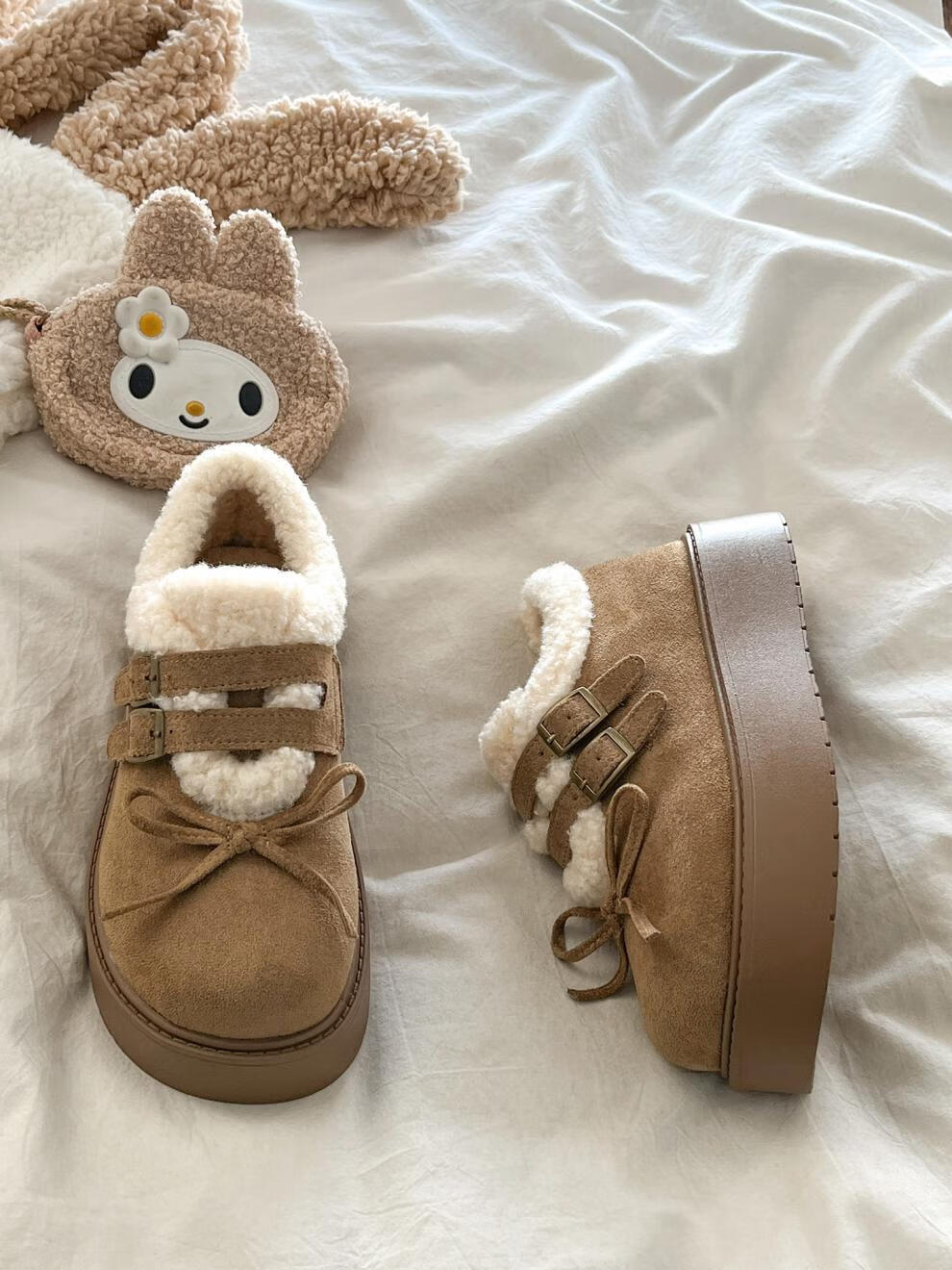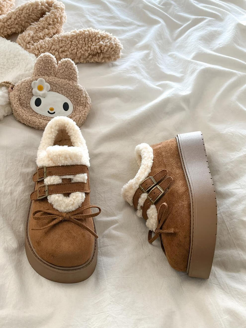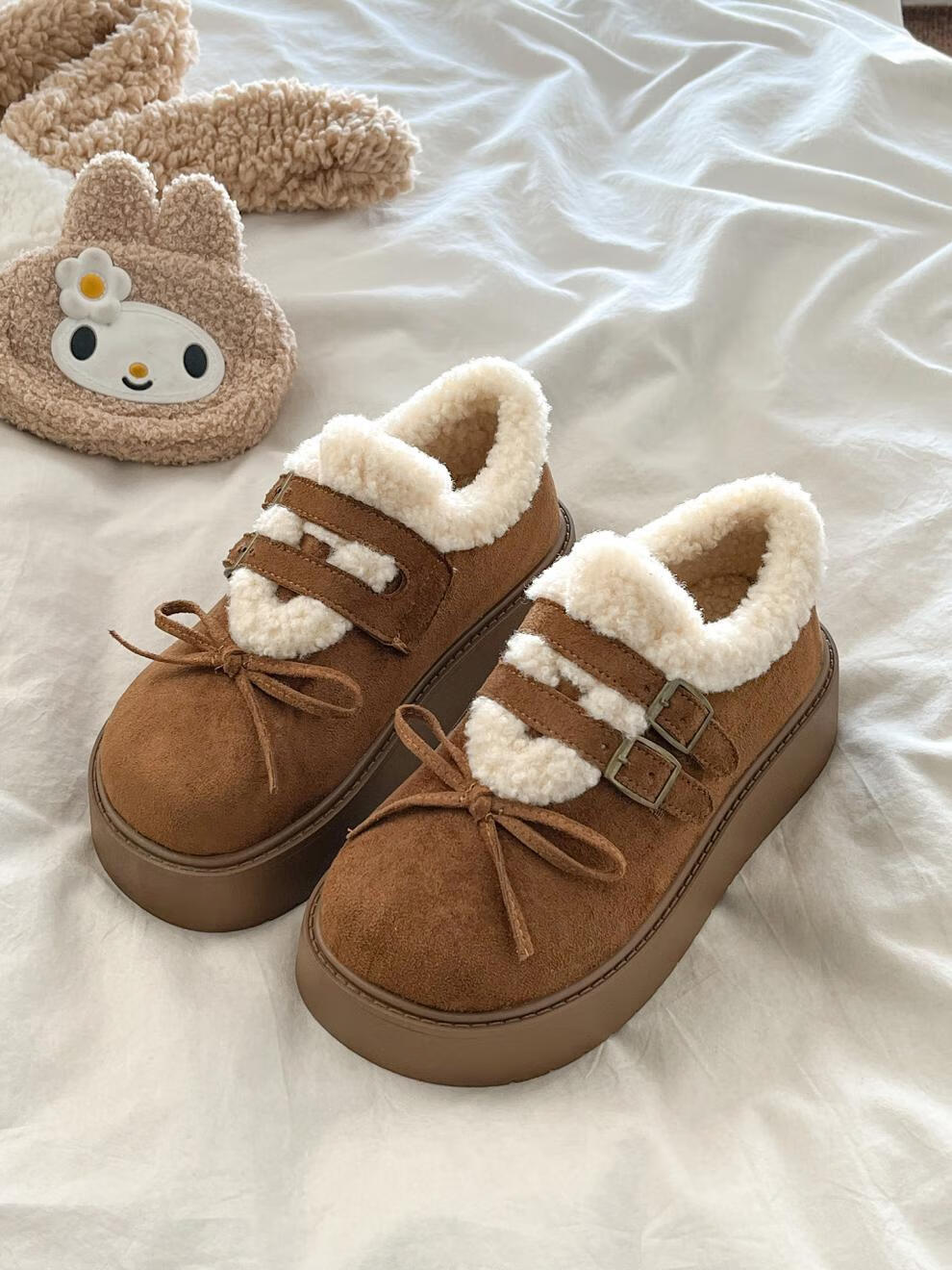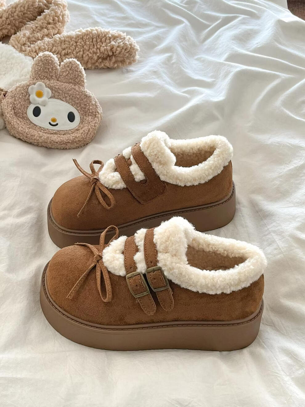 稻草人(MEXICAN)厚底加绒保暖全包勃肯鞋女2026冬季新款低帮棉鞋毛毛乐福鞋雪地靴 米色【升级版】 35