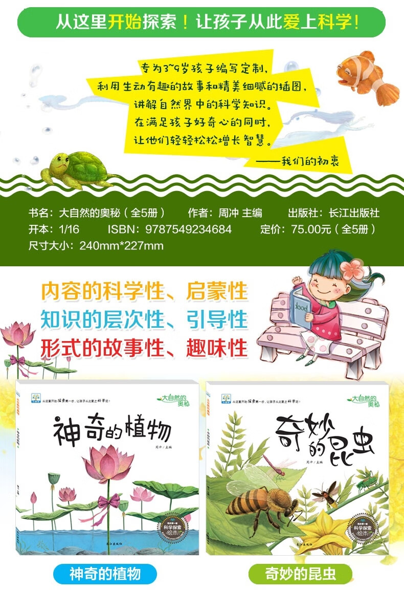 全套5册正版童书奇妙的昆虫绘本漫画书儿童书籍睡前故事书幼儿百 大自然的奥秘全5册 无规格