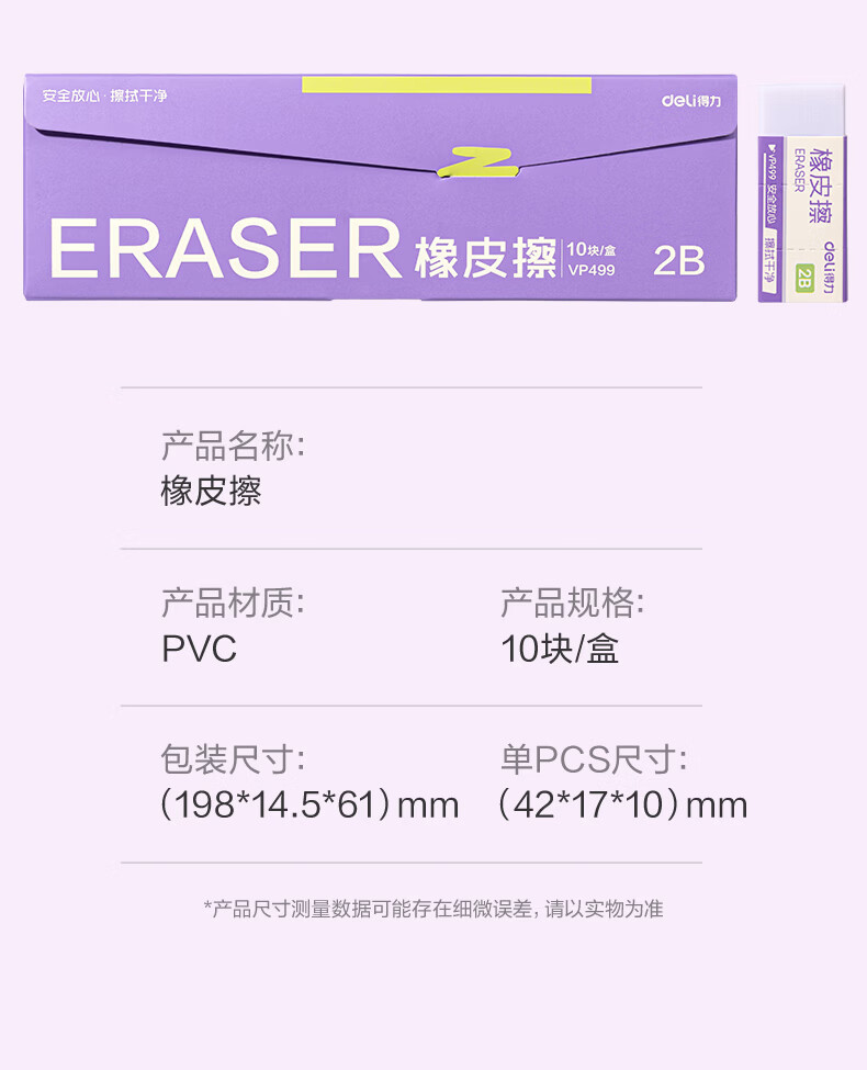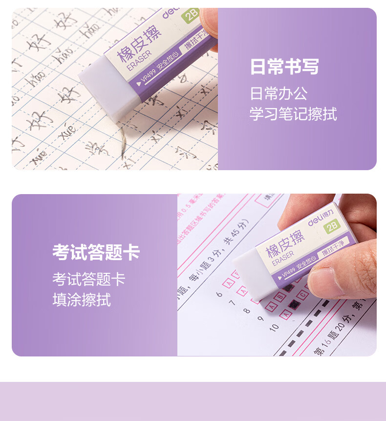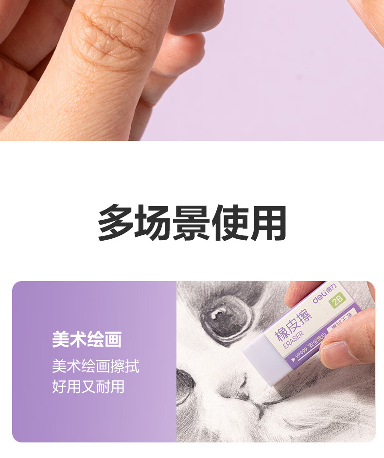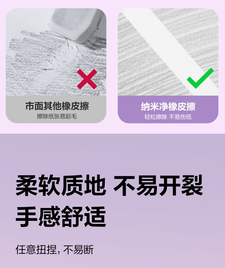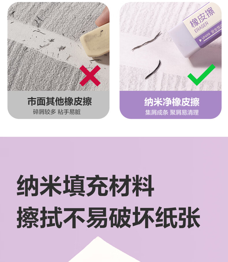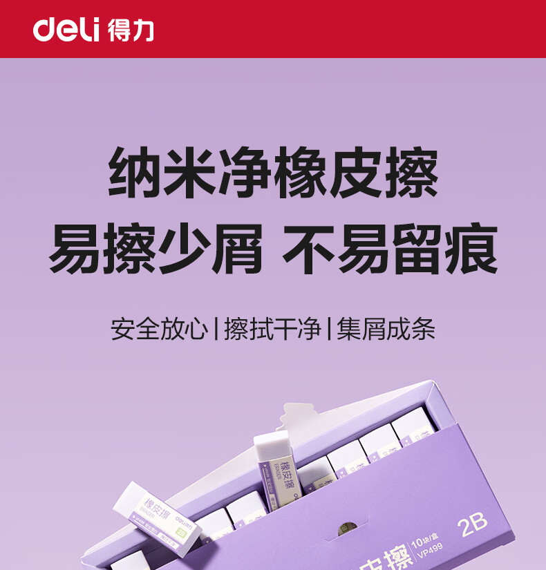 得力(deli)橡皮擦小学生专用无屑干净纳米橡皮擦巨干净橡皮幼儿园铅笔橡皮不易留痕迹聚屑成线 【纳米净】大号10块整盒-集屑成条 质地柔软/不易擦破纸
