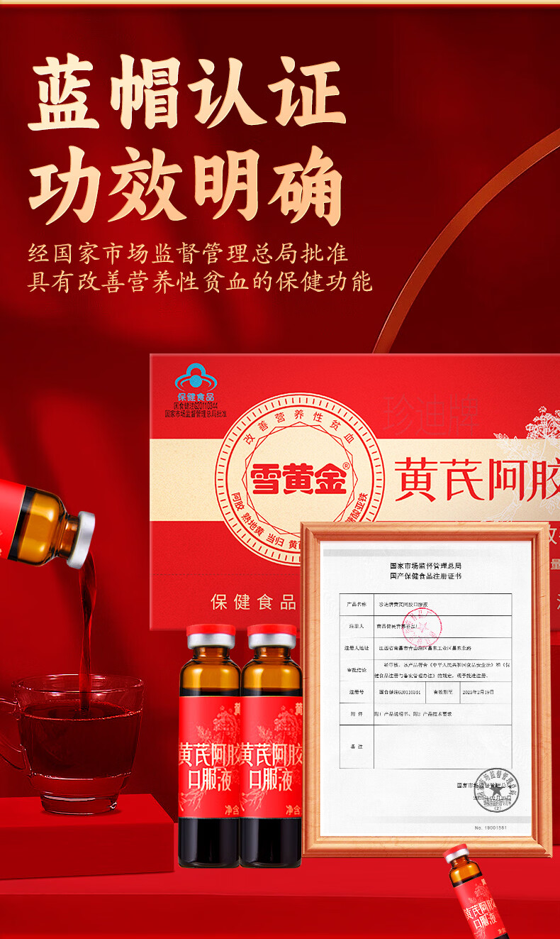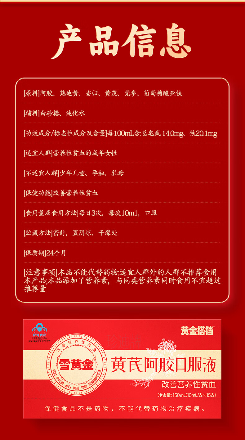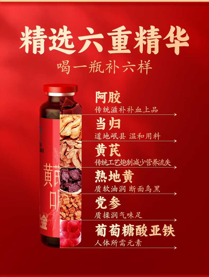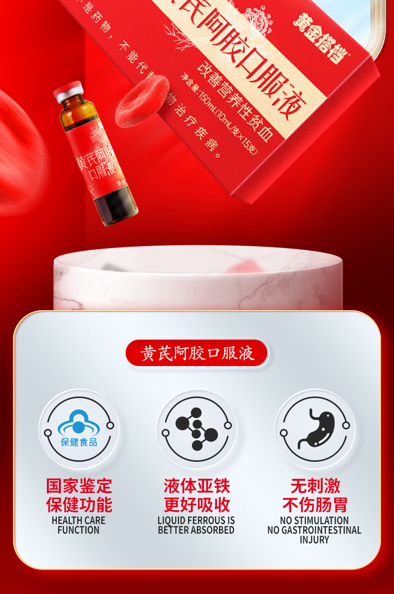 黄金搭档黄芪阿胶口服液女士口服液改善营养性贫血过节送礼 15支*6盒 【改善贫血】