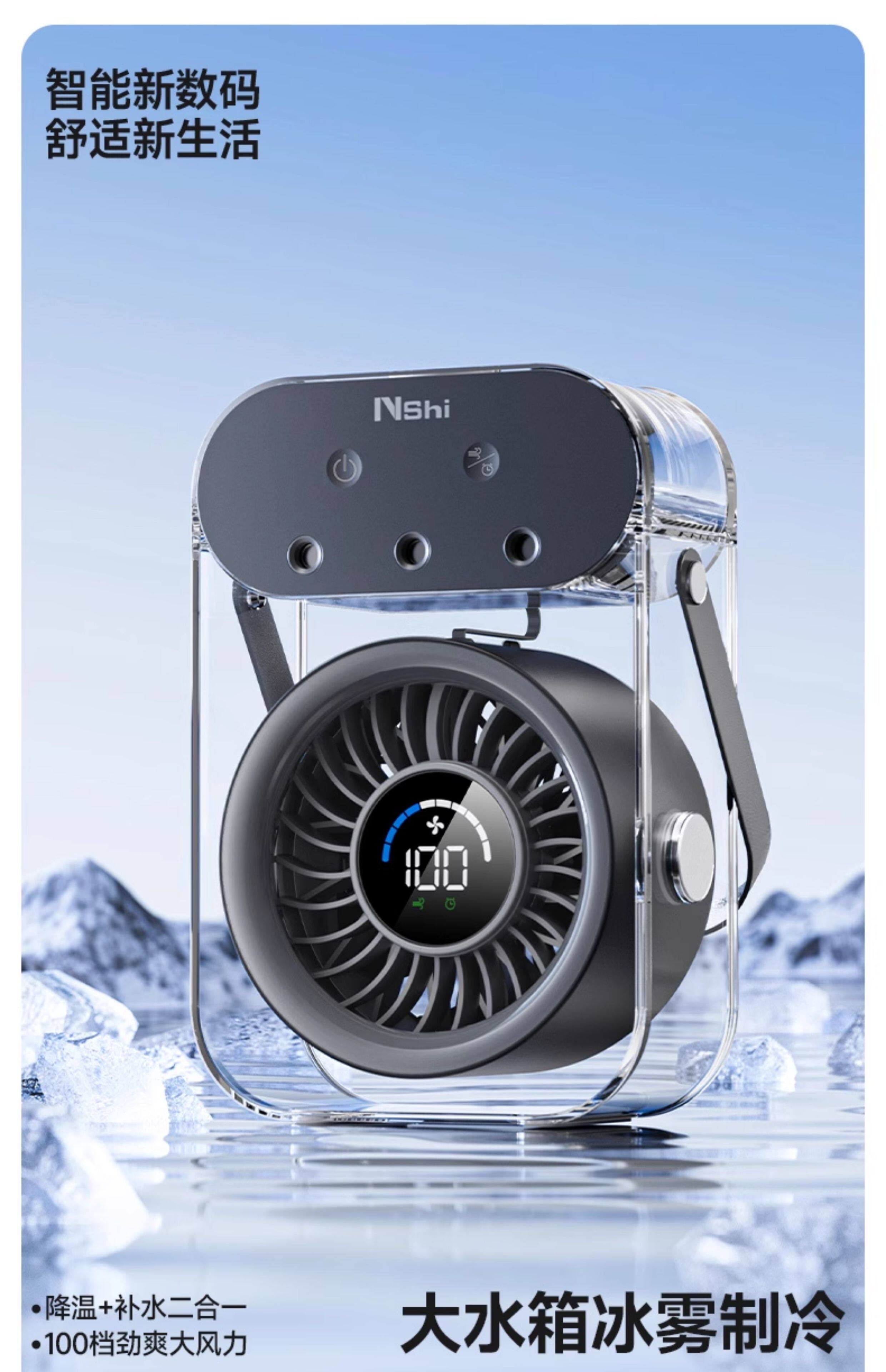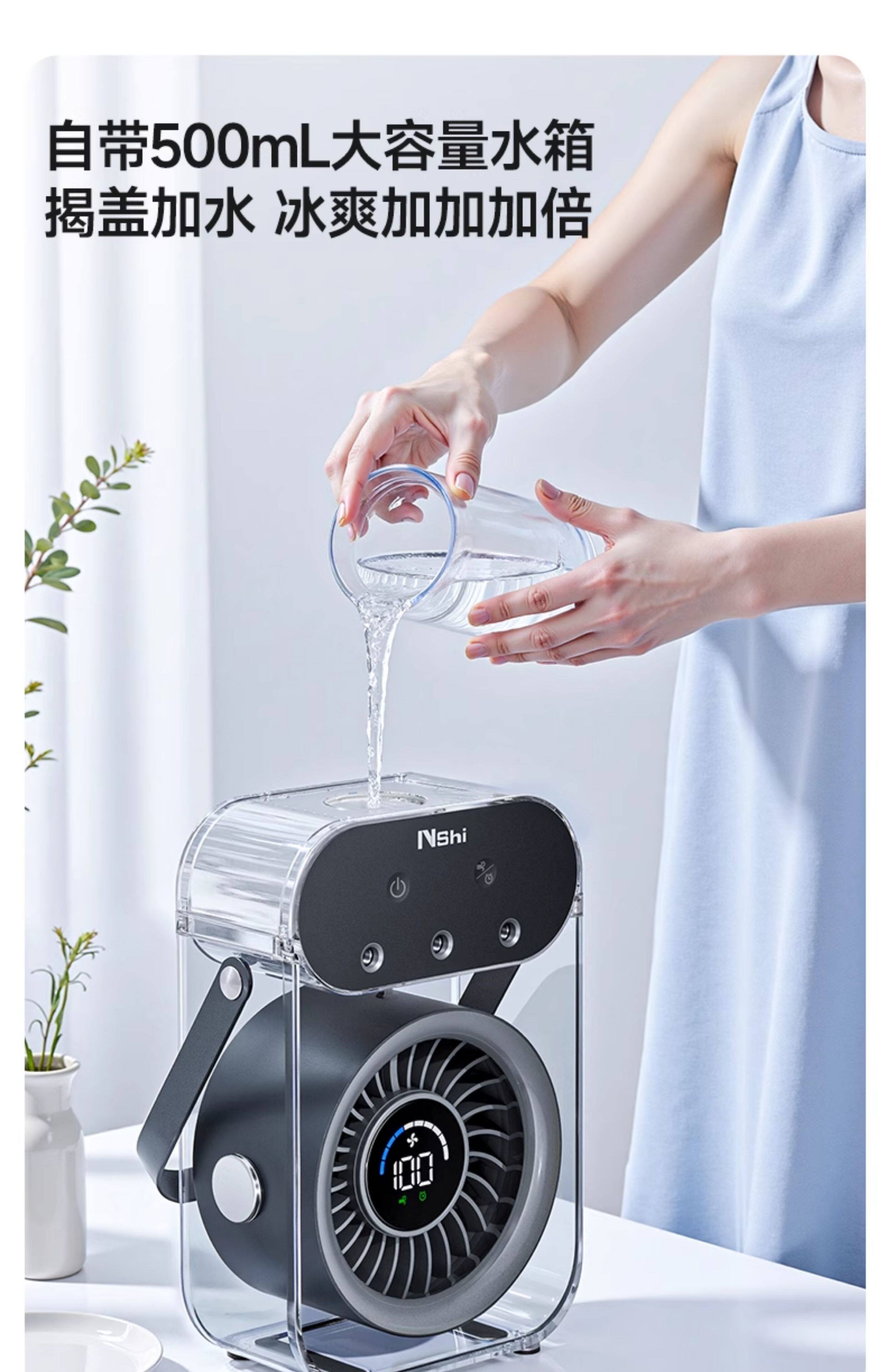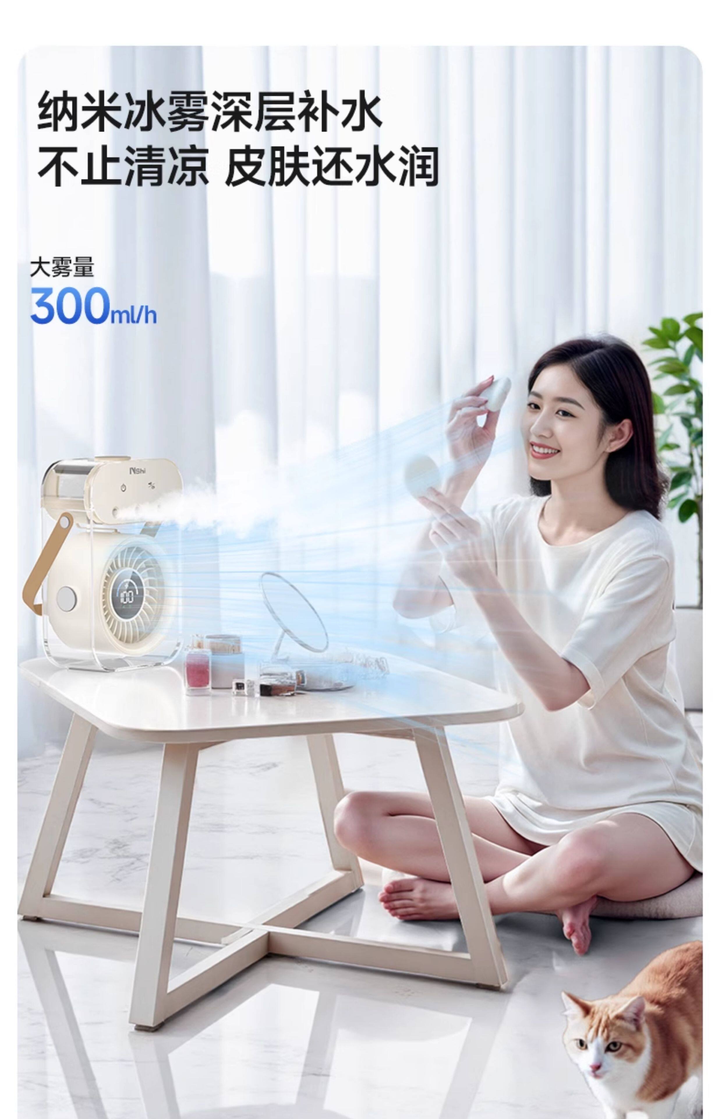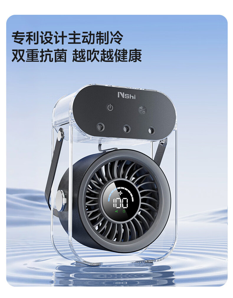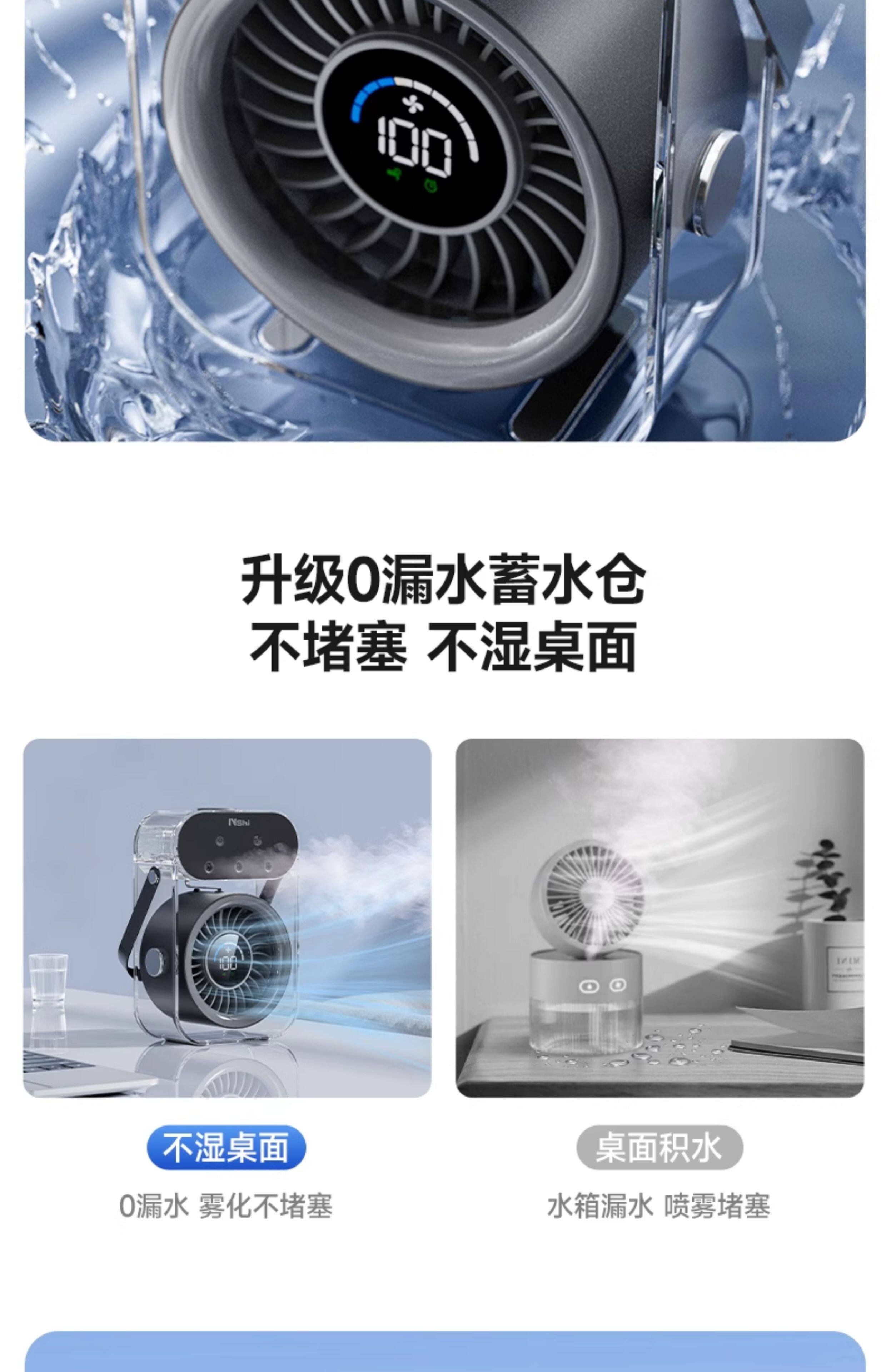 绿胜桌面风扇小风扇家用电风扇喷雾制冷空调静音USB数显充电长续航手持办公室学生宿舍户外便携大风力 【深空灰】插电款|冰雾制冷|健康抑菌99%