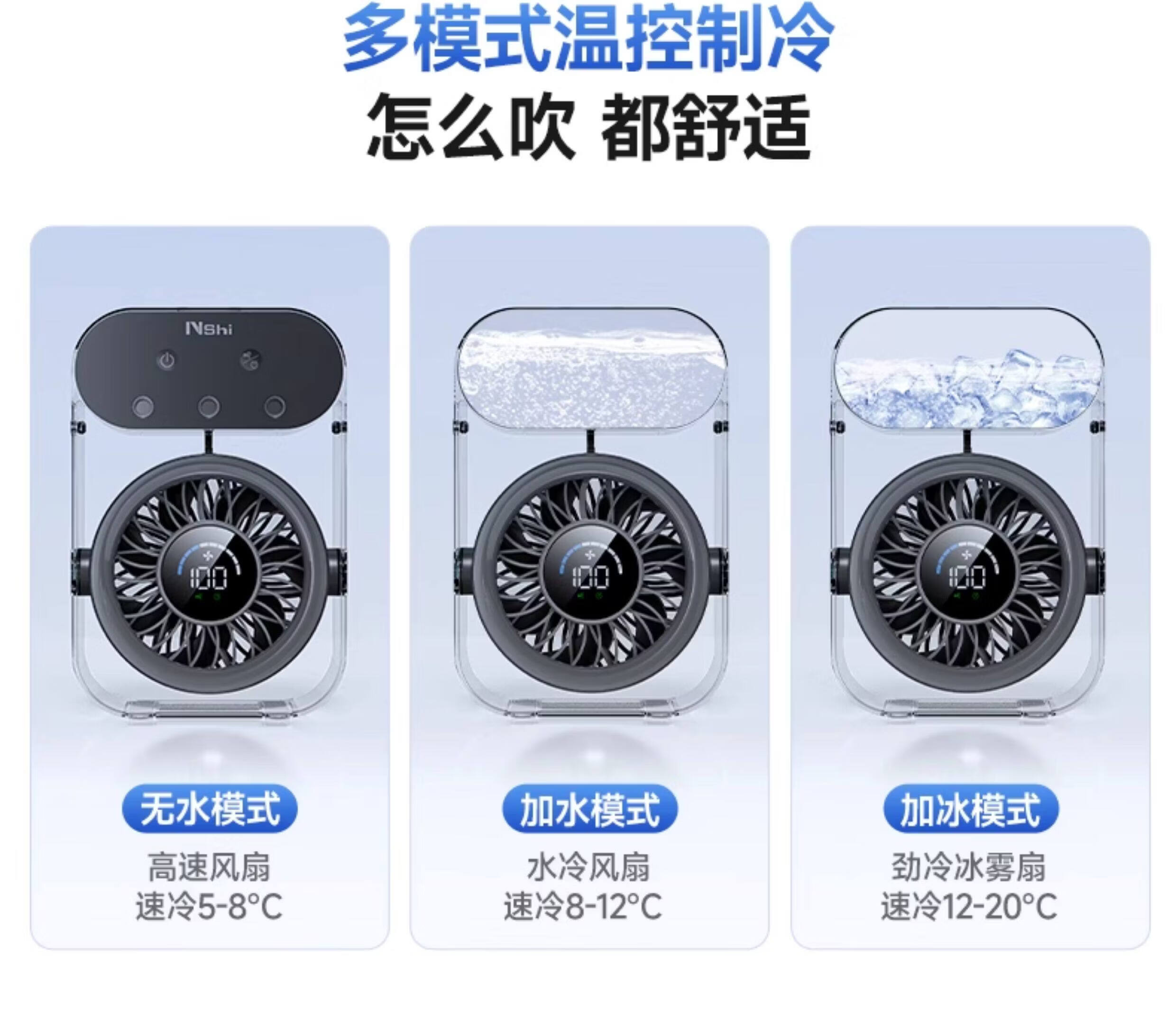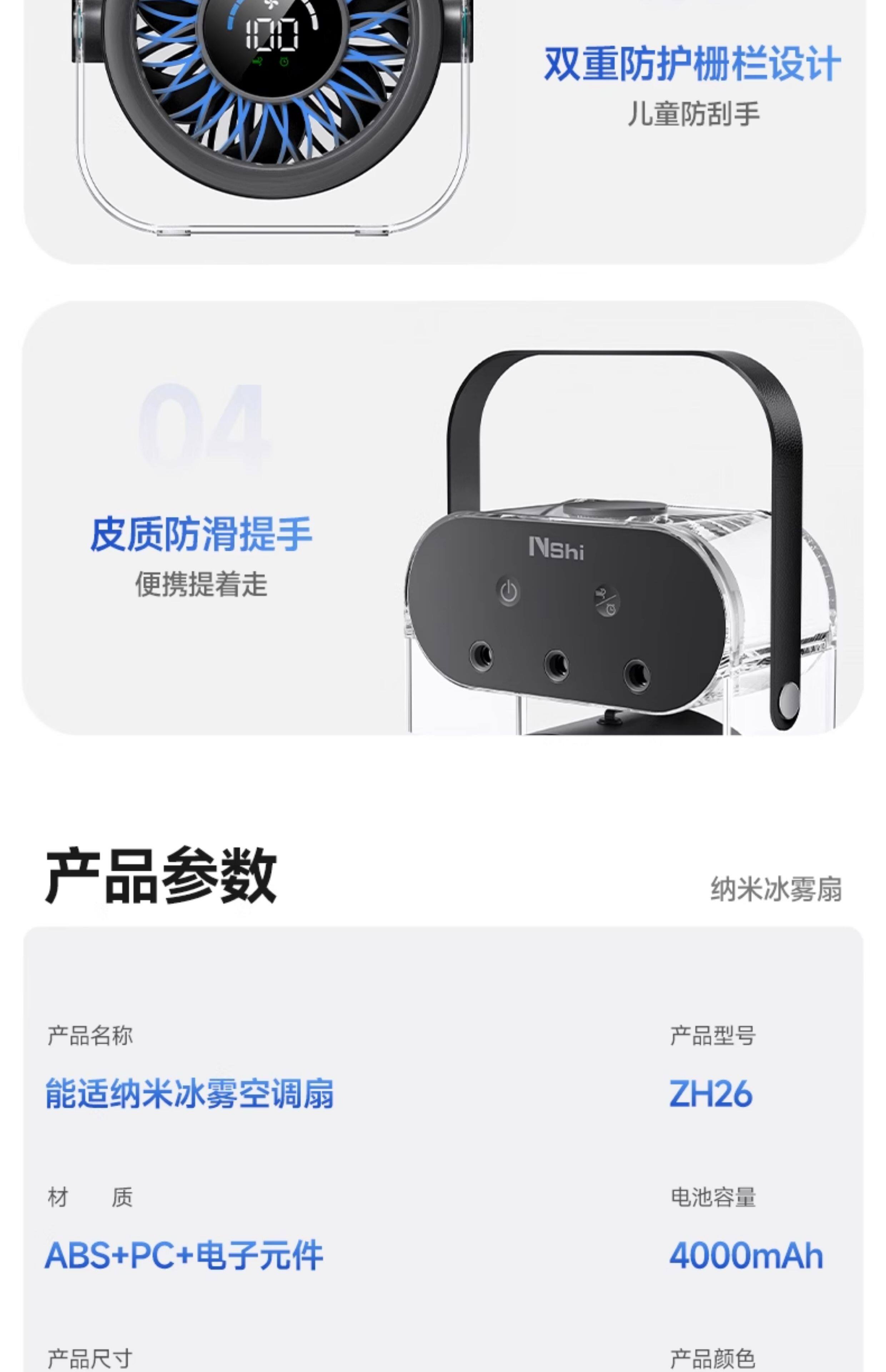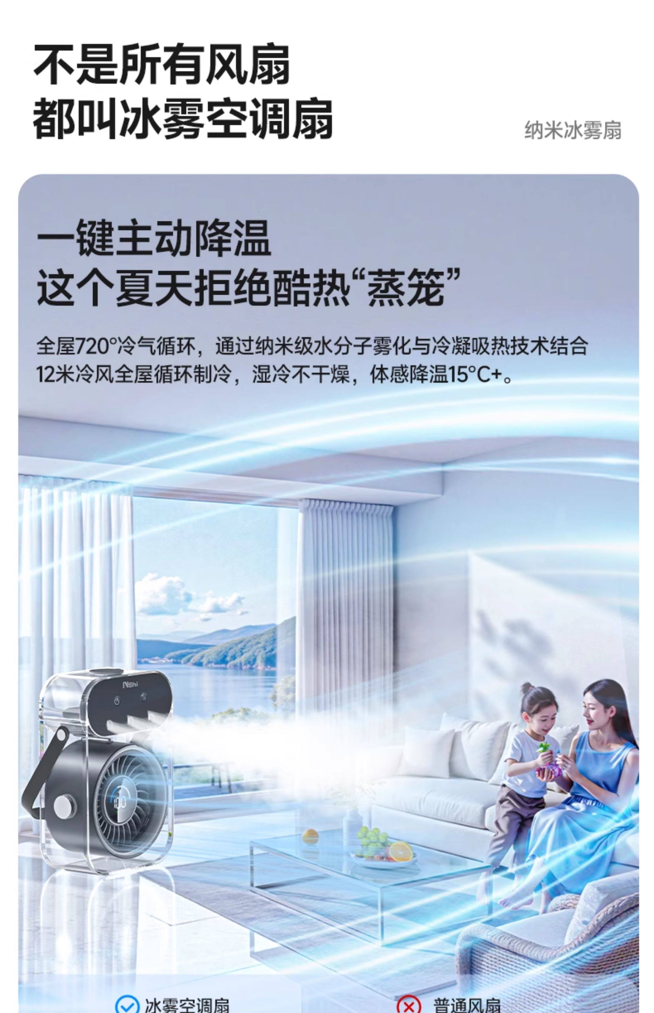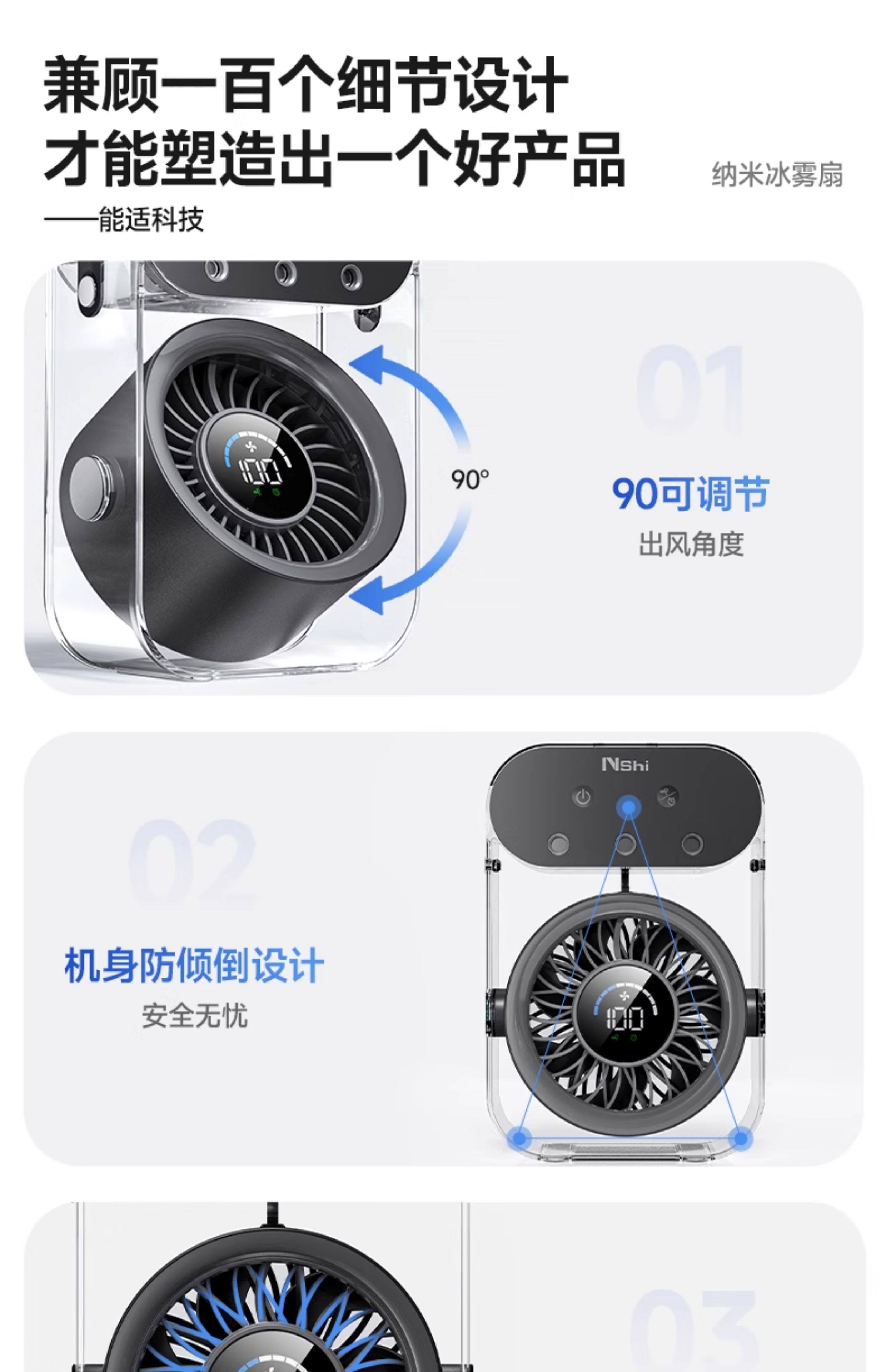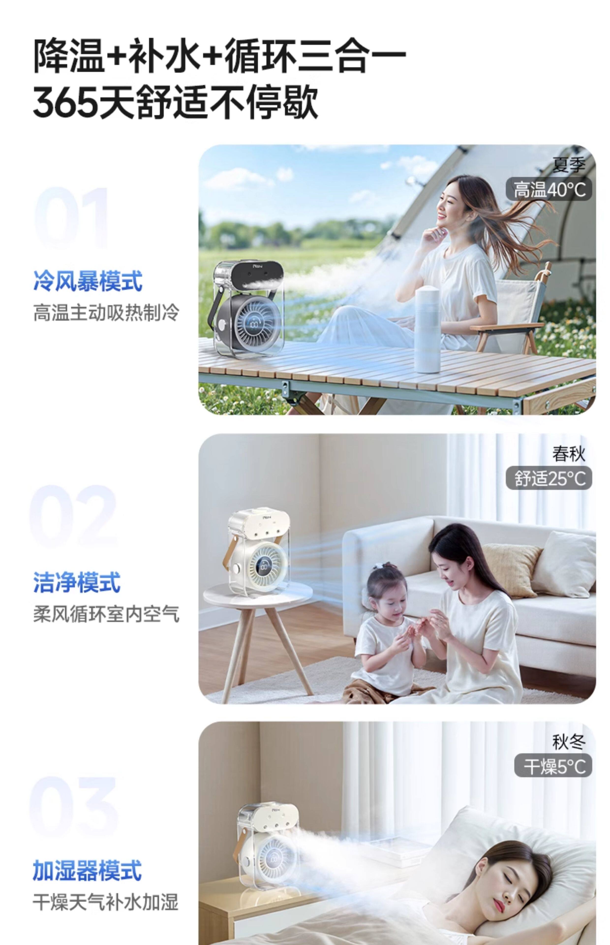 绿胜桌面风扇小风扇家用电风扇喷雾制冷空调静音USB数显充电长续航手持办公室学生宿舍户外便携大风力 【深空灰】插电款|冰雾制冷|健康抑菌99%