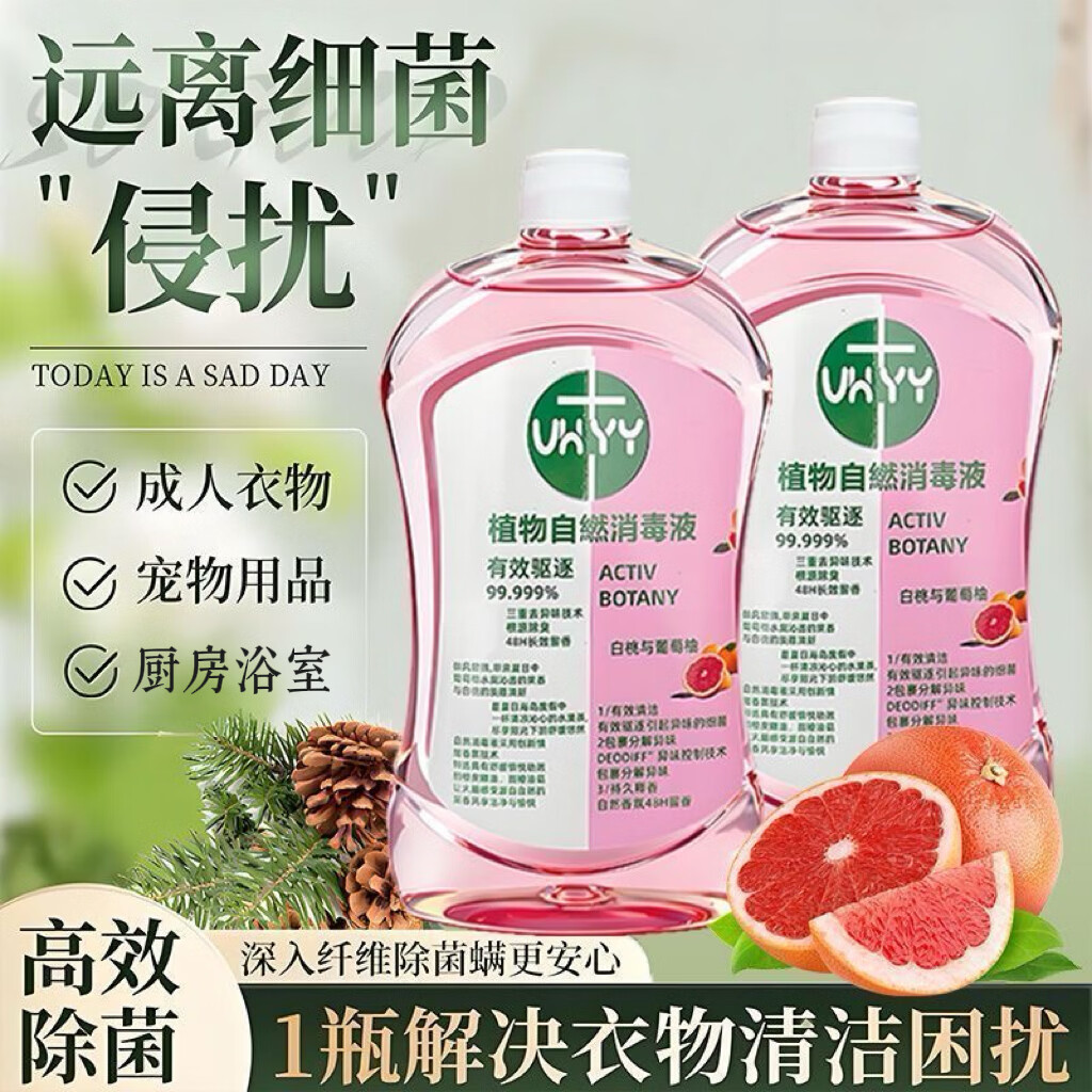 衣服衣物香氛除菌液温和家居消毒洗衣消杀菌白桃与葡萄柚香氛家用 2瓶【500ml】