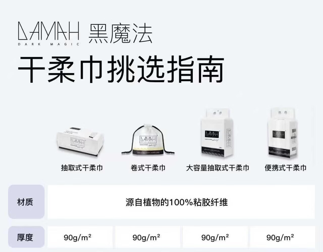 DAMAH DARK MAGIC黑魔法洗脸巾干湿两用便携加大加厚洁面卷筒式一次性洗脸巾 72抽*3包