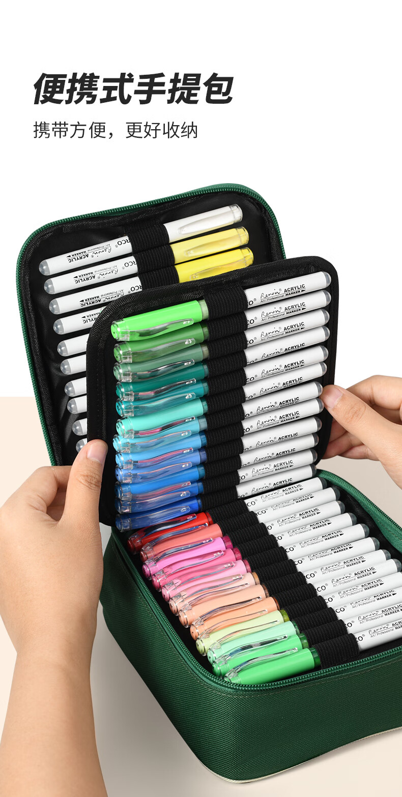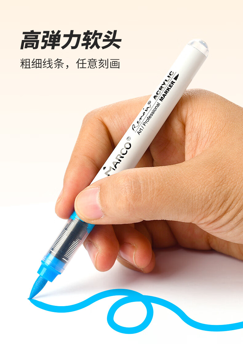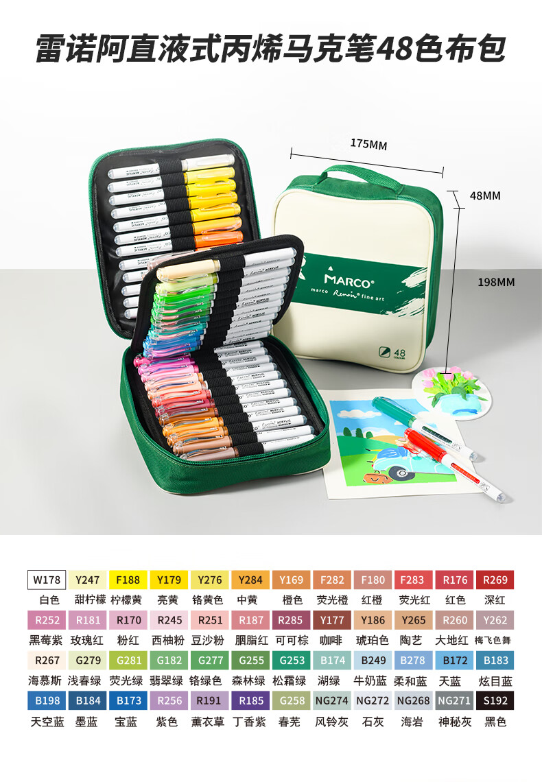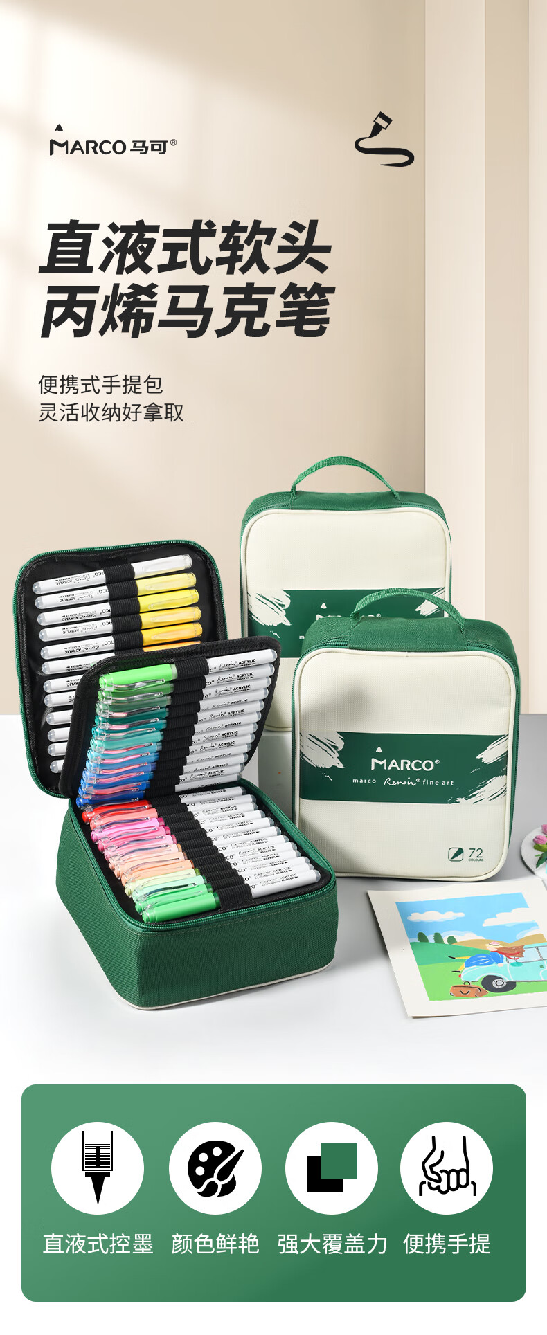 马可(MARCO)直液式软头丙烯马克笔色儿童中小学生专用礼物礼盒套装专业可叠色水彩笔荧光记号笔 大墨王80色