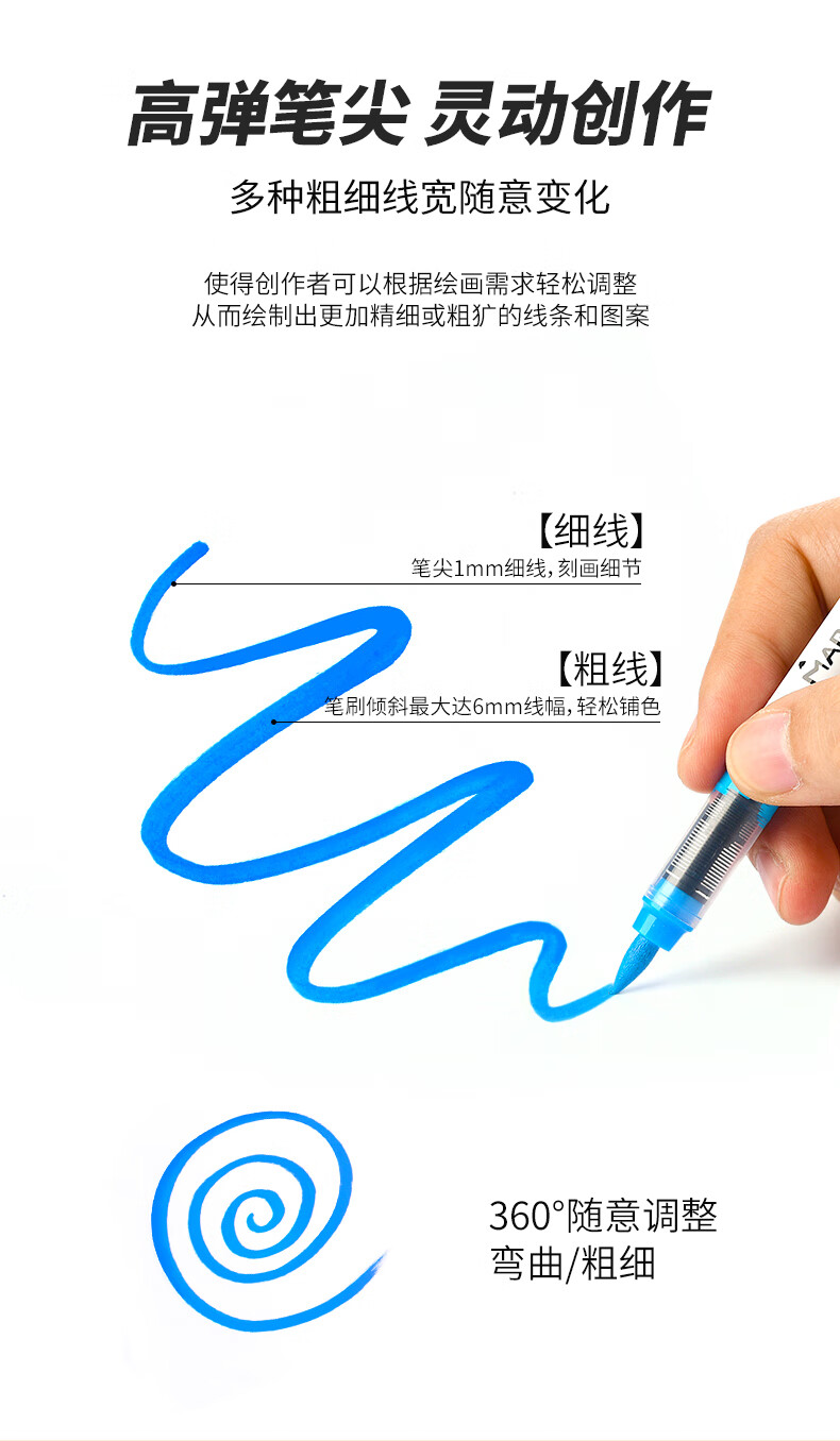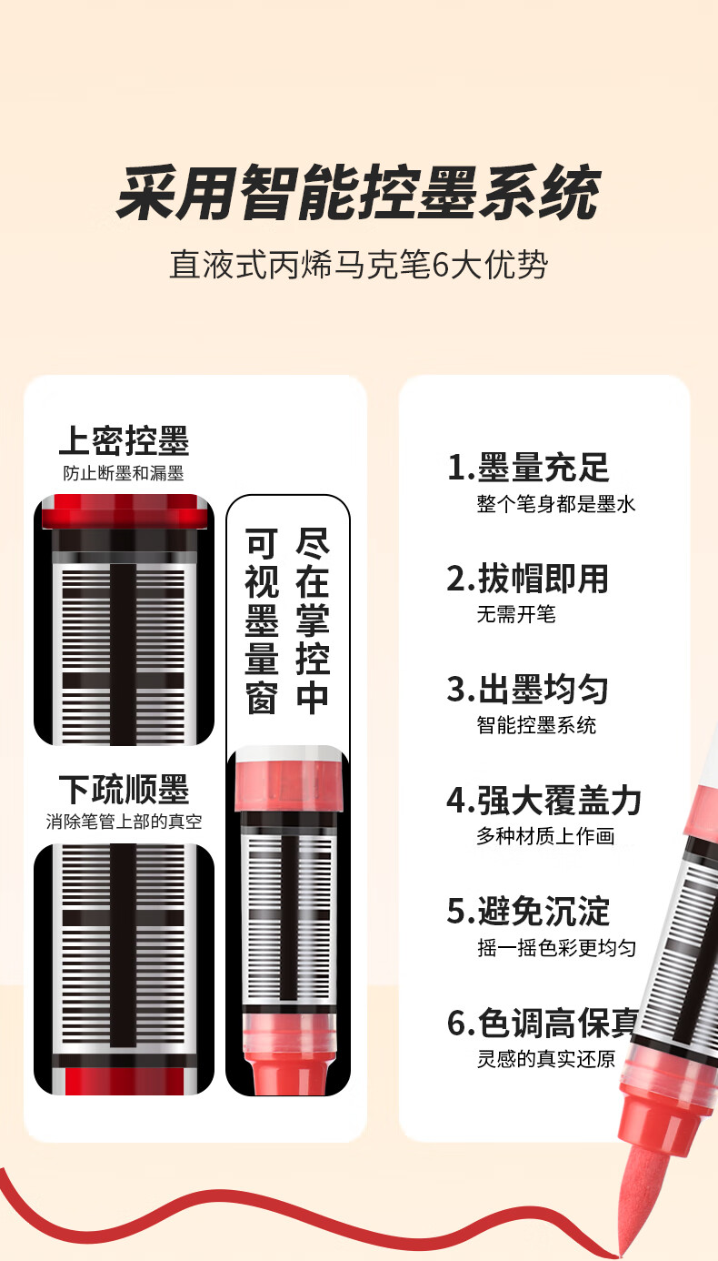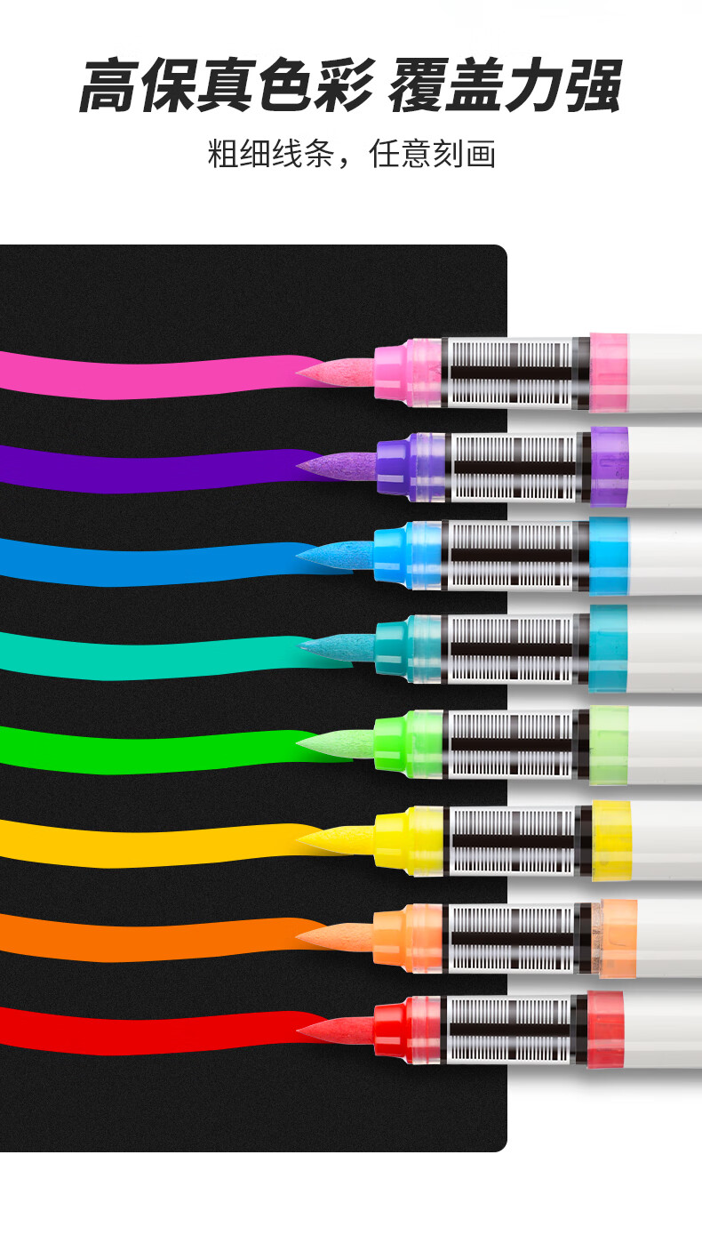 马可(MARCO)直液式软头丙烯马克笔色儿童中小学生专用礼物礼盒套装专业可叠色水彩笔荧光记号笔 大墨王80色