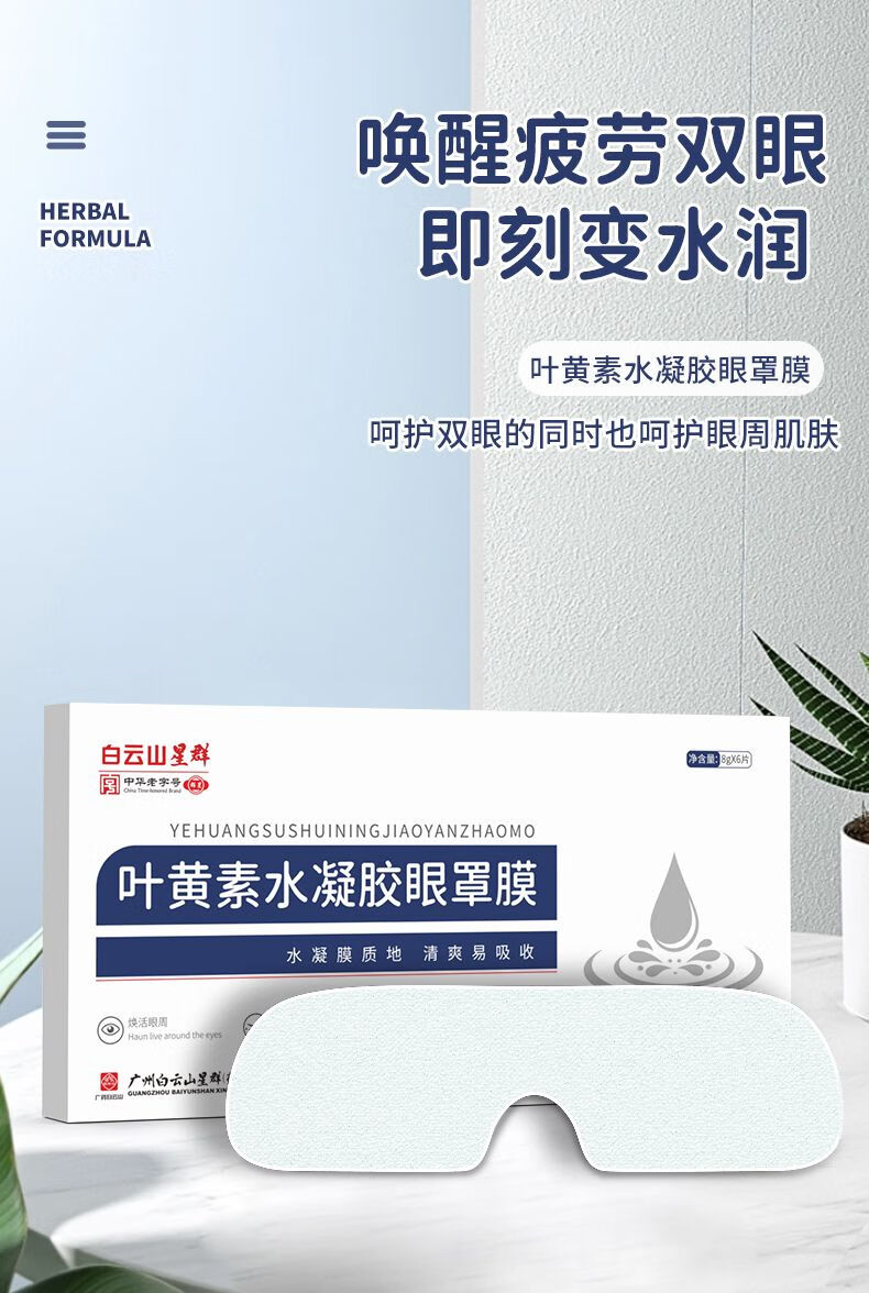 星群白云山叶黄素护眼贴冷敷润眼神器冰敷眼罩男女缓解眼疲劳眼干眼涩 草本润目贴6盒共108贴【实惠装】