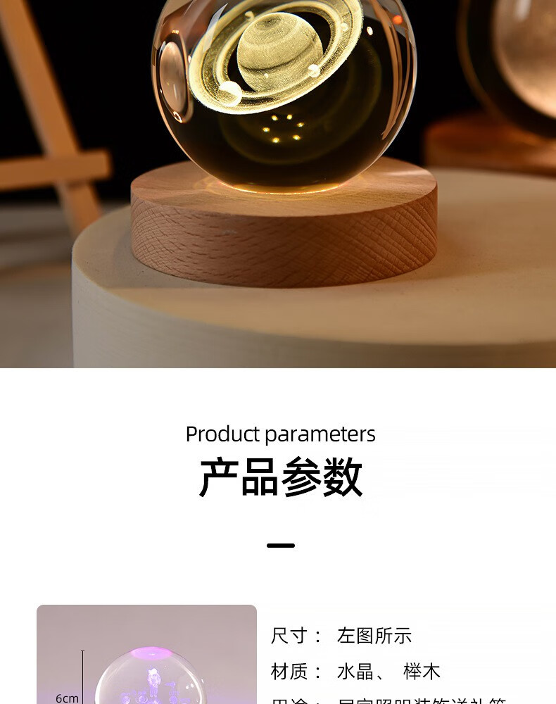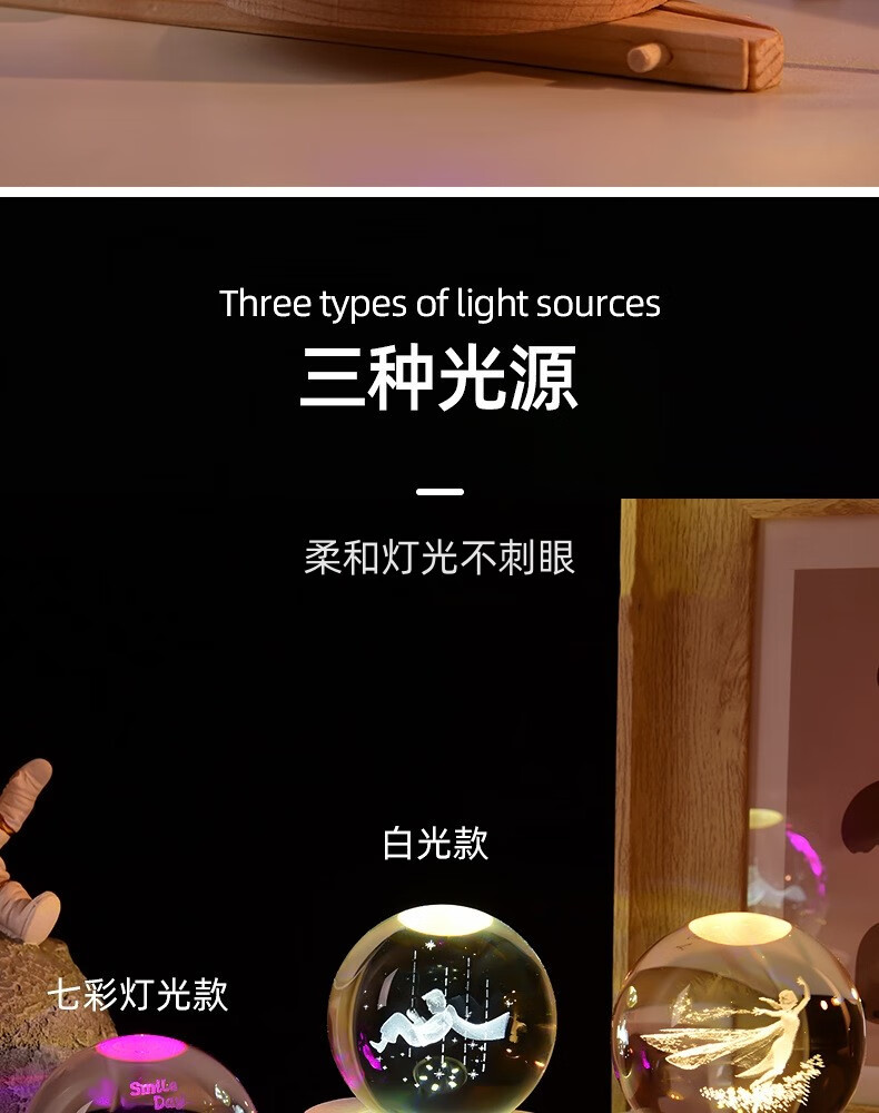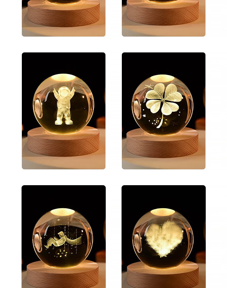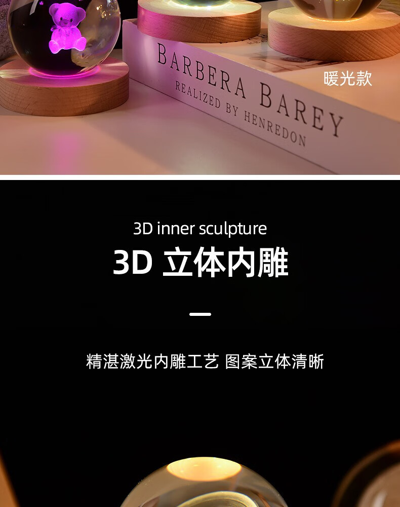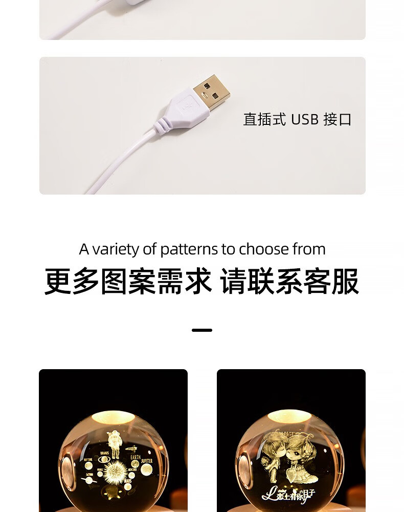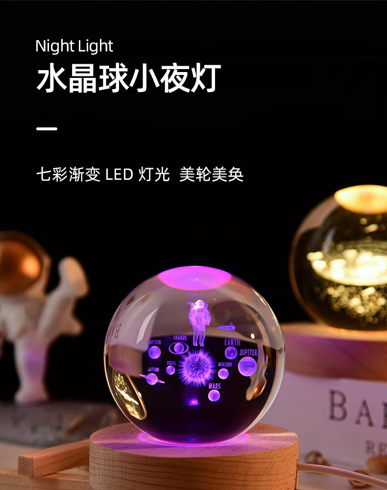 映棠创意水晶球发光小夜灯摆件送女生男朋友生日礼物定制刻字实用走心 定制图案专拍 8cm水晶球+7cm暖光底usb按钮开关