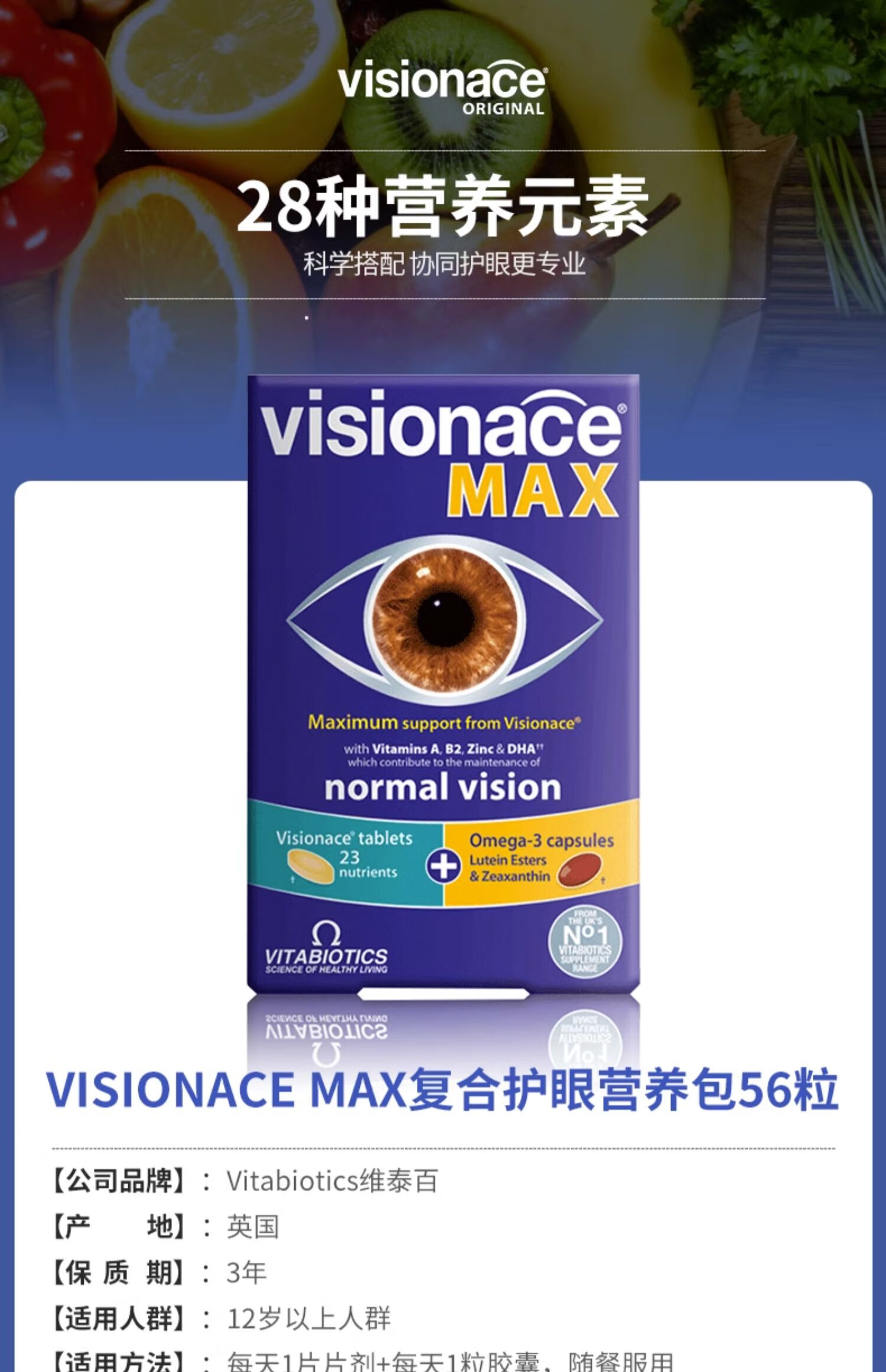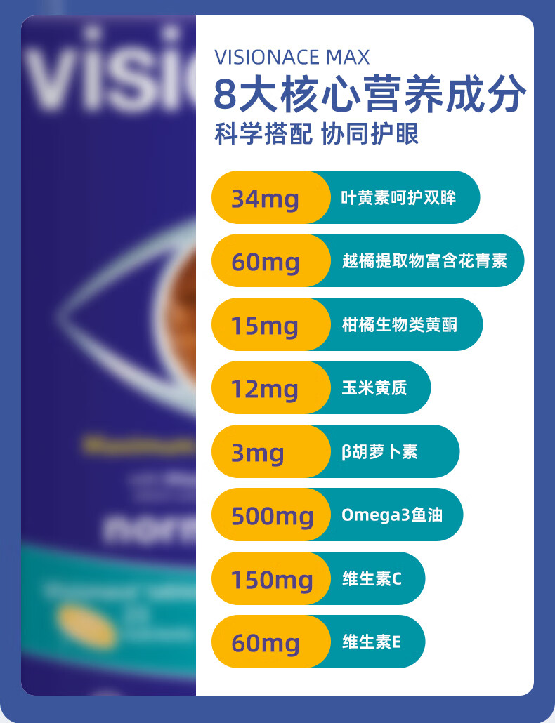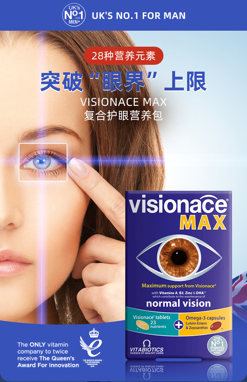 VITABIOTICS薇塔贝尔叶黄素成人护眼片 DHA胶囊 日常护眼 保护视力34mg 【26年5月到期】护眼MAX叶黄素 56粒*1盒