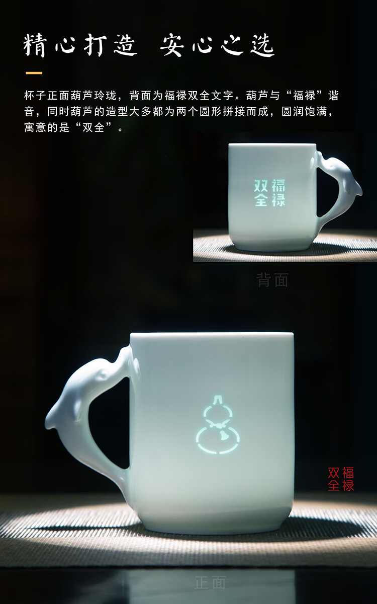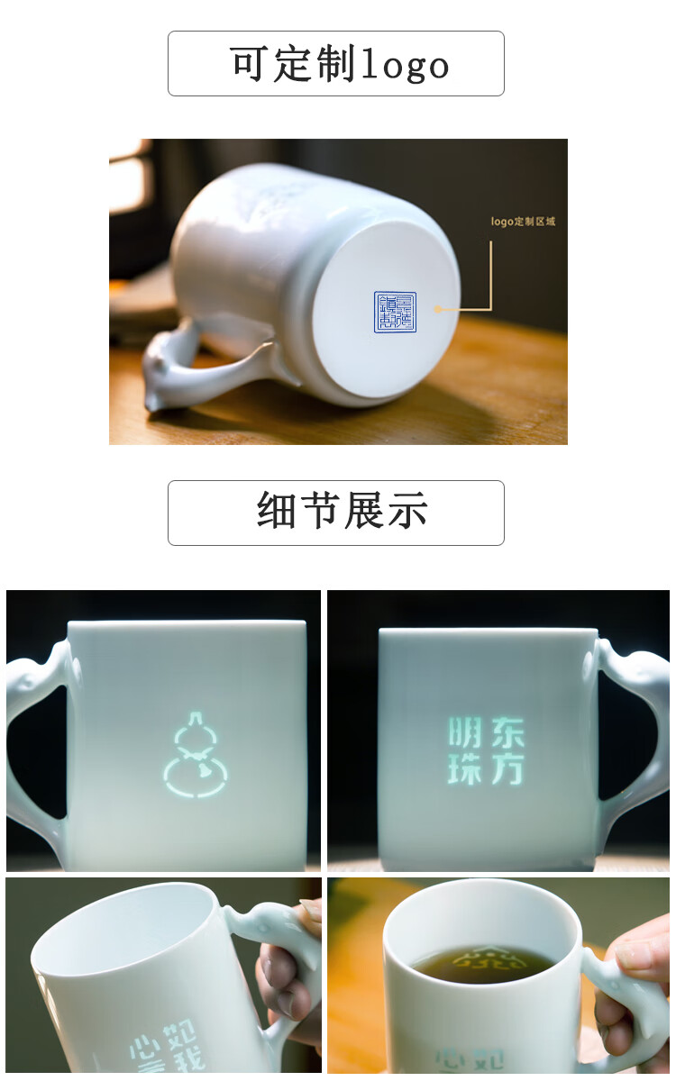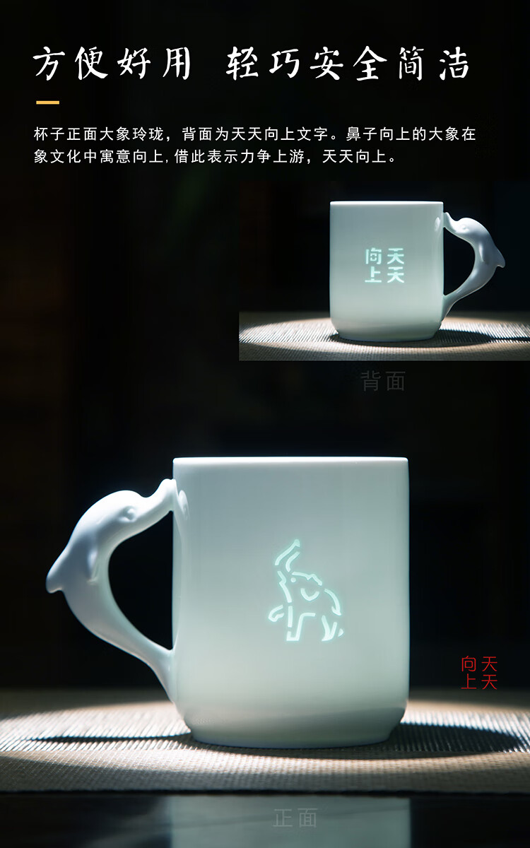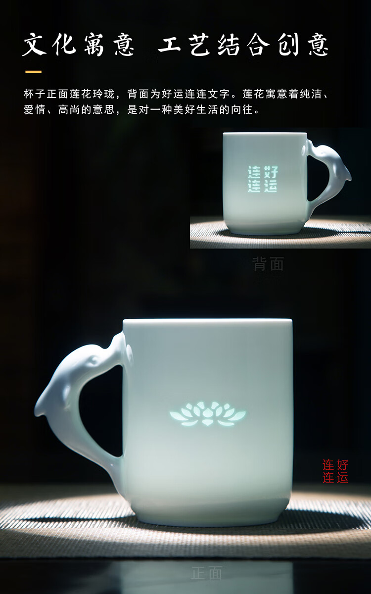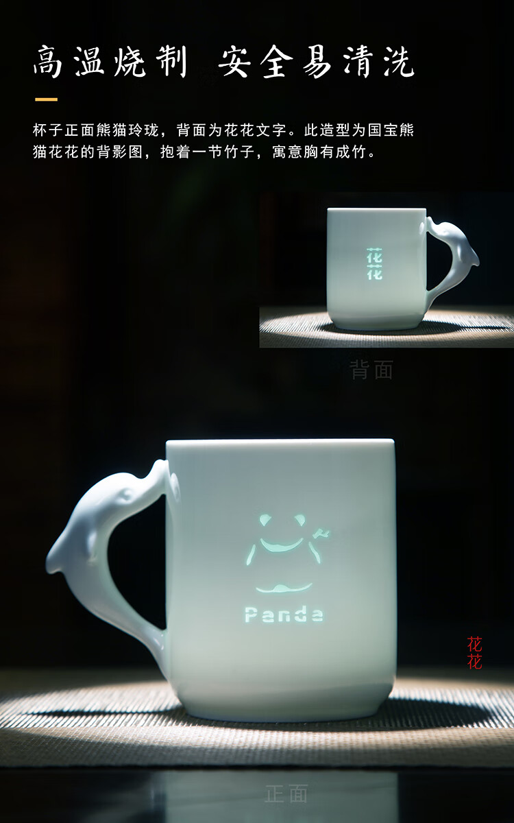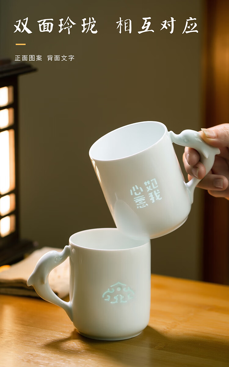 jdz陶瓷玲珑喝水马克杯新款家用大容量高颜值可爱杯子牛奶杯早餐杯 花花