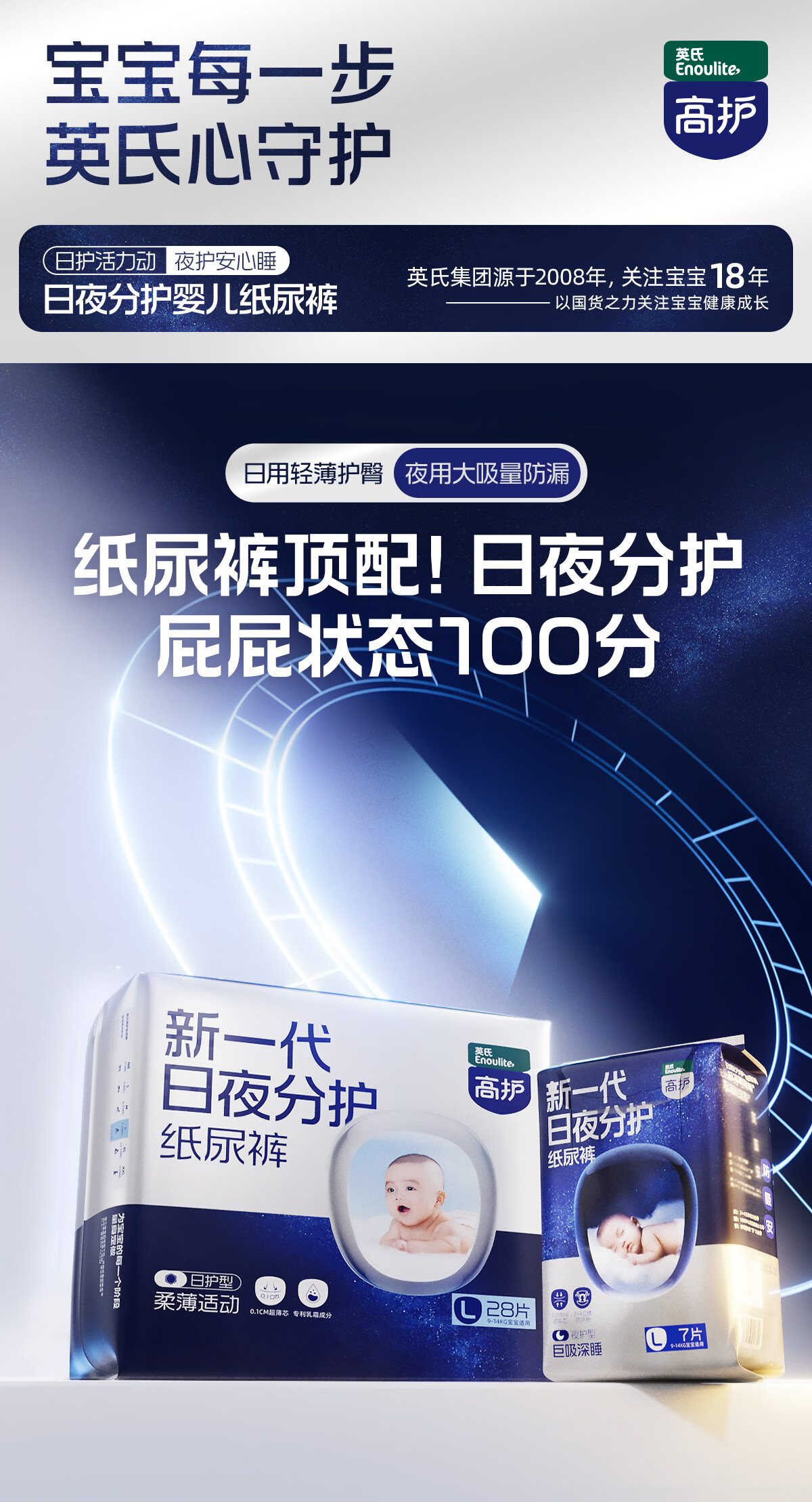 英氏(Engnice)高护婴儿纸尿裤夜用宝宝尿不湿7片/包 新生儿尿裤成长裤防漏安睡 夜护巨吸款成长裤XXL码7片