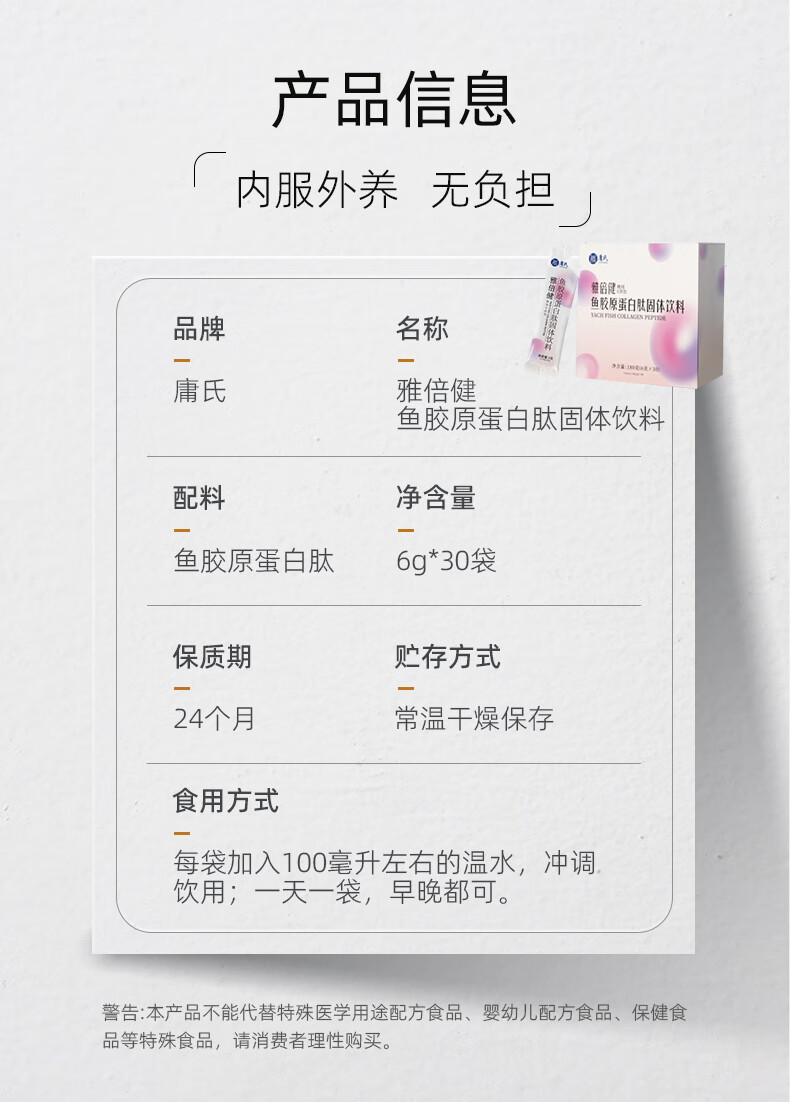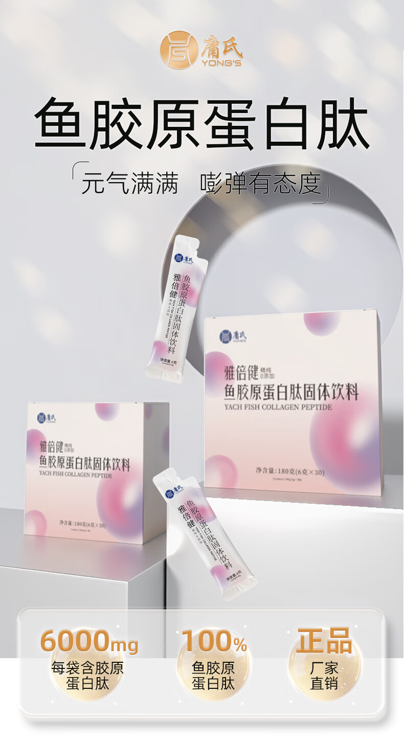 庸氏工厂鱼胶原蛋白肽固体饮料小分子胶原蛋白肽粉活性肽Ⅲ型肽 180g*1盒