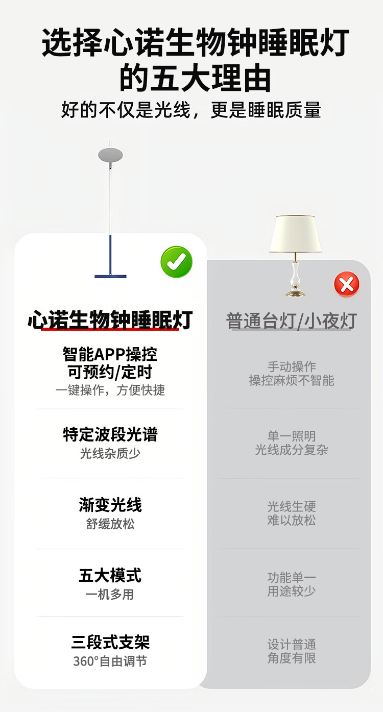 心诺(xnuo)生物睡眠灯红蓝绿光多功能灯阅读照明灯唤醒灯帮助好睡眠仪 心诺生物钟睡眠灯【APP智能操控+五种模式】