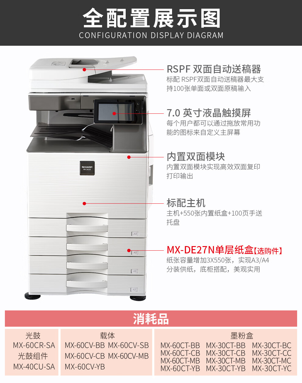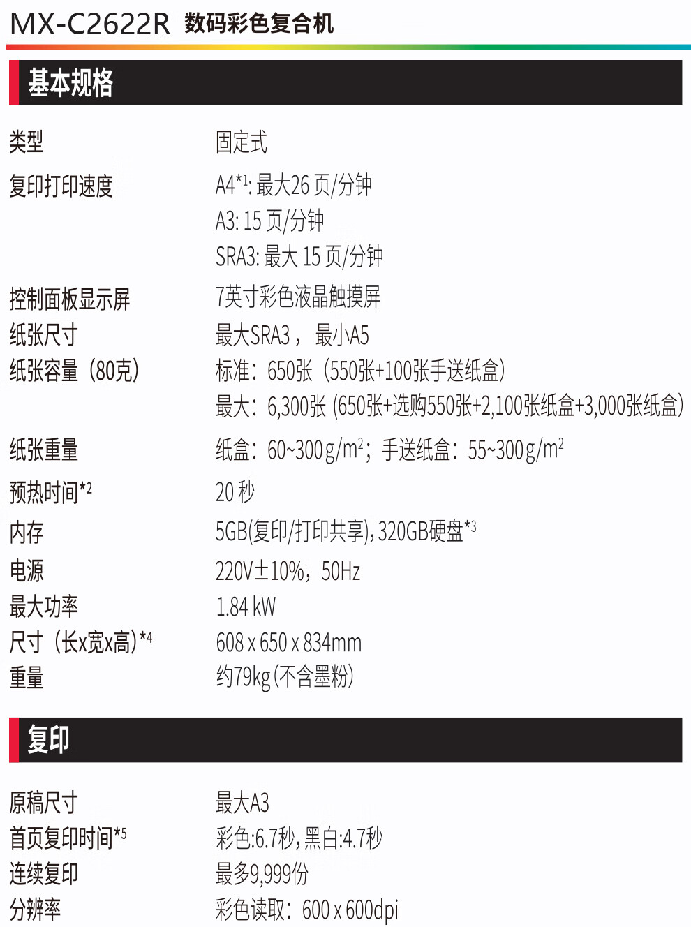 夏普BP-C2622R C2621R A3彩色多功能数码复合机激光打印机复印扫描A3A4一体机商用数码大型办公 BP-C2621R四纸盒