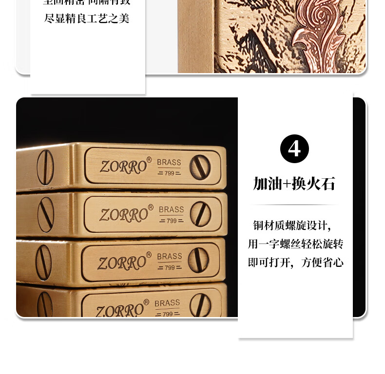 佐罗朗声煤油打火机明火砂轮机超薄重甲机高端火机礼盒 天禄貔貅【单机无油版】