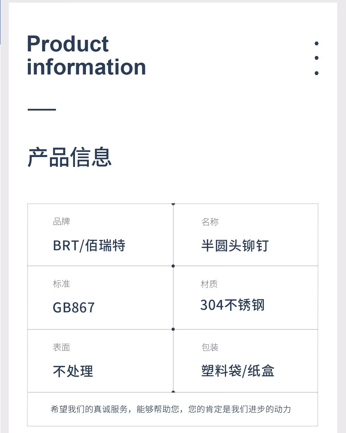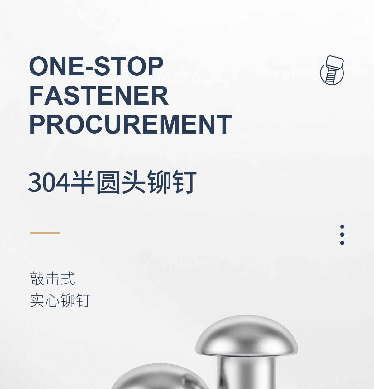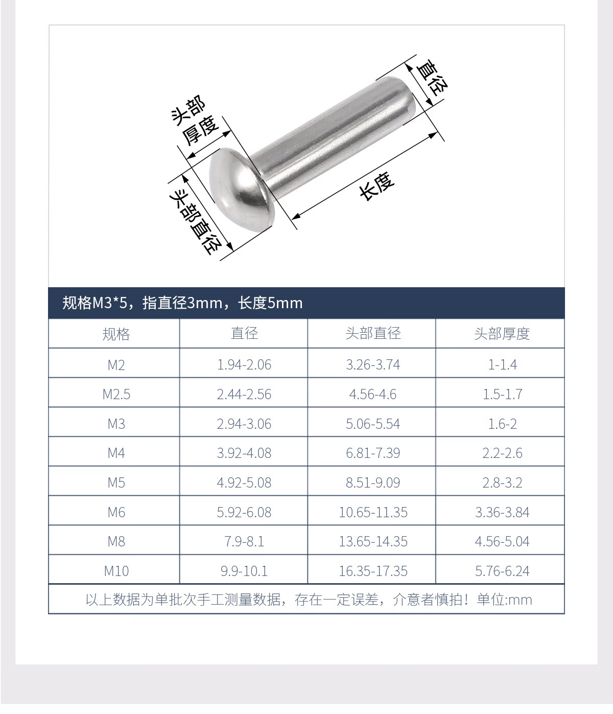 佰瑞特(bairuite)304不锈钢半圆头实心铆钉蘑菇头手打敲击式卯钉圆帽柳钉帽钉GB867 M2*3【200粒】