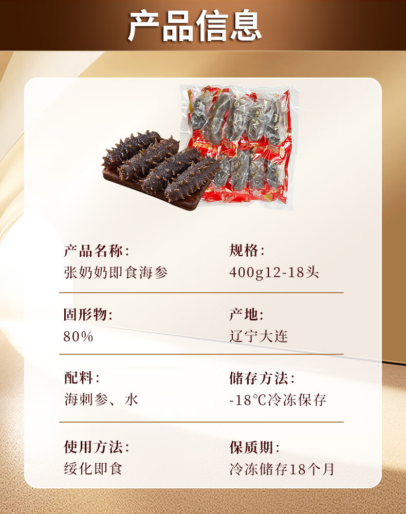 张奶奶大连即食海参400g12-18头袋装囤货高品质海鲜无污染 家庭装