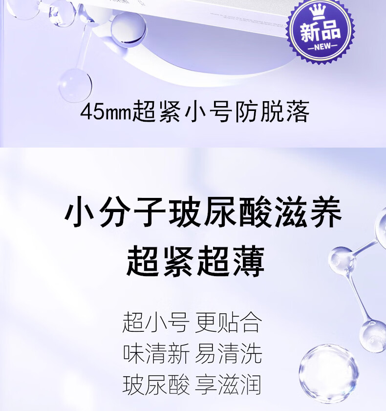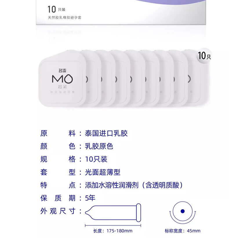 名流MO避孕套超小号45mm超薄003玻尿酸润滑安全套29mm紧绷型保险套byt MO超紧45mm小号10只