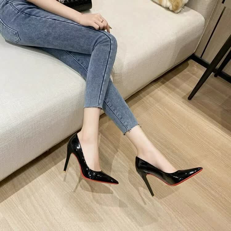 蜘蛛王(SPIDER KING)黑色高跟鞋女细跟2026年春秋新款红底漆皮尖头性感职业工作单鞋女 黑色红底 9cm 41