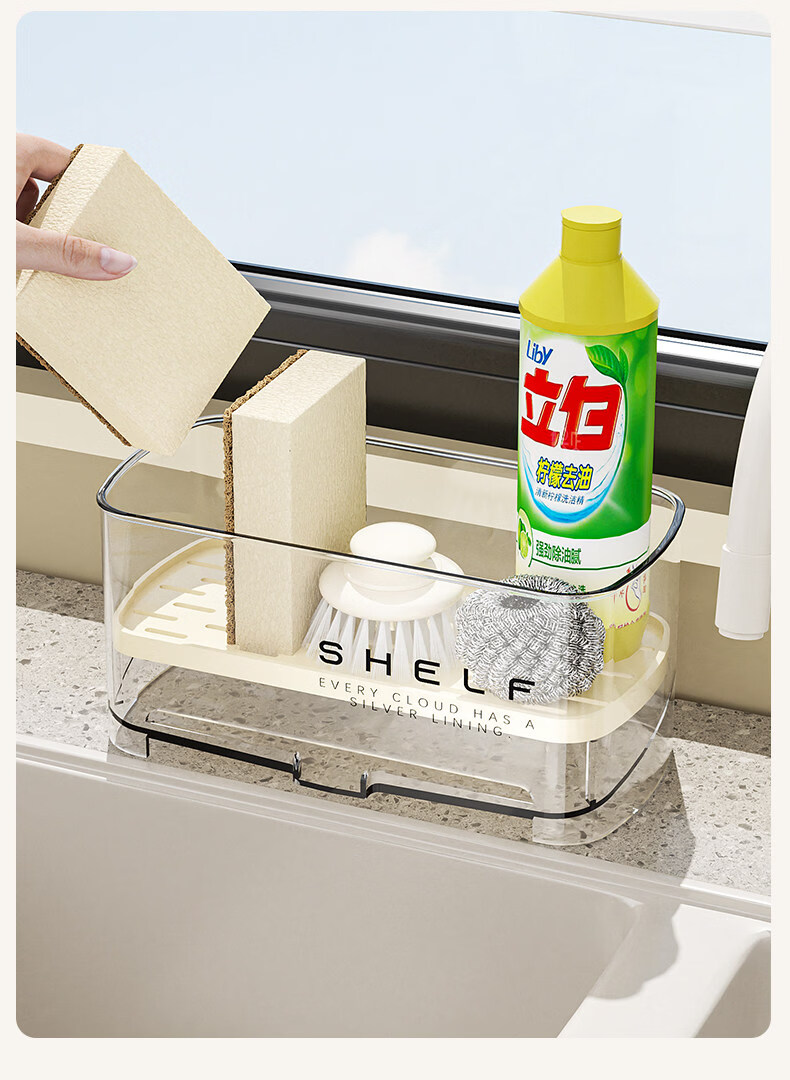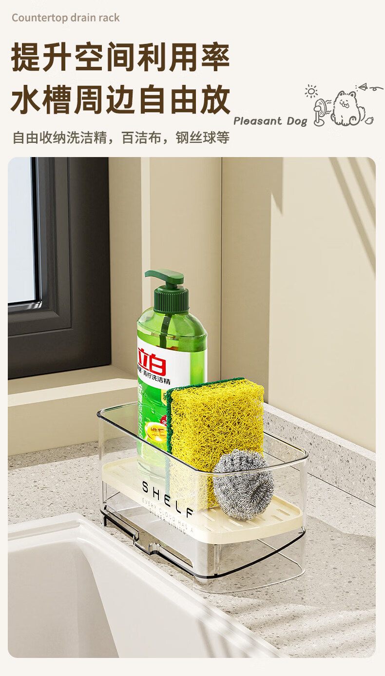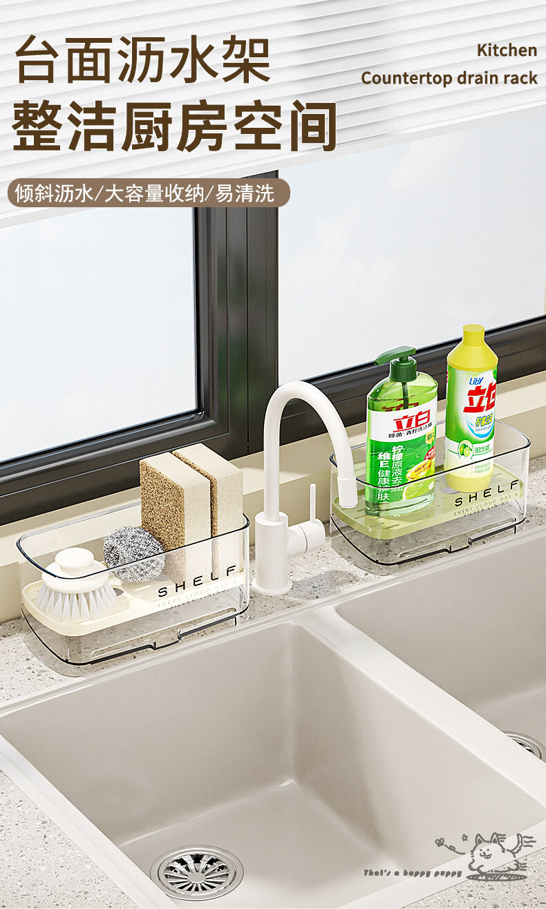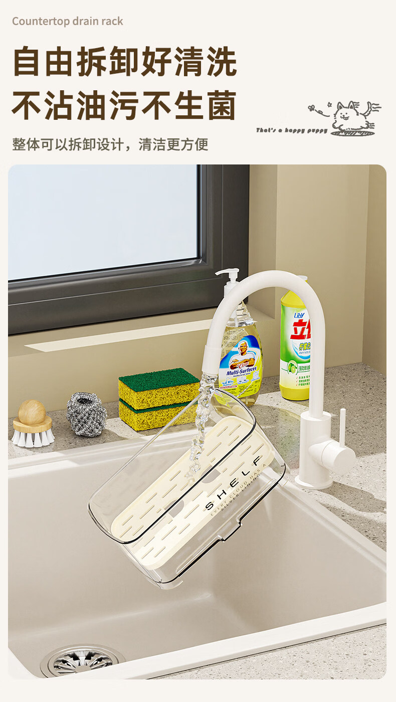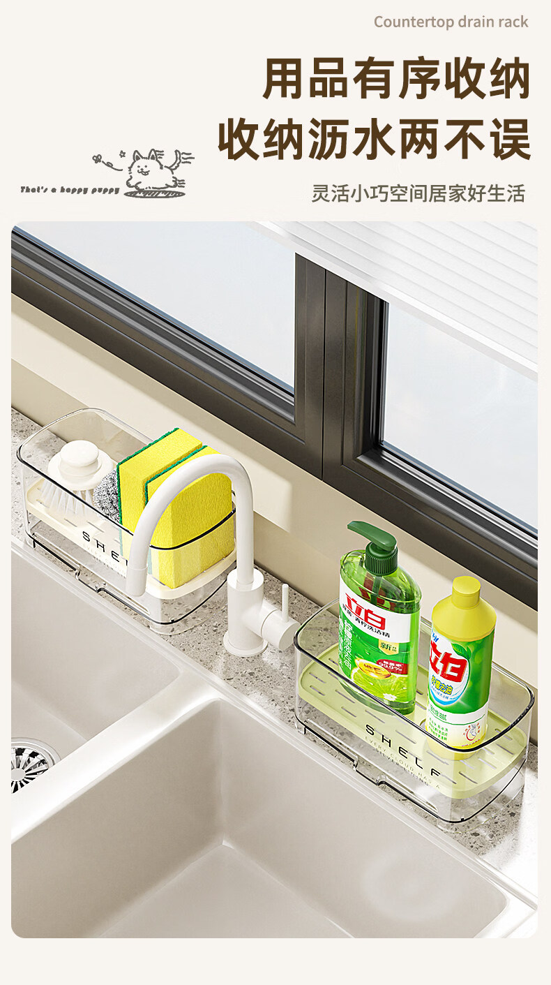 日禾盛唐海绵沥水架厨房台面免打孔洗碗水槽池抹布收纳盒水龙头窄边置物架 【2个】流光白+清透绿 -送贴纸