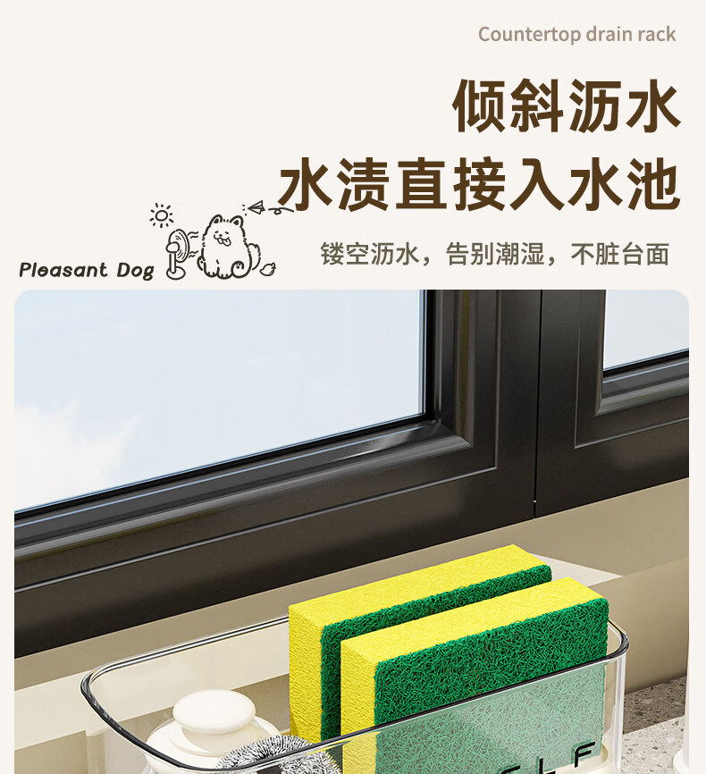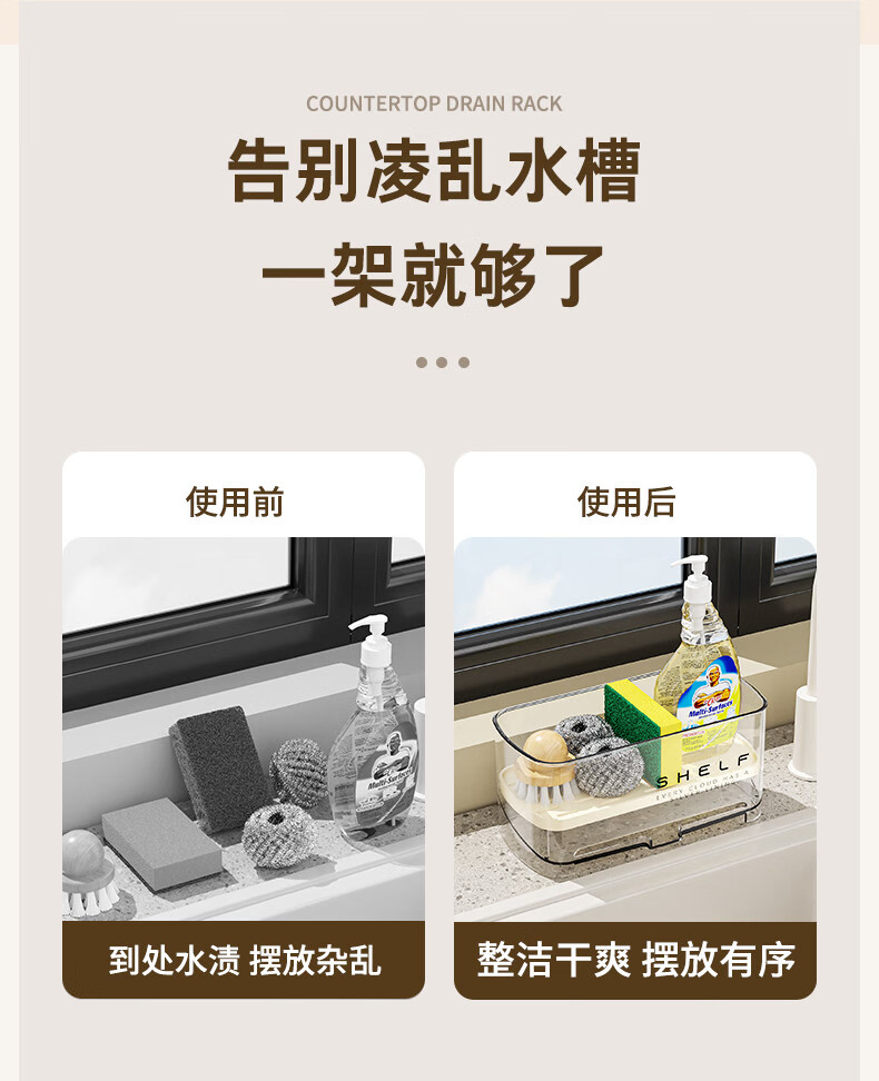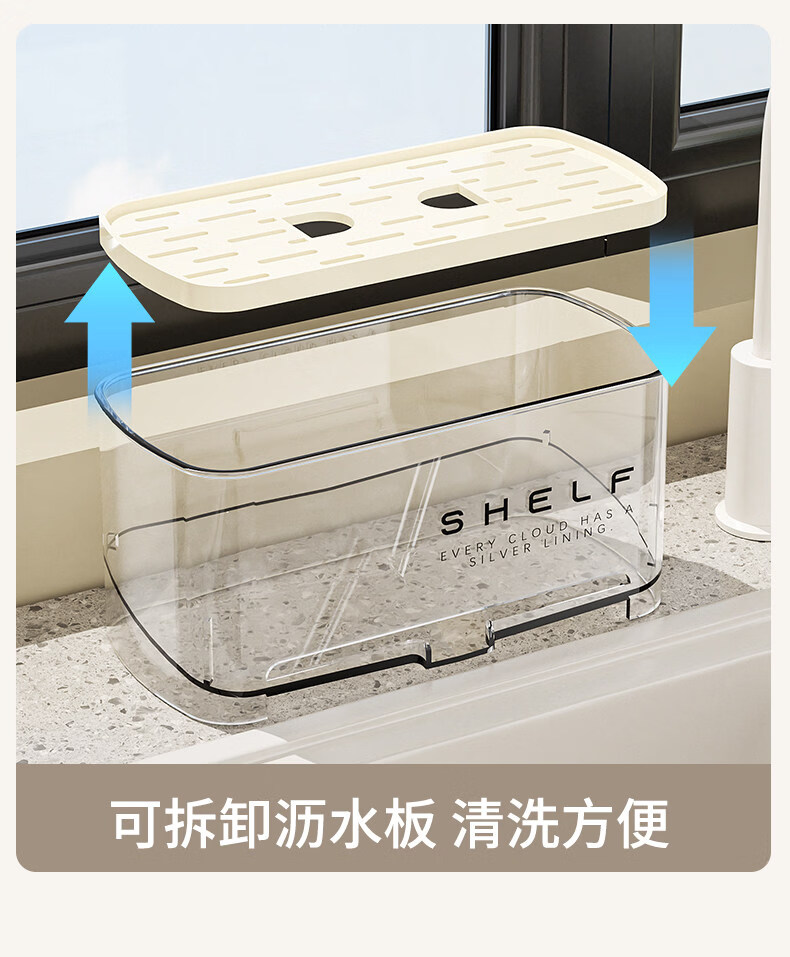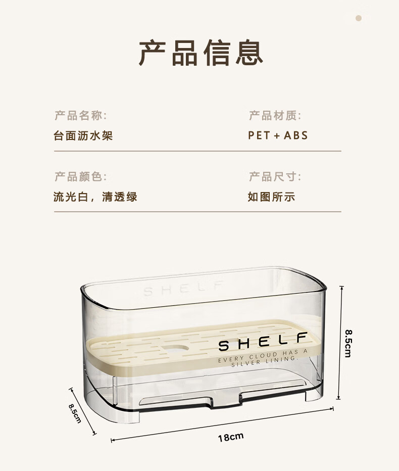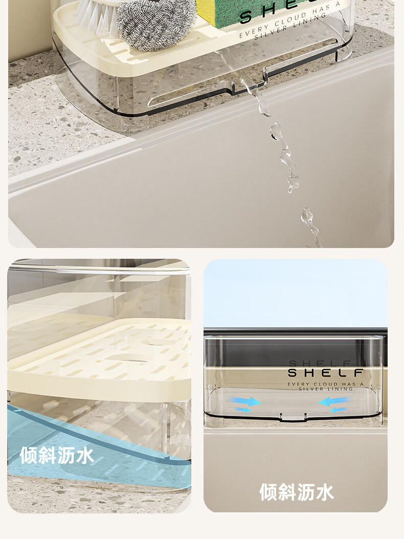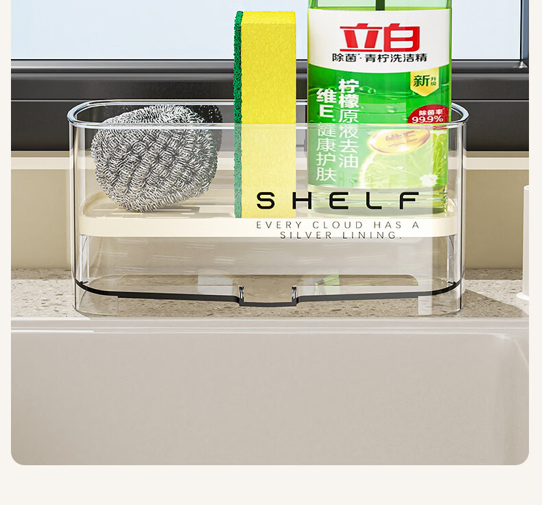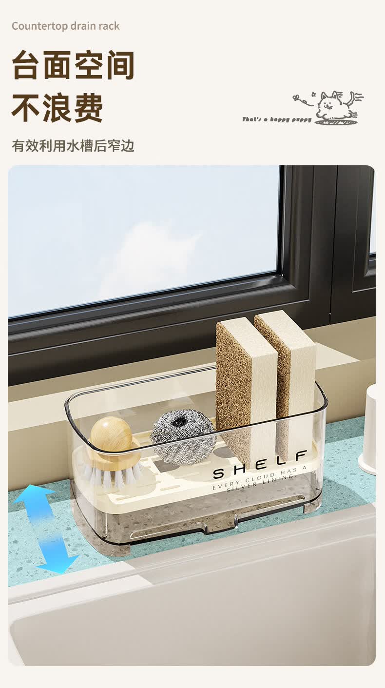 日禾盛唐海绵沥水架厨房台面免打孔洗碗水槽池抹布收纳盒水龙头窄边置物架 【2个】流光白+清透绿 -送贴纸