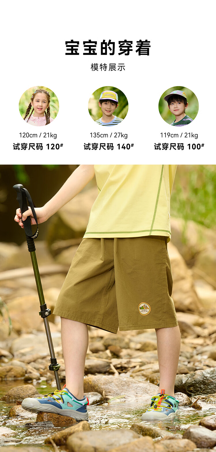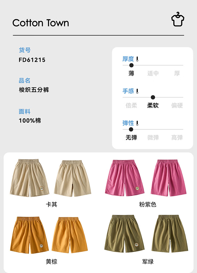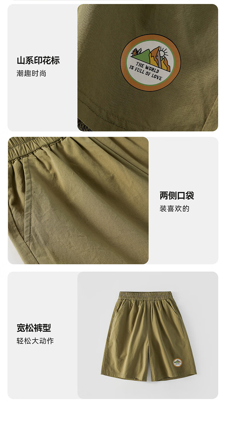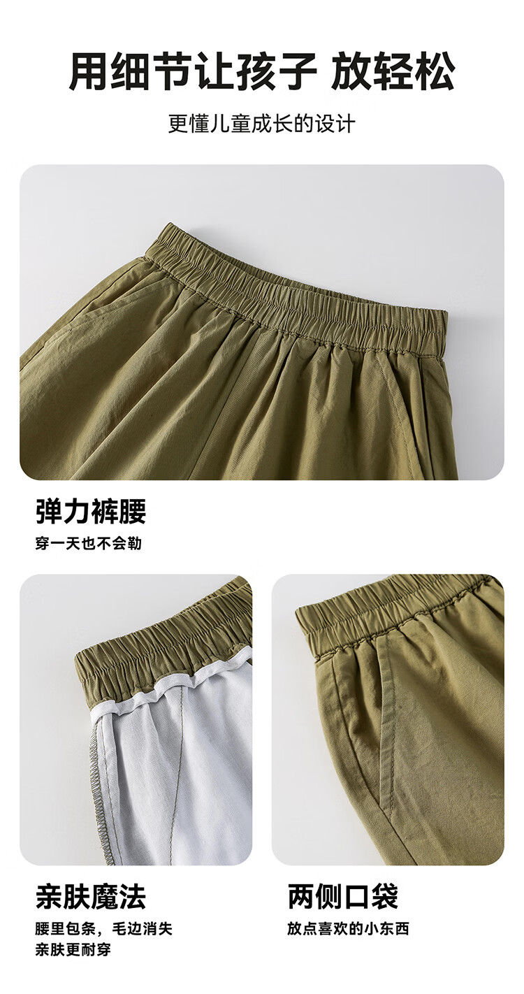棉花堂(cottontown)【100%棉】棉花堂童装儿童梭织五分裤男童短裤女童抗菌纯棉裤子 军绿 90 90/50
