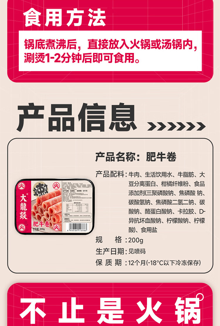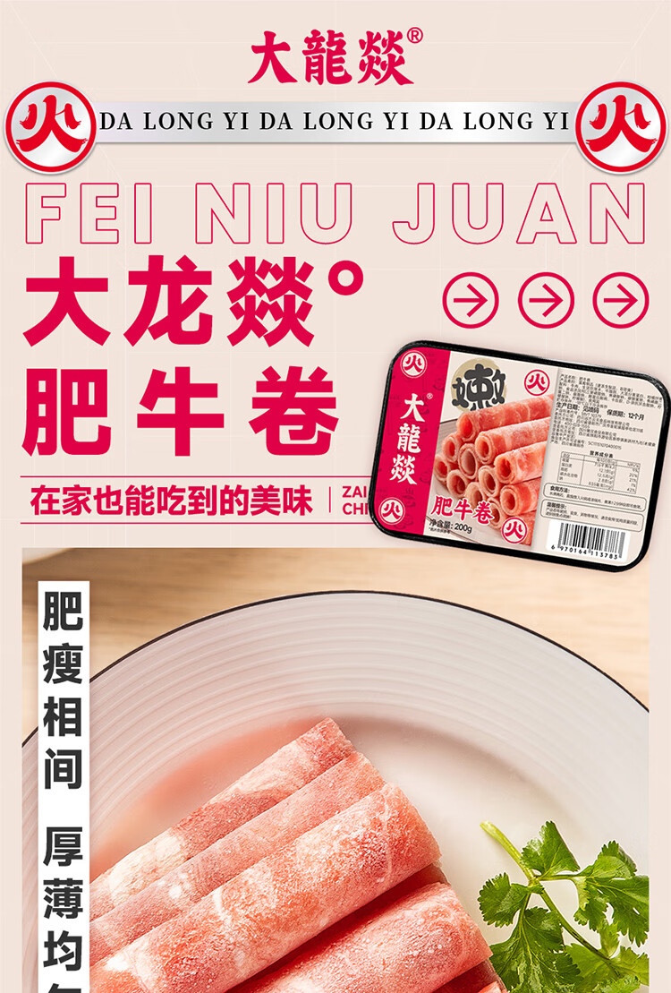 大龍燚 肥牛卷200g*1盒火锅肉卷生鲜食材春节也送货