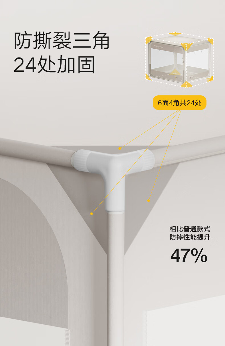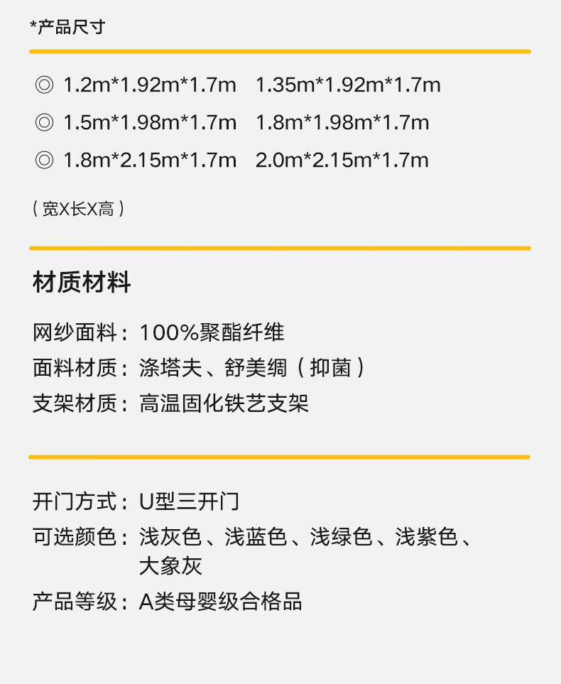 高睿防摔蚊帐2025新款安装抗菌婴儿防止掉床家用卧室全罩式儿童纹帐 元气灰【全底三开门】(A类母婴级抗菌帐纱+防蚊防摔) 适用1.5m床-宽150*长200*高170【碳素钢支架】