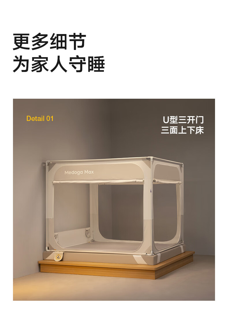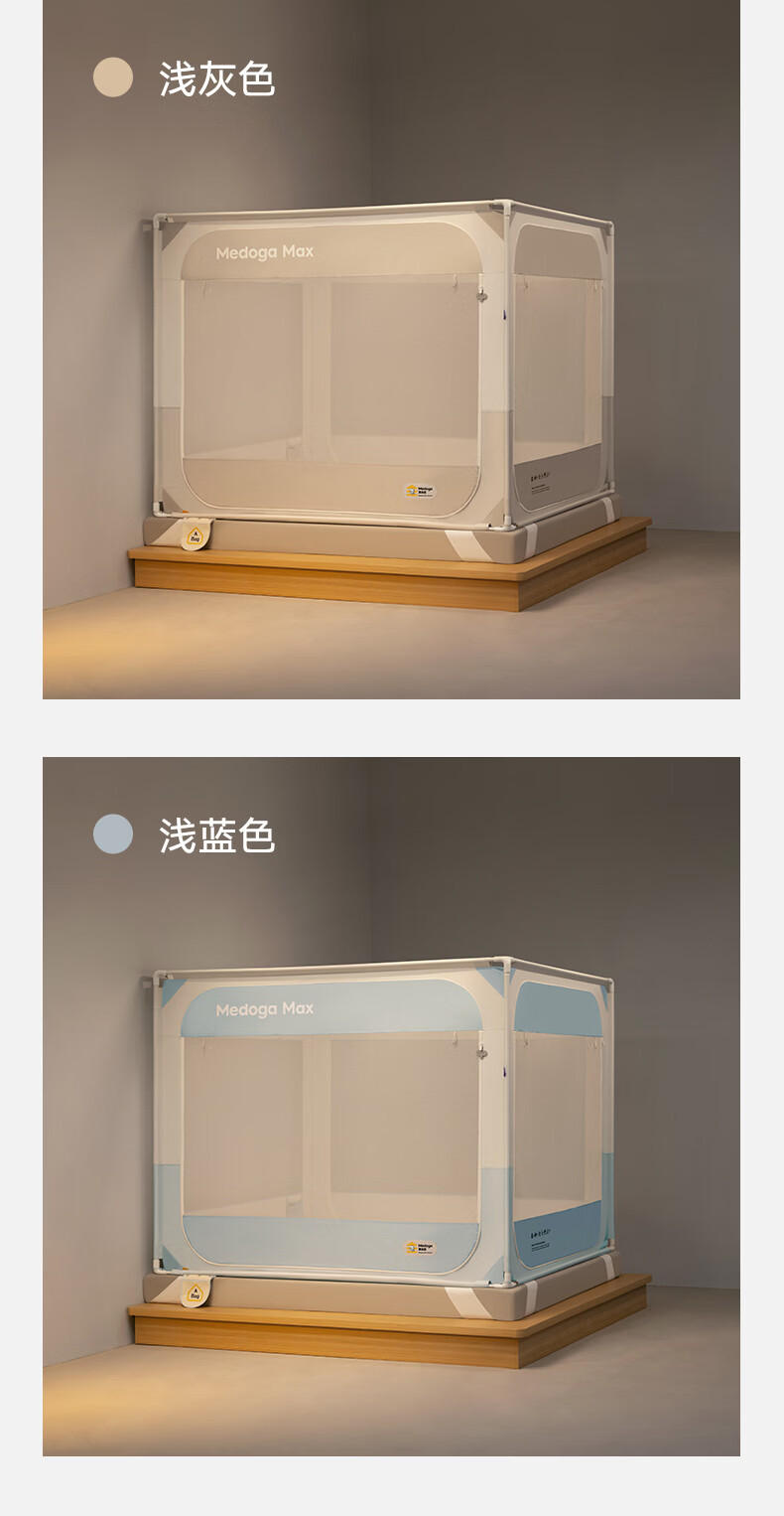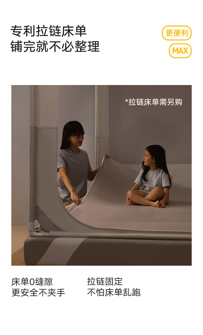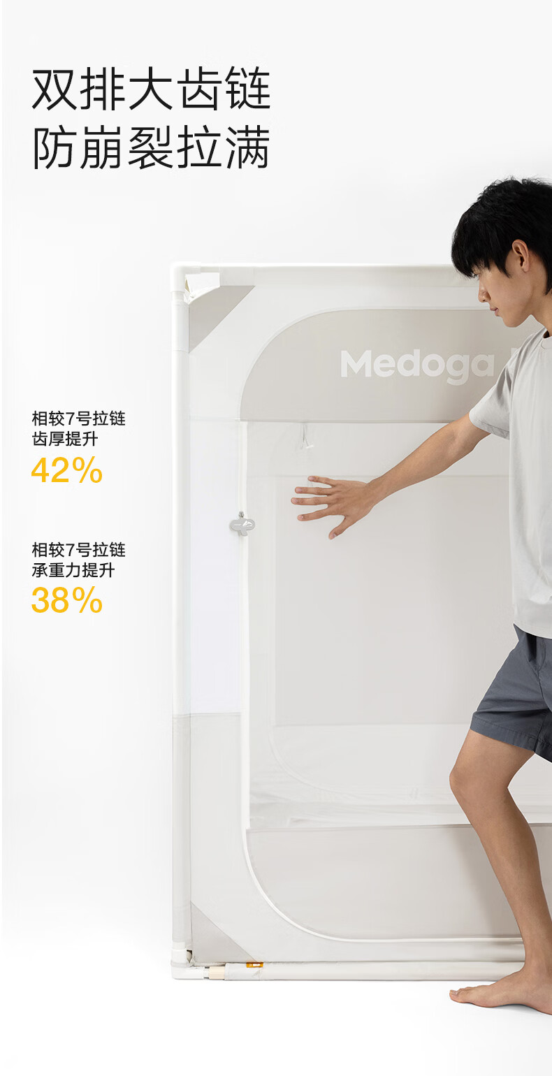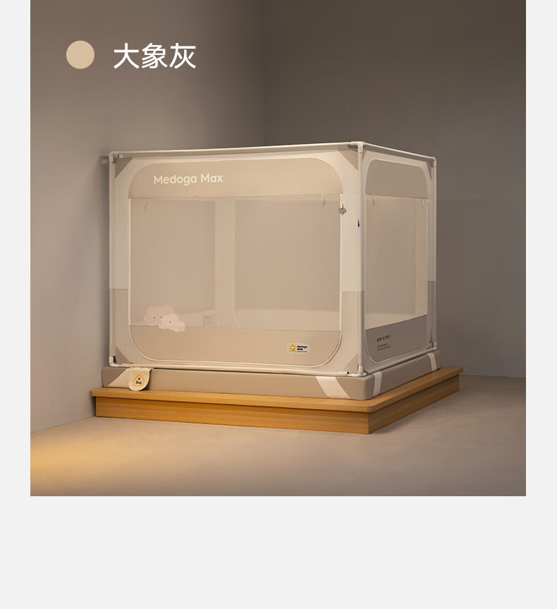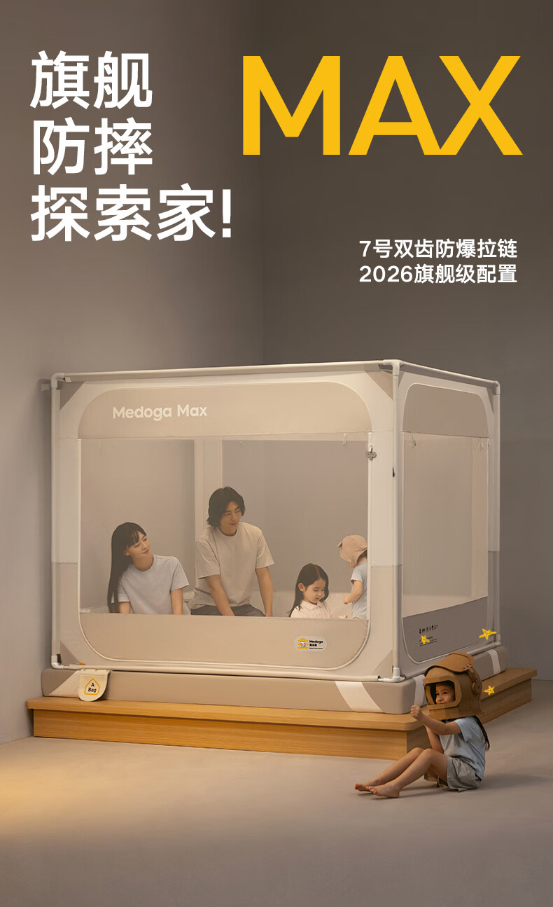 美朵嘉(MEDOGA)26新款旗舰安睡舱2代Max防摔蚊帐抗菌加粗卧室1.8x2米家用三开门 Max2代 浅灰色【单独蚊帐】升级双齿拉链 适用1.8米床【立柱支架升级30mm】