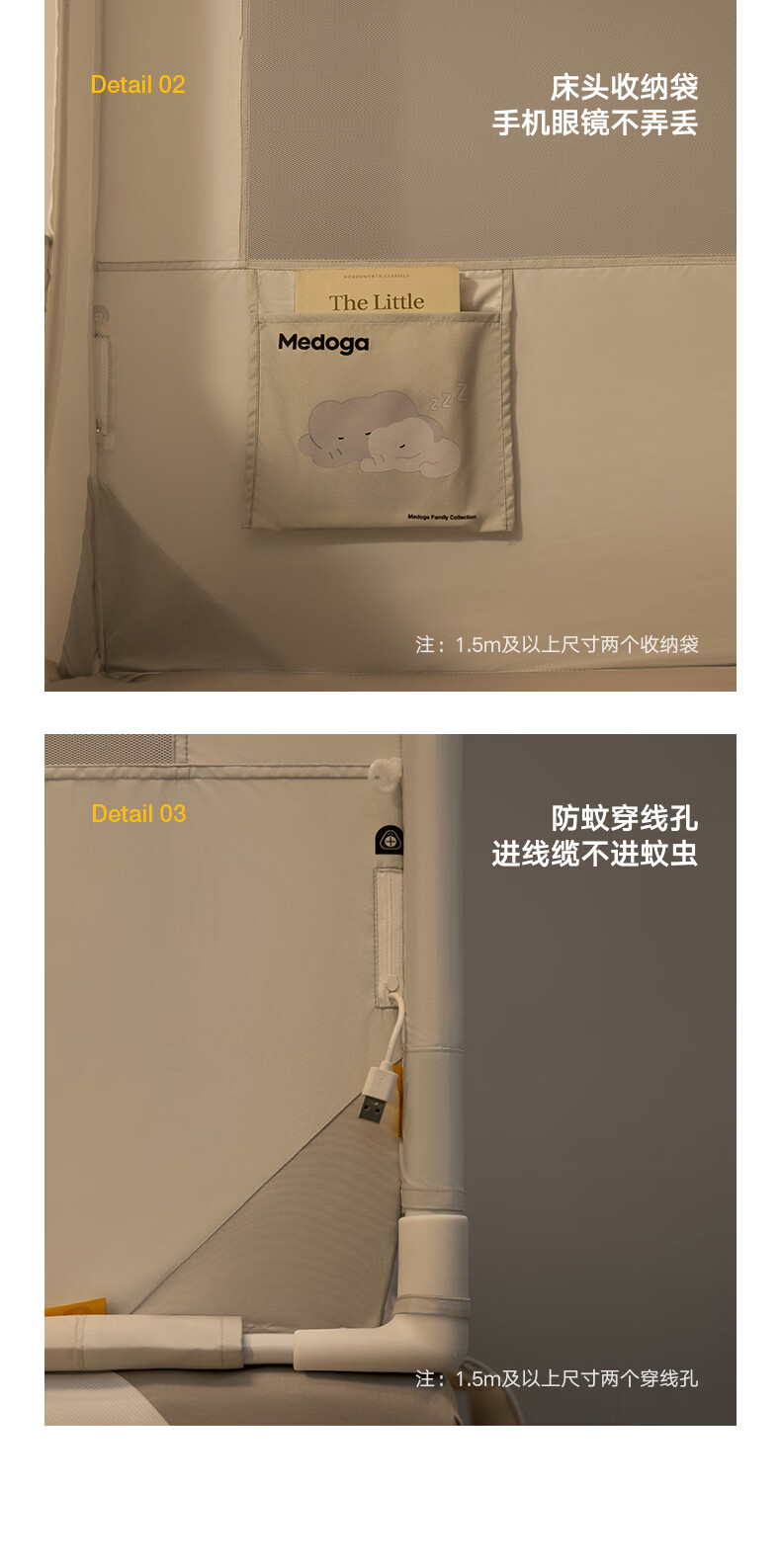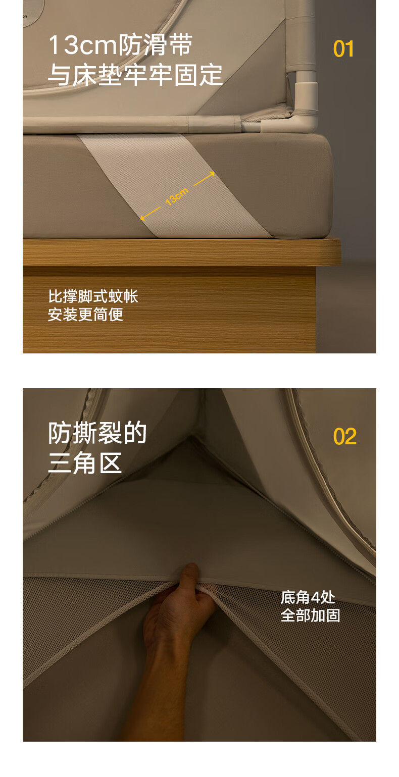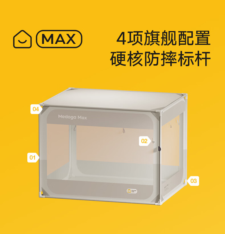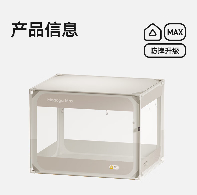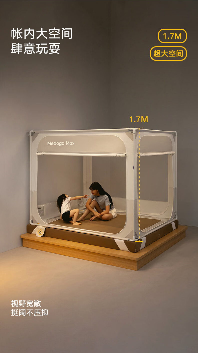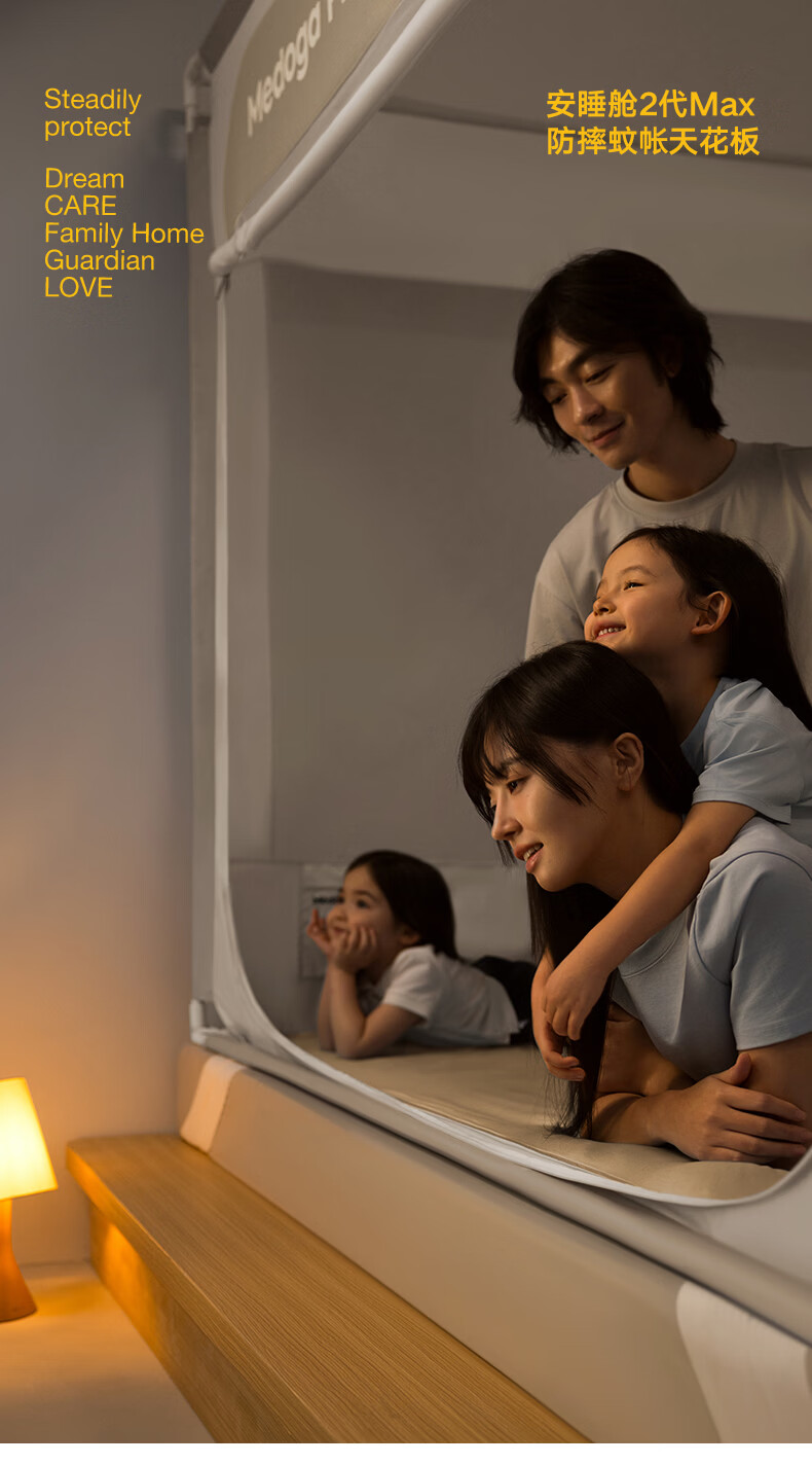 美朵嘉(MEDOGA)26新款旗舰安睡舱2代Max防摔蚊帐抗菌加粗卧室1.8x2米家用三开门 Max2代 浅灰色【单独蚊帐】升级双齿拉链 适用1.8米床【立柱支架升级30mm】