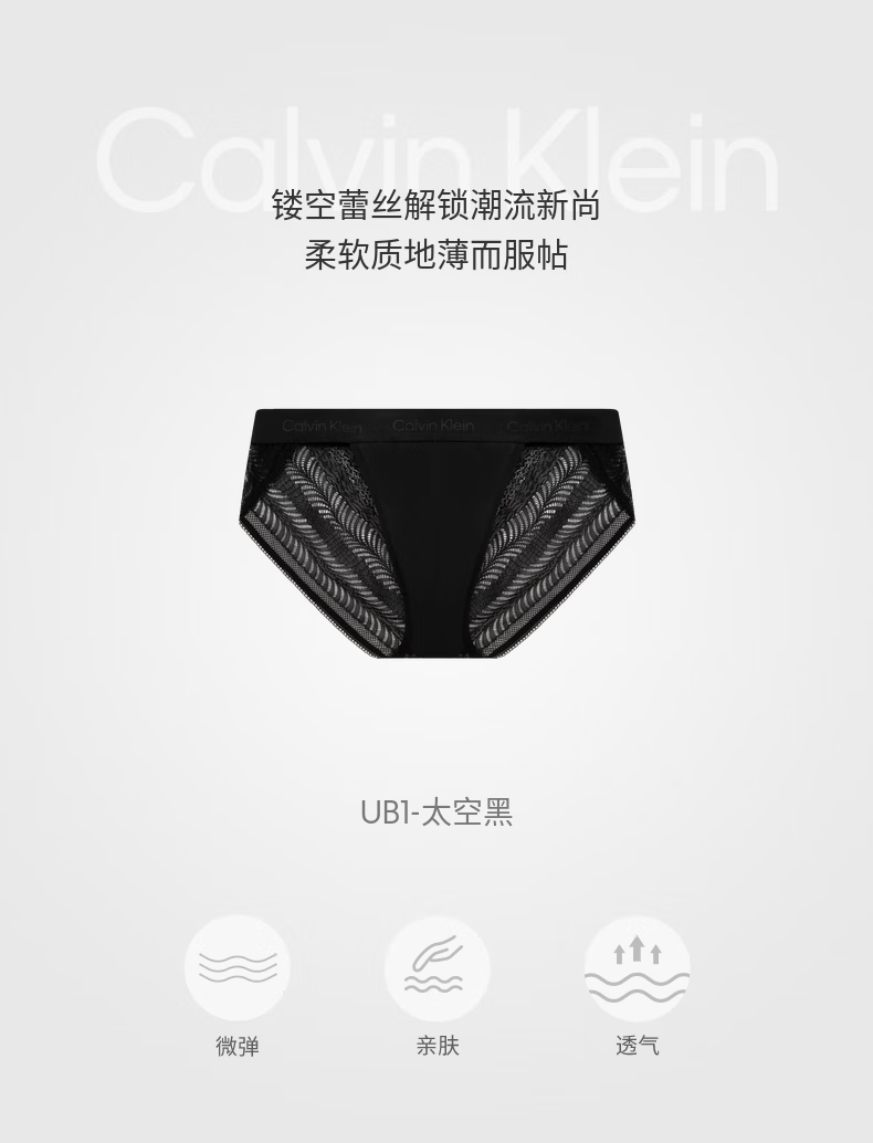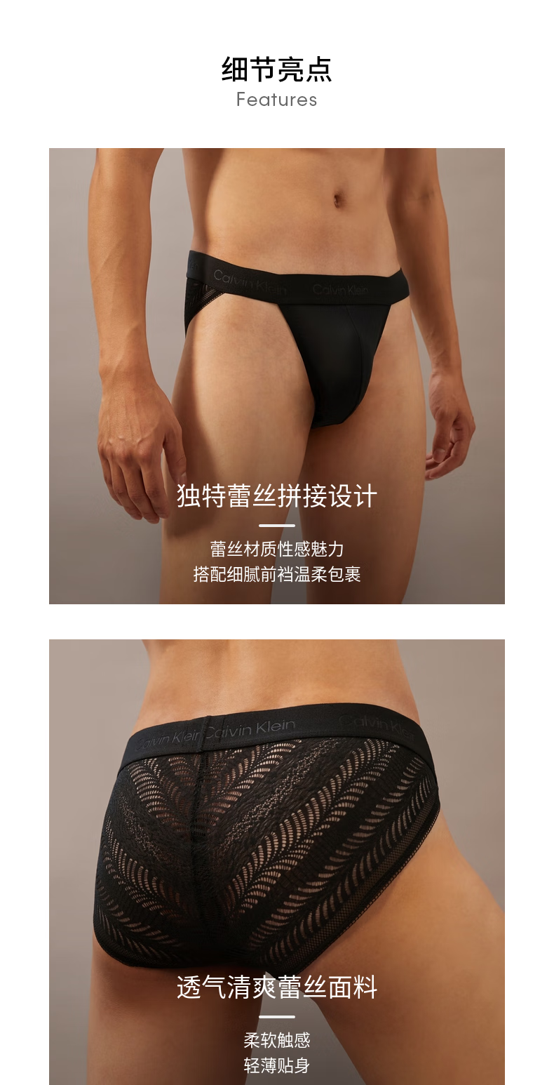 Calvin Klein内衣男性感镂空黑色蕾丝ck轻薄顺滑弹力柔软舒适贴身三角内裤男 UB1-太空黑 1条 M